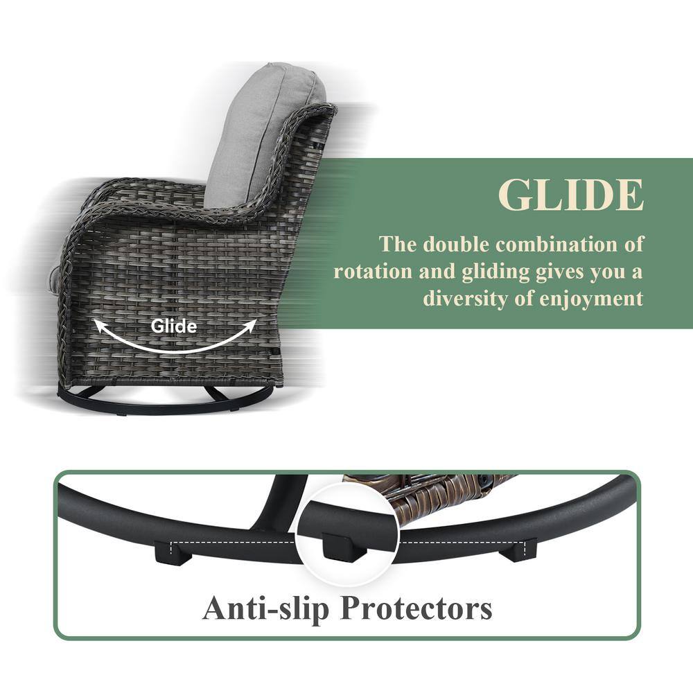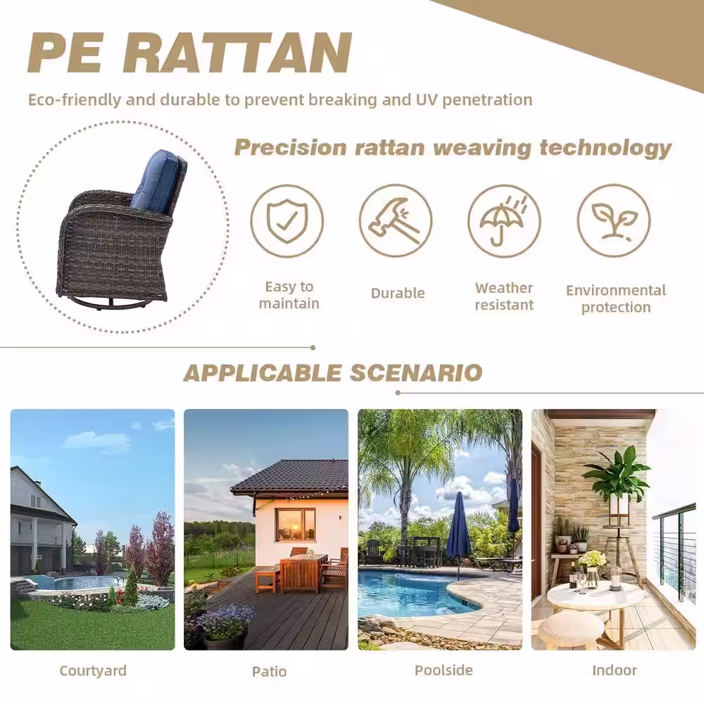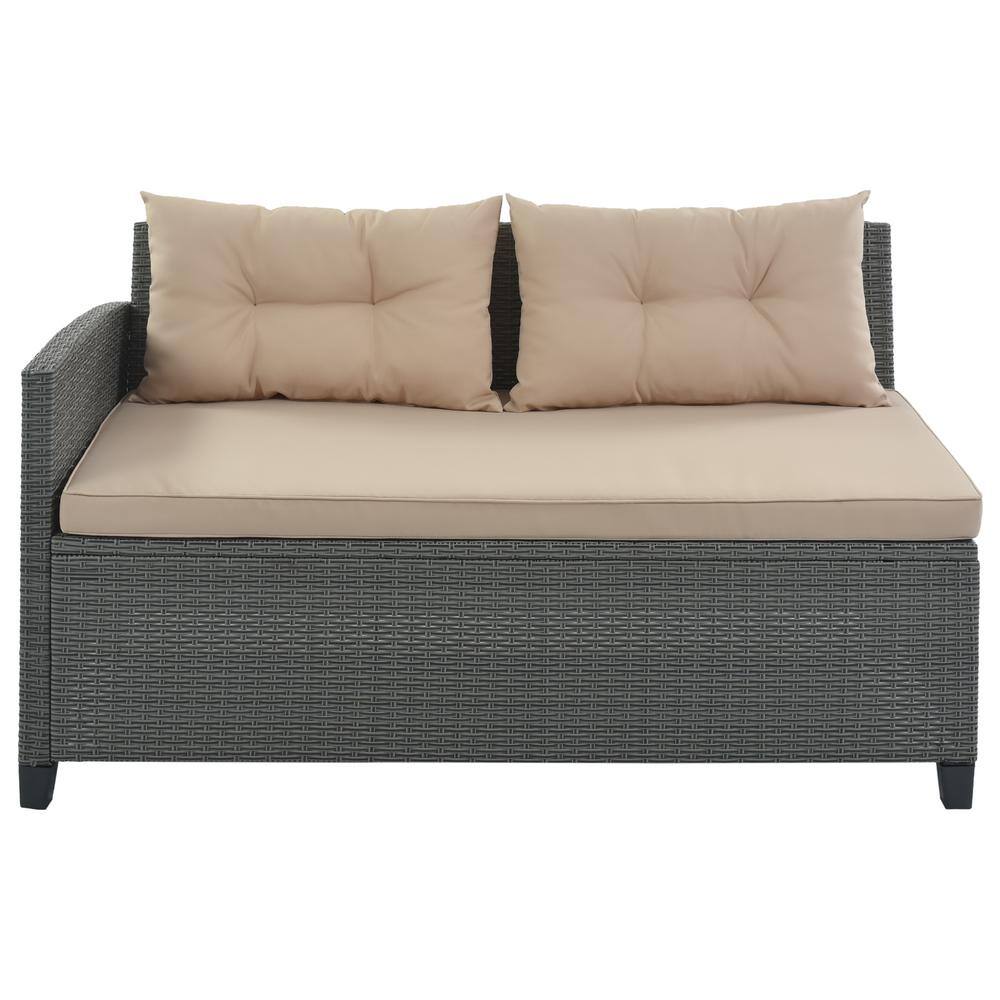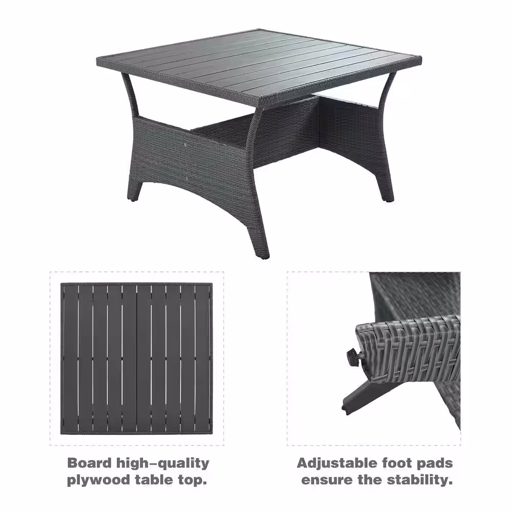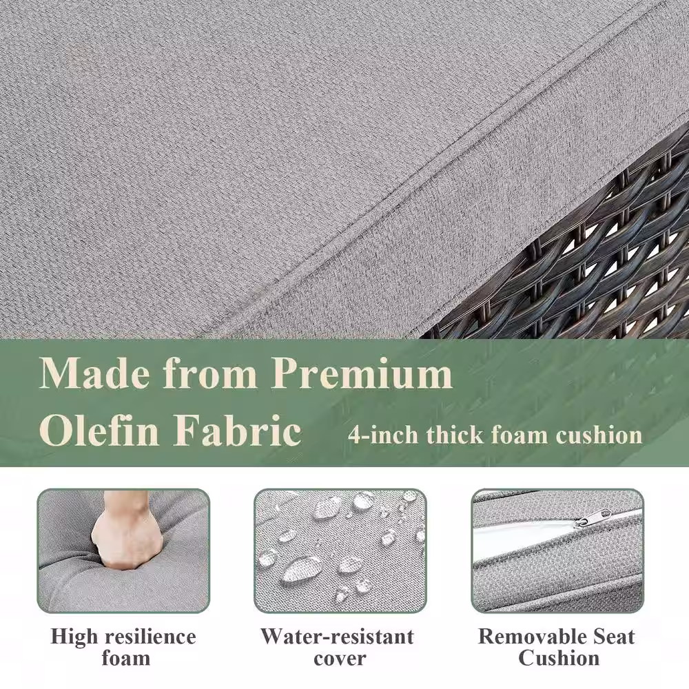waelph Brown 5-Piece Wicker Patio Conversation Set Dining Table Chair with Ottoman and Brown Cushions