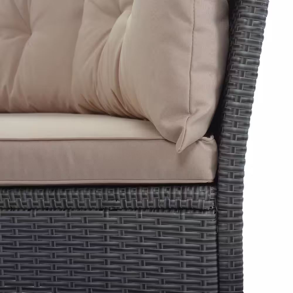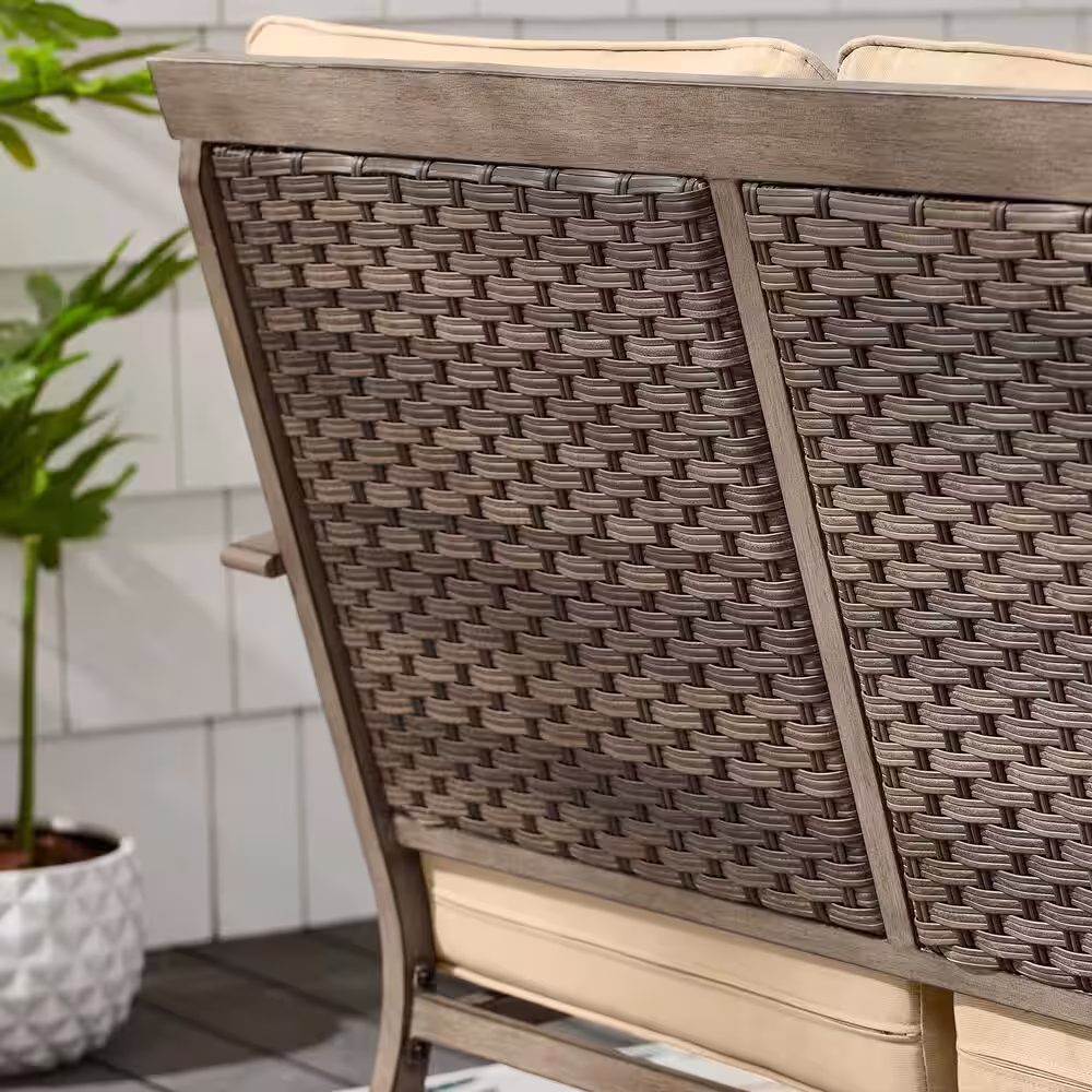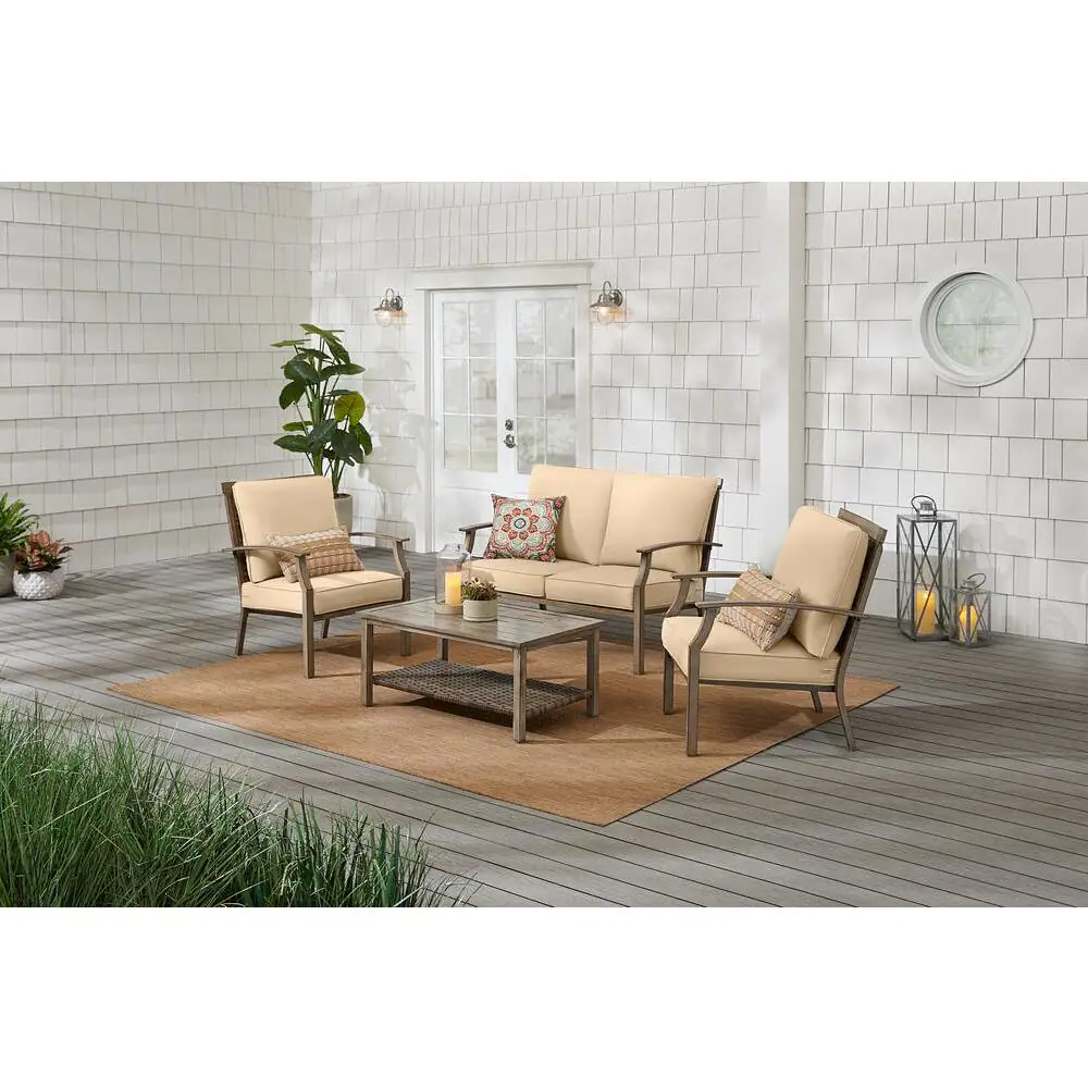 Hampton Bay Geneva 4-Piece Wicker Outdoor Patio Conversation Deep Seating Set with Sunbrella Beige Tan Cushions