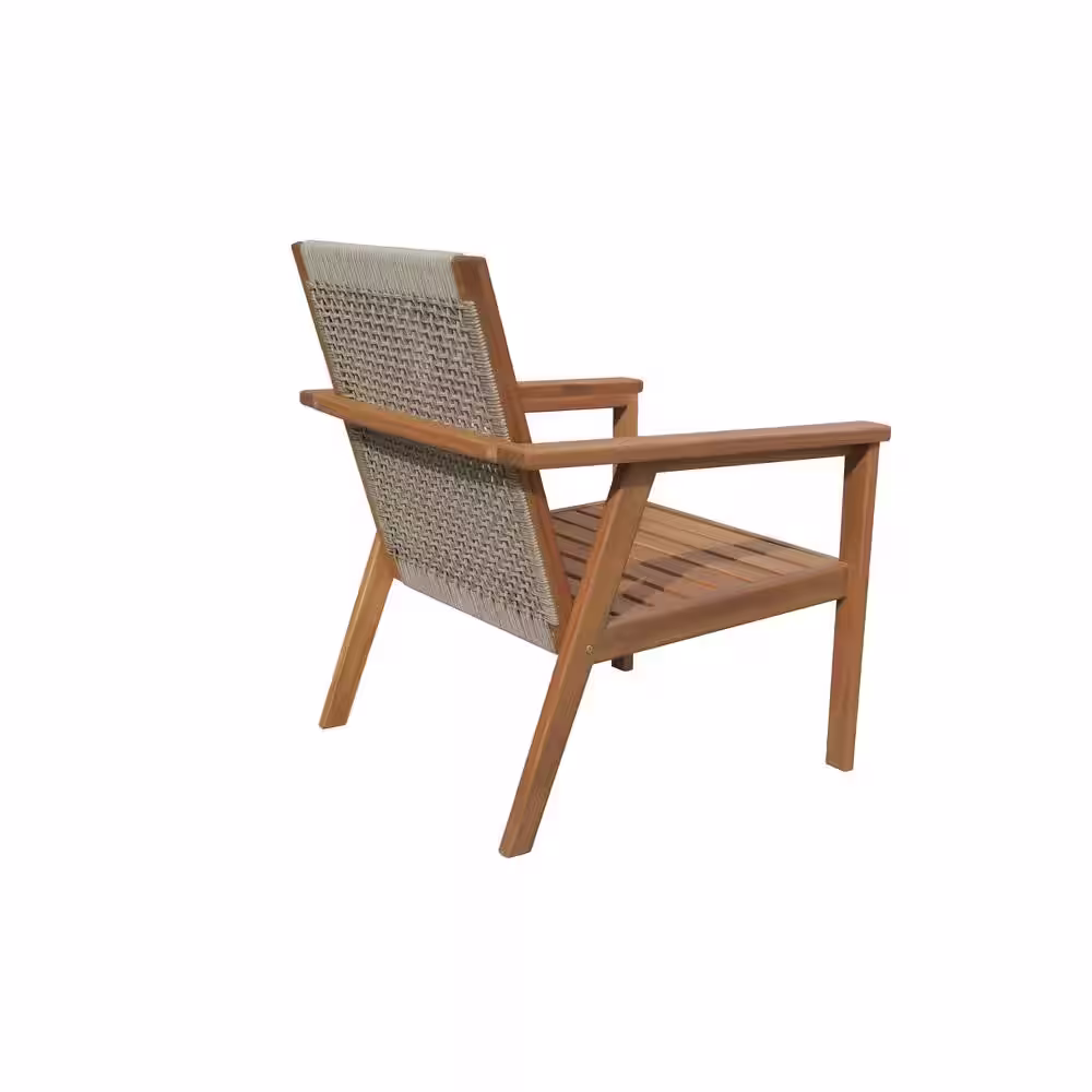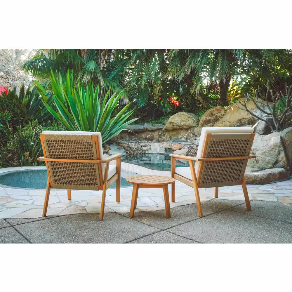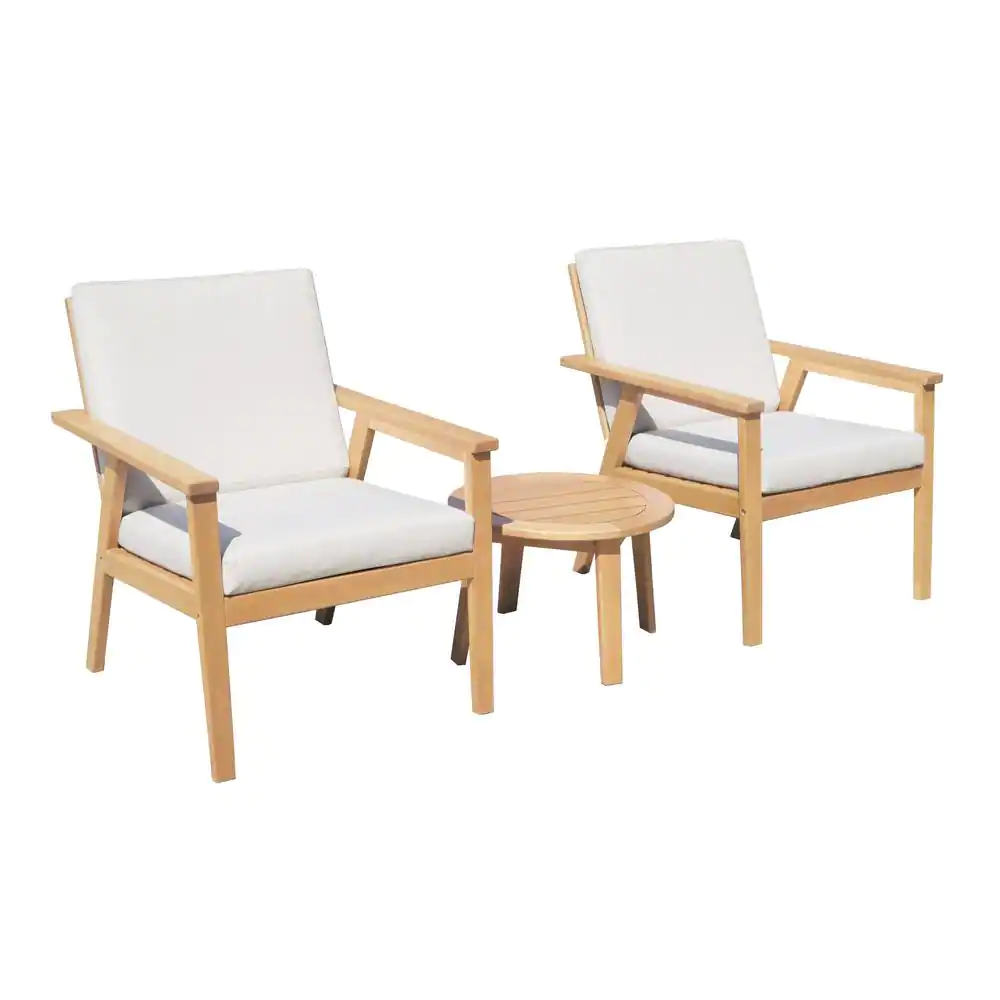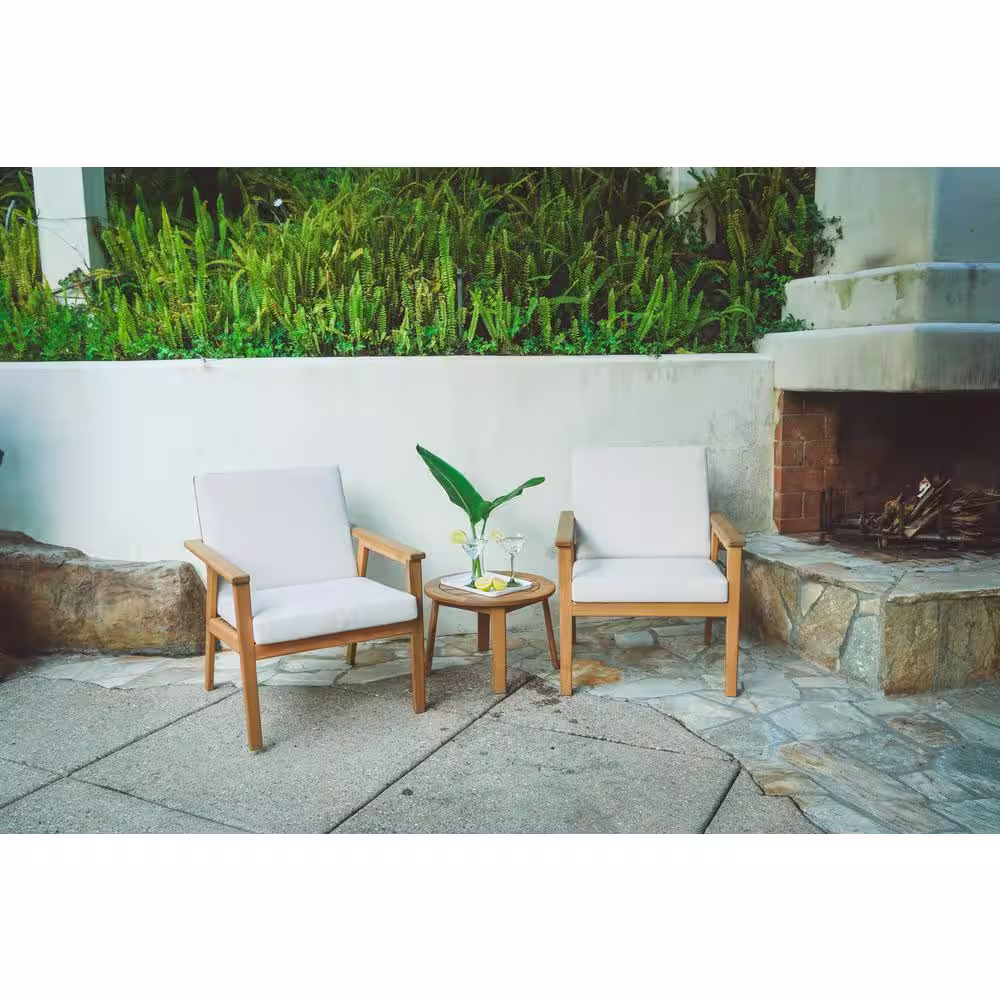 Lautan Anglesea Natural 3-Piece Wooden Patio Conversation Set with Linen Beige Cushions
