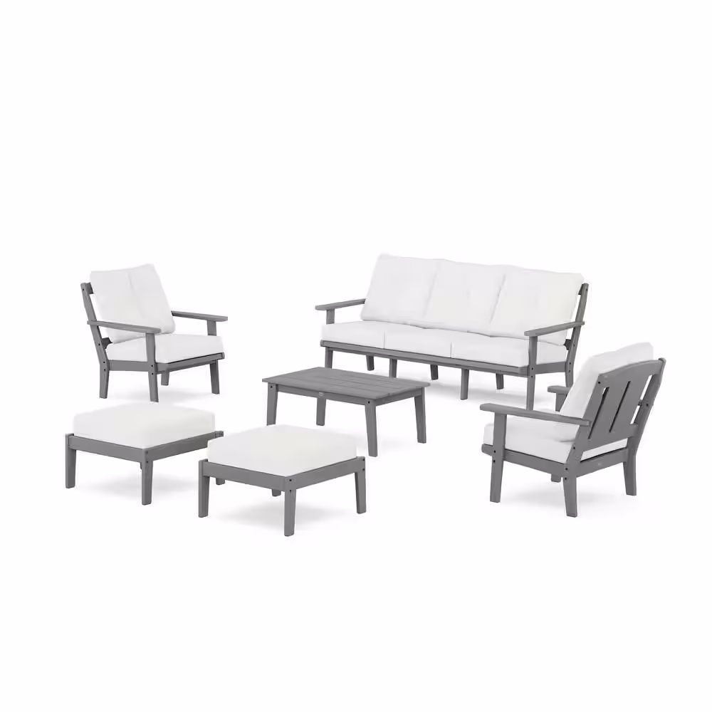 POLYWOOD Mission 6-Pcs Plastic Lounge Sofa Set in Slate Grey/Natural Linen Cushions