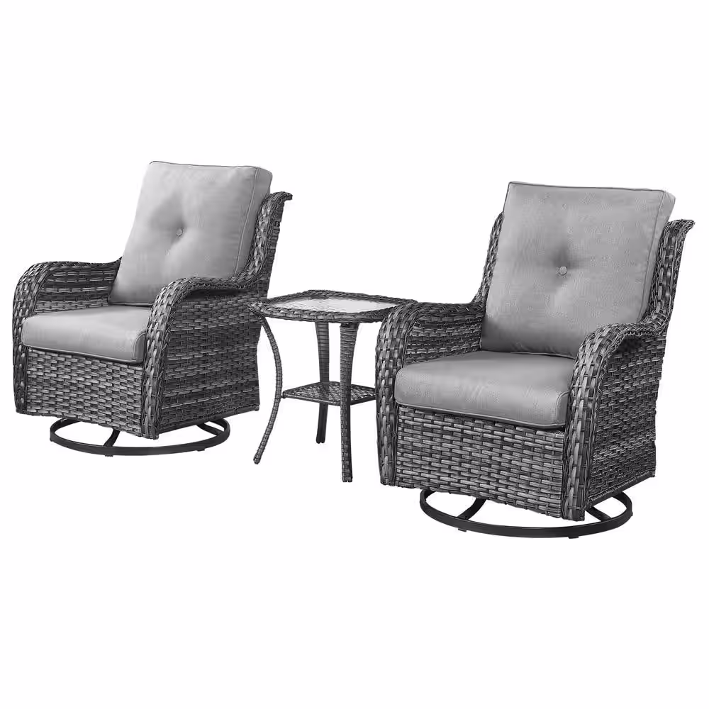 Costway 3PCS Wicker Patio Conversation Set Armchairs with 2-Tier Side Table Balcony and Natural Cushions