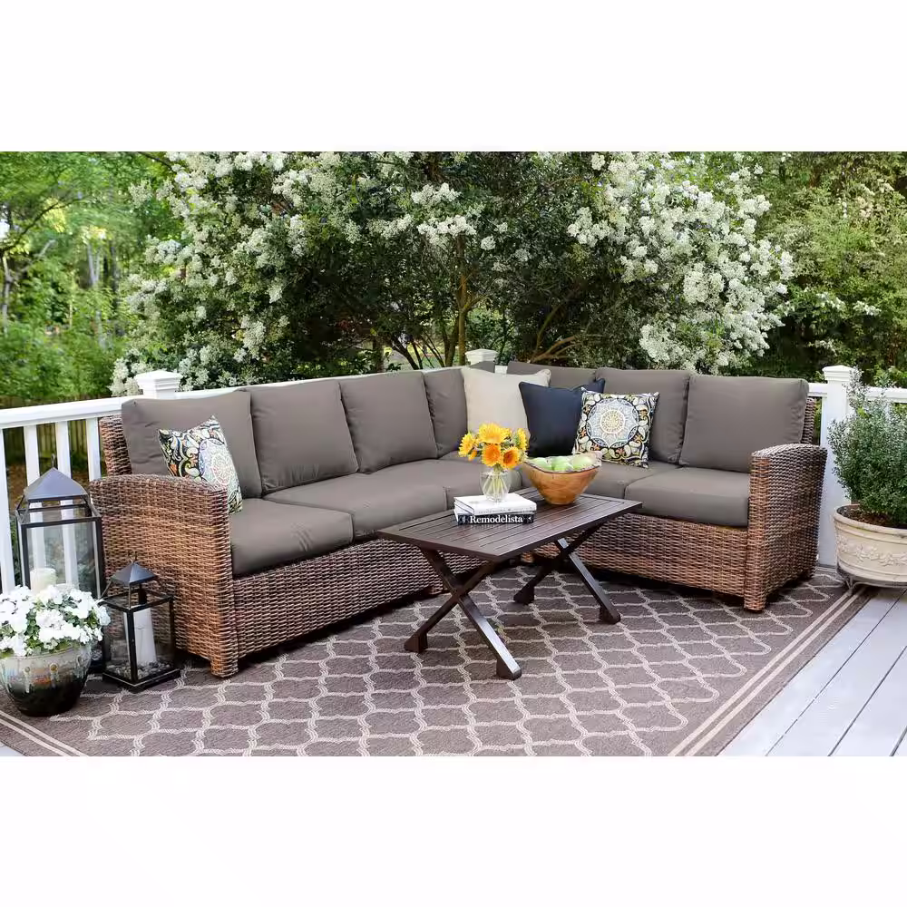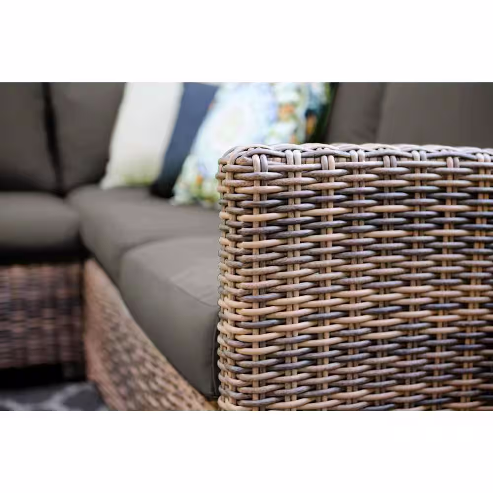 Leisure Made Dalton 5-Piece Wicker Sectional Seating Set with Gray Polyester Cushions