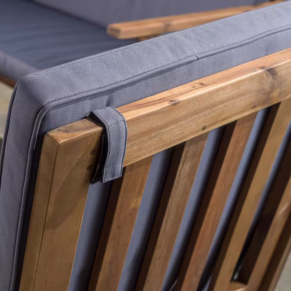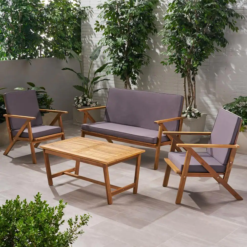 Noble House Panama Teak Finish 4-Piece Wood Patio Conversation Set with Grey Cushions