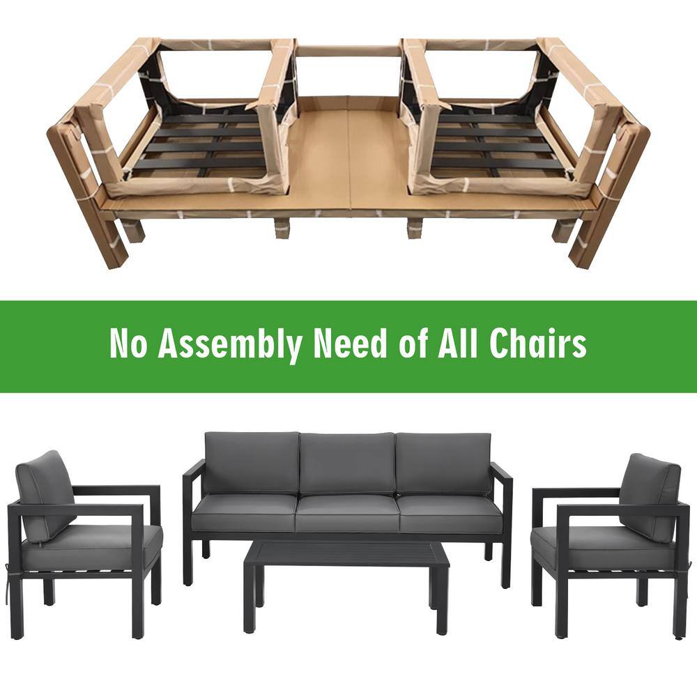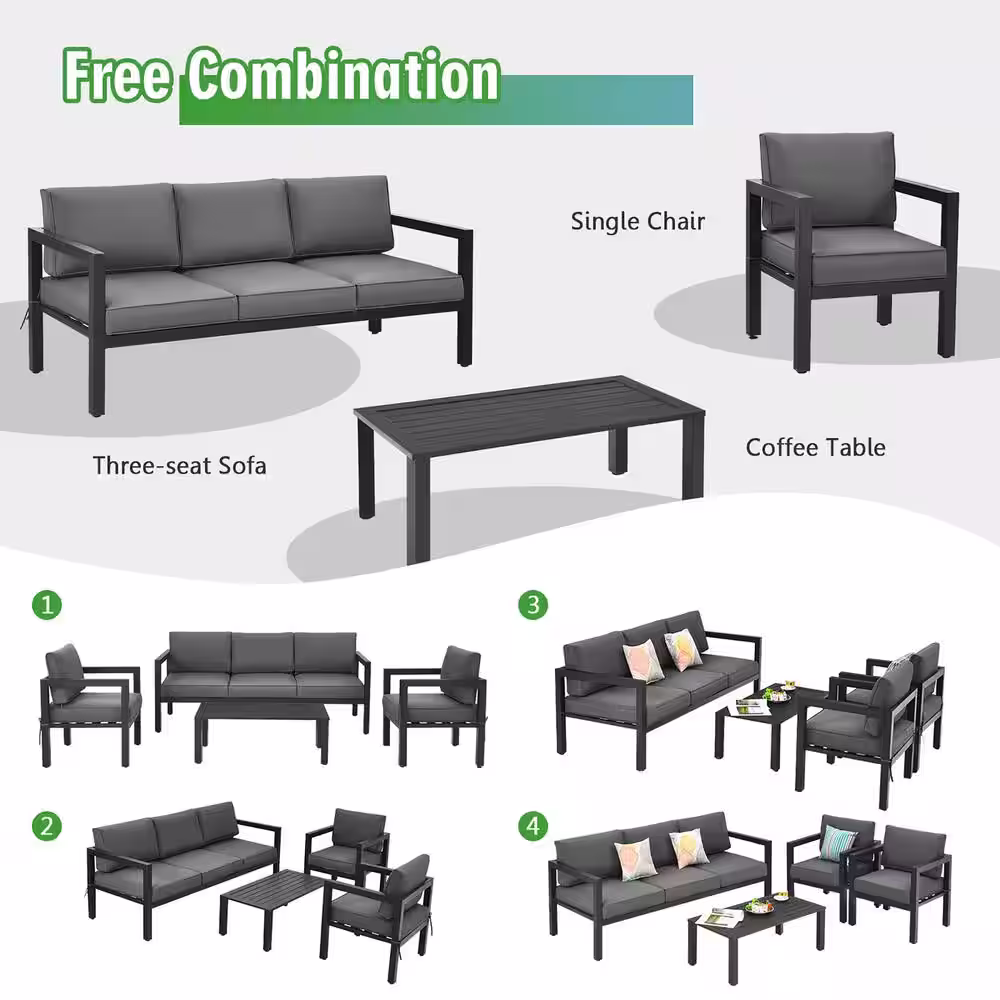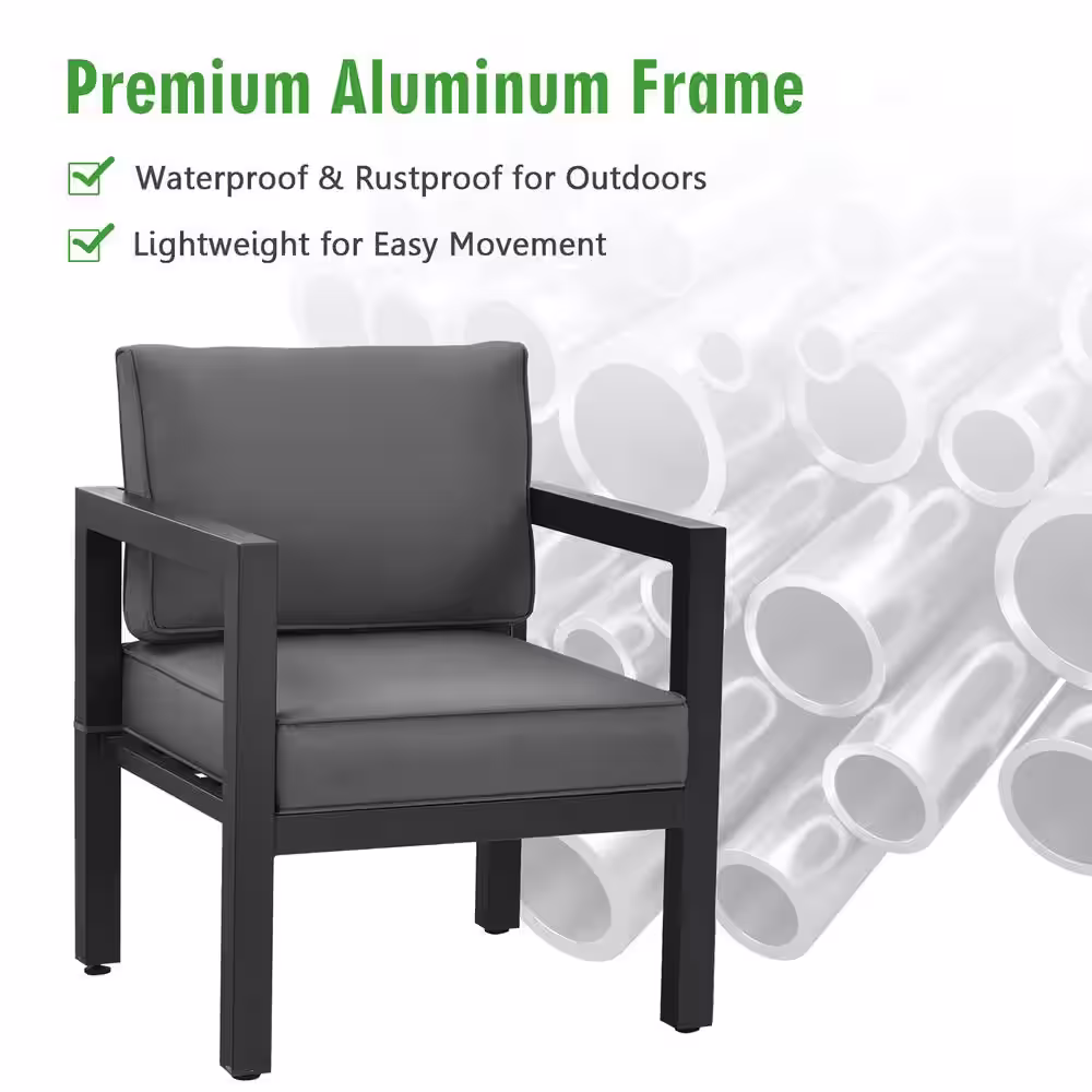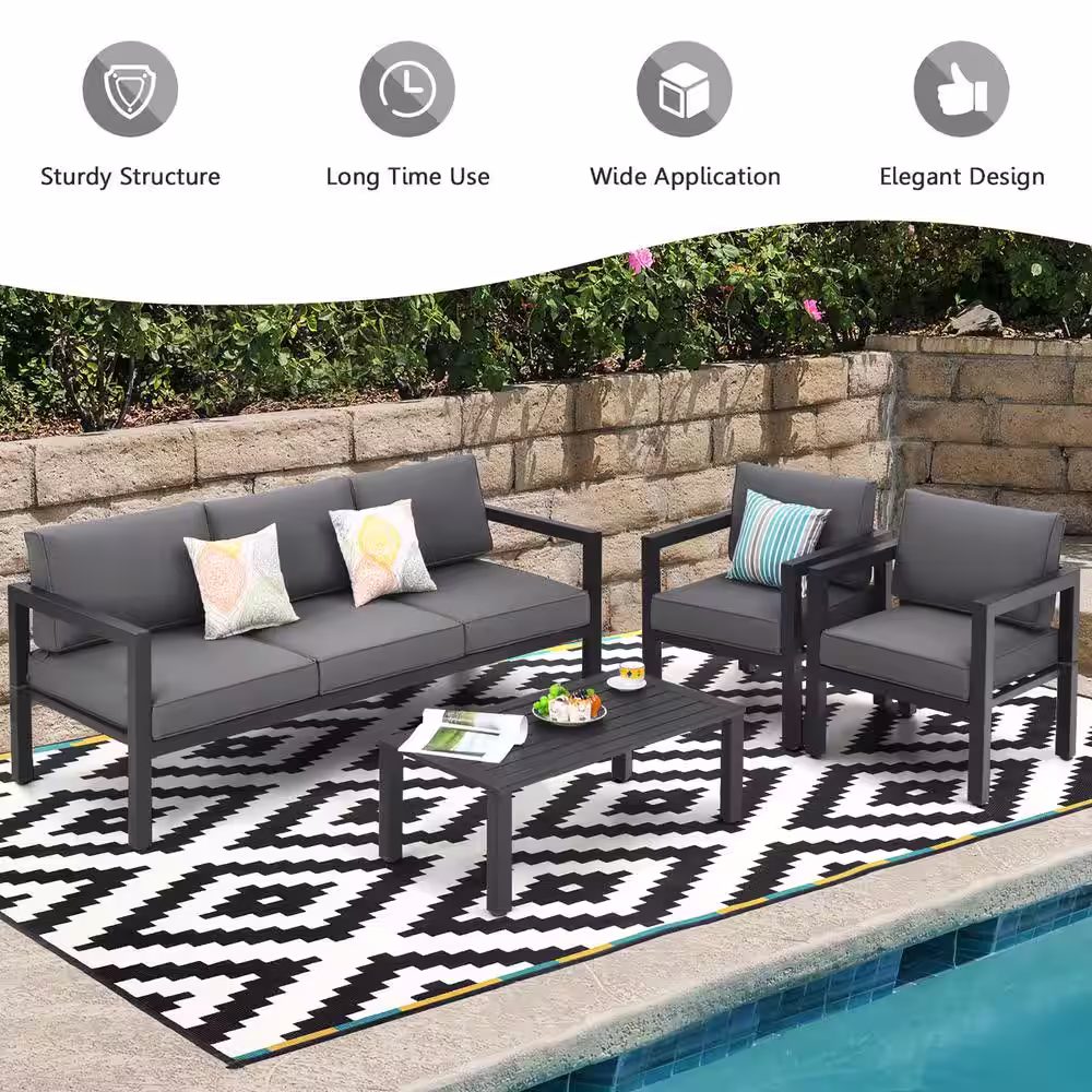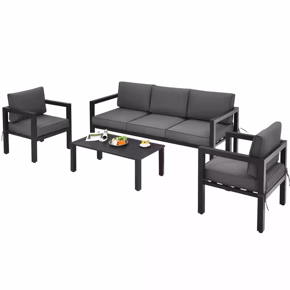 Costway Black 4-Piece Aluminum Outdoor Patio Conversation Set with Gray Cushions