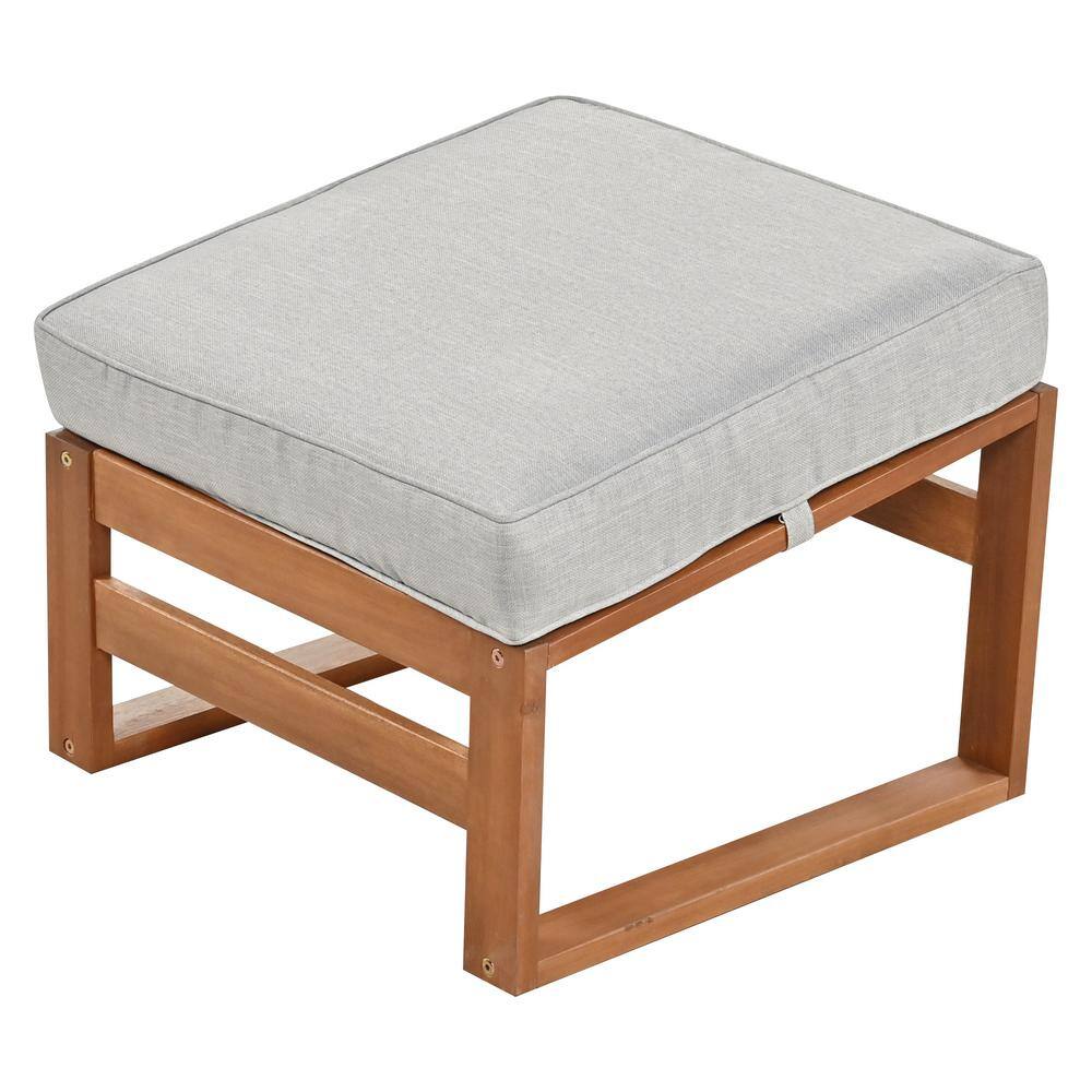 Harper & Bright Designs 6-Piece Solid Wood Patio Conversation Set with Gray Cushions, Ottomans and Pillows