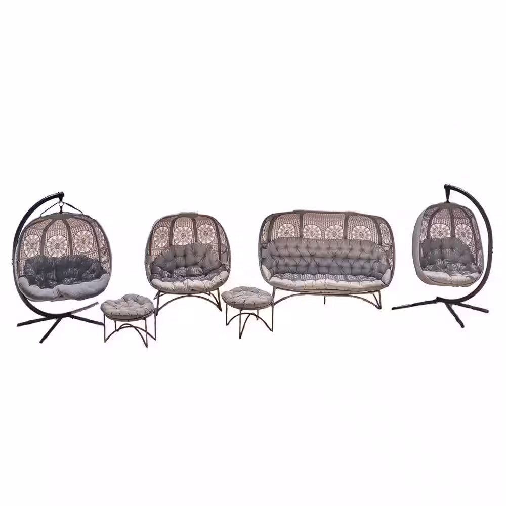FlowerHouse Oasis 6-Piece Dreamcatcher Metal Patio Conversation Set with Sand Cushions