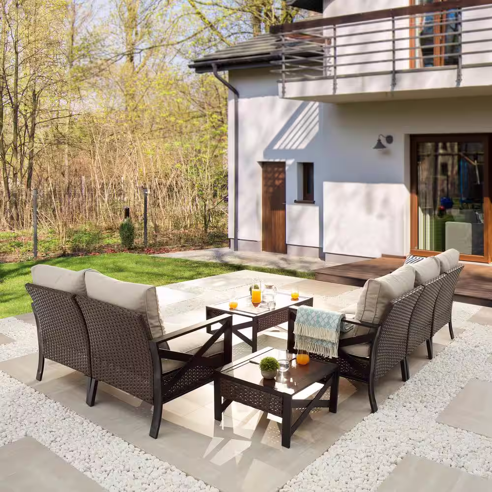 Patio Festival X-Arm 7-Piece Wicker Conversation Set with Beige Cushions