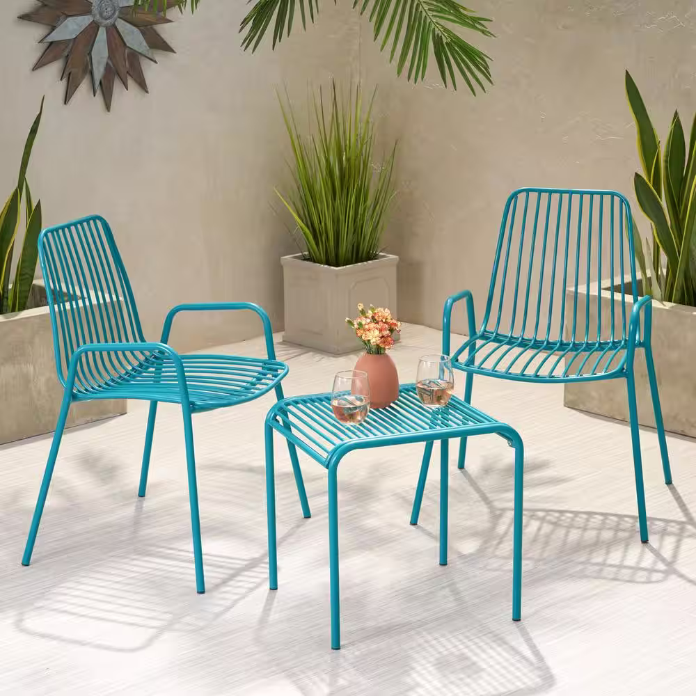 Noble House Annette Matte Teal 3-Piece Metal Patio Conversation Seating Set