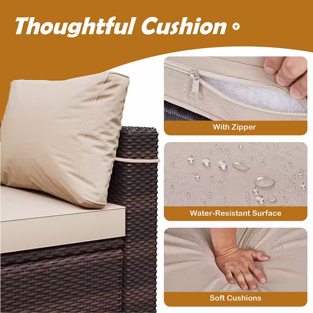 None 7-Piece Wicker Outdoor Patio Conversation Sectional Seating Set with Beige Cushions