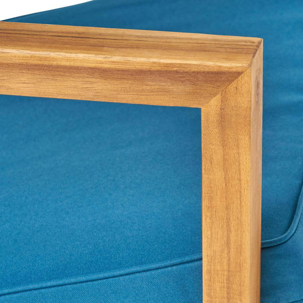 Noble House Leah Brown Patina 7-Piece Wood Patio Conversation Seating Set with Dark Teal Cushions