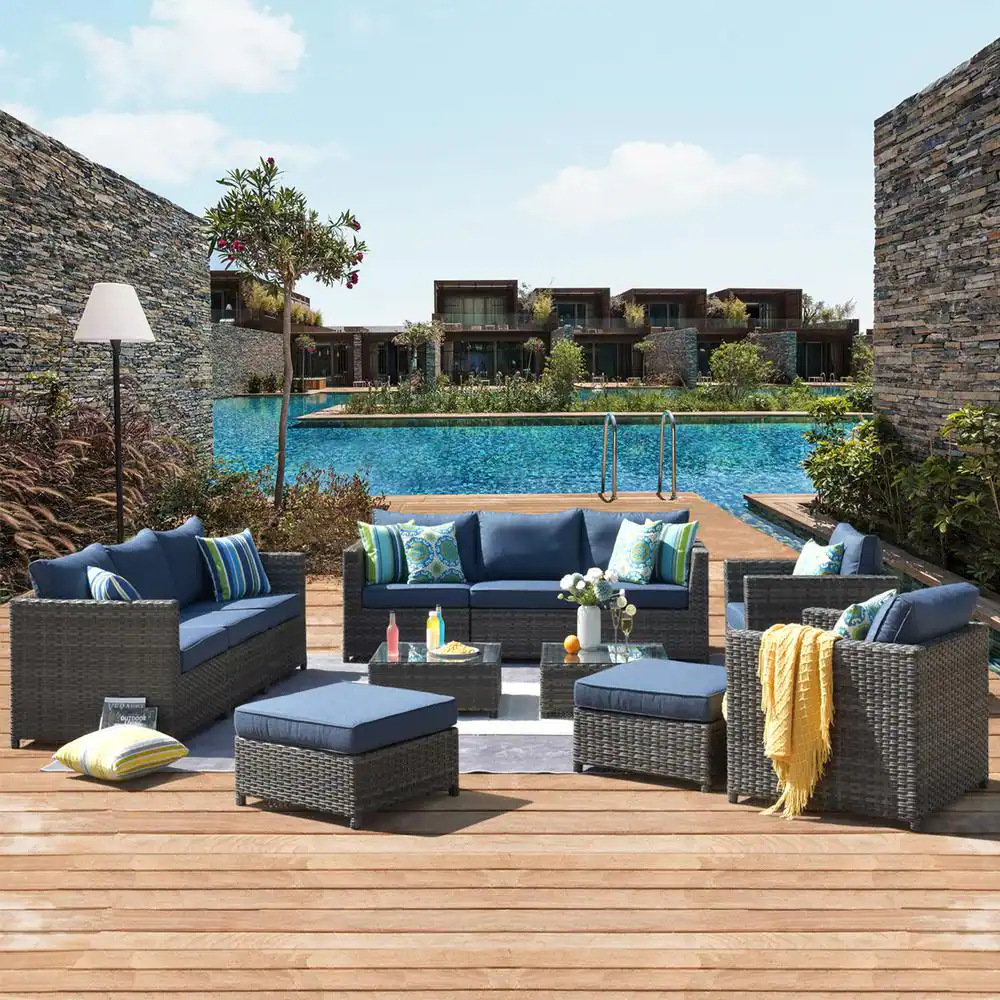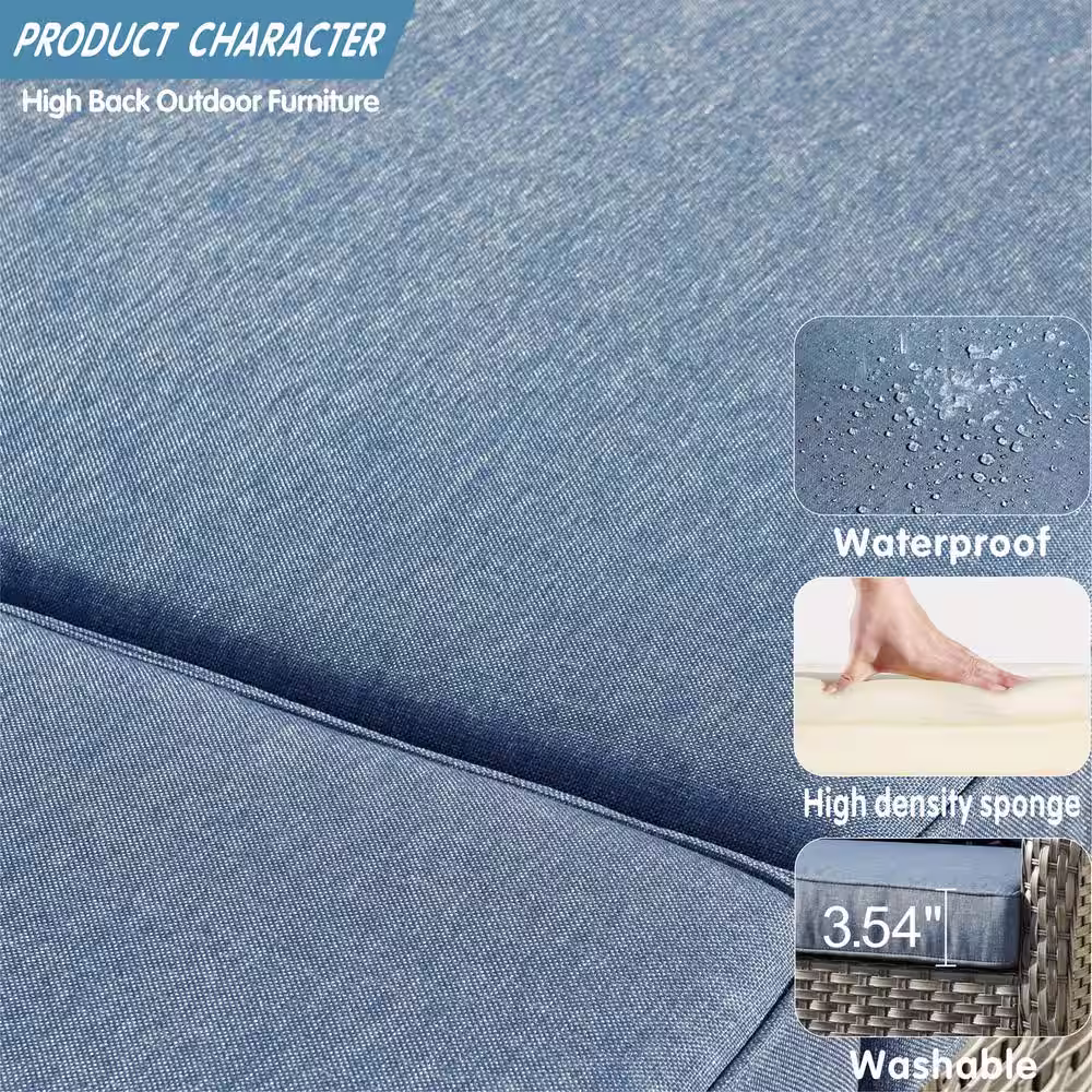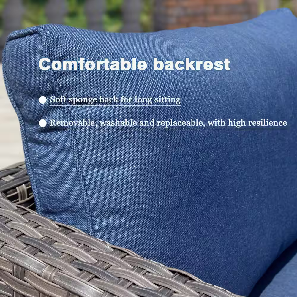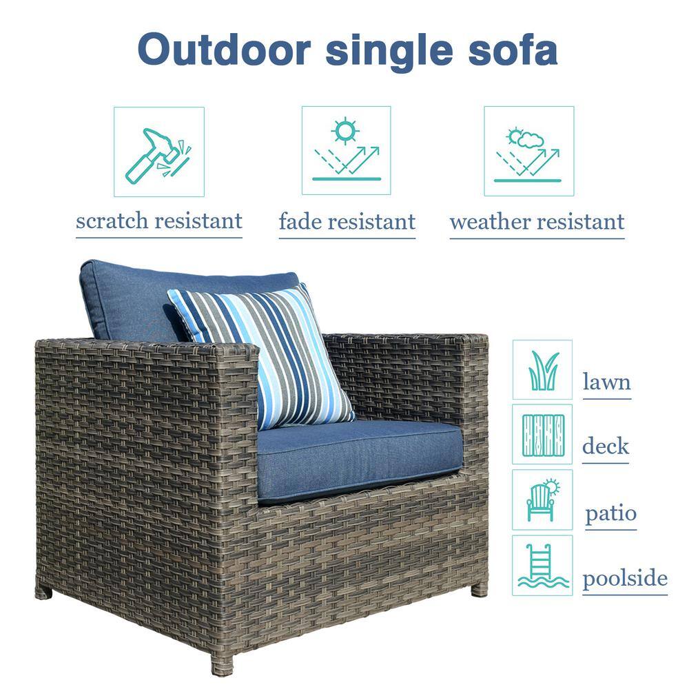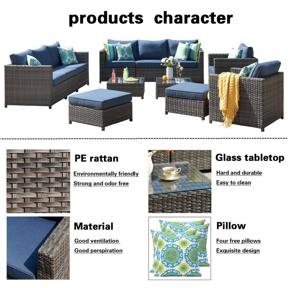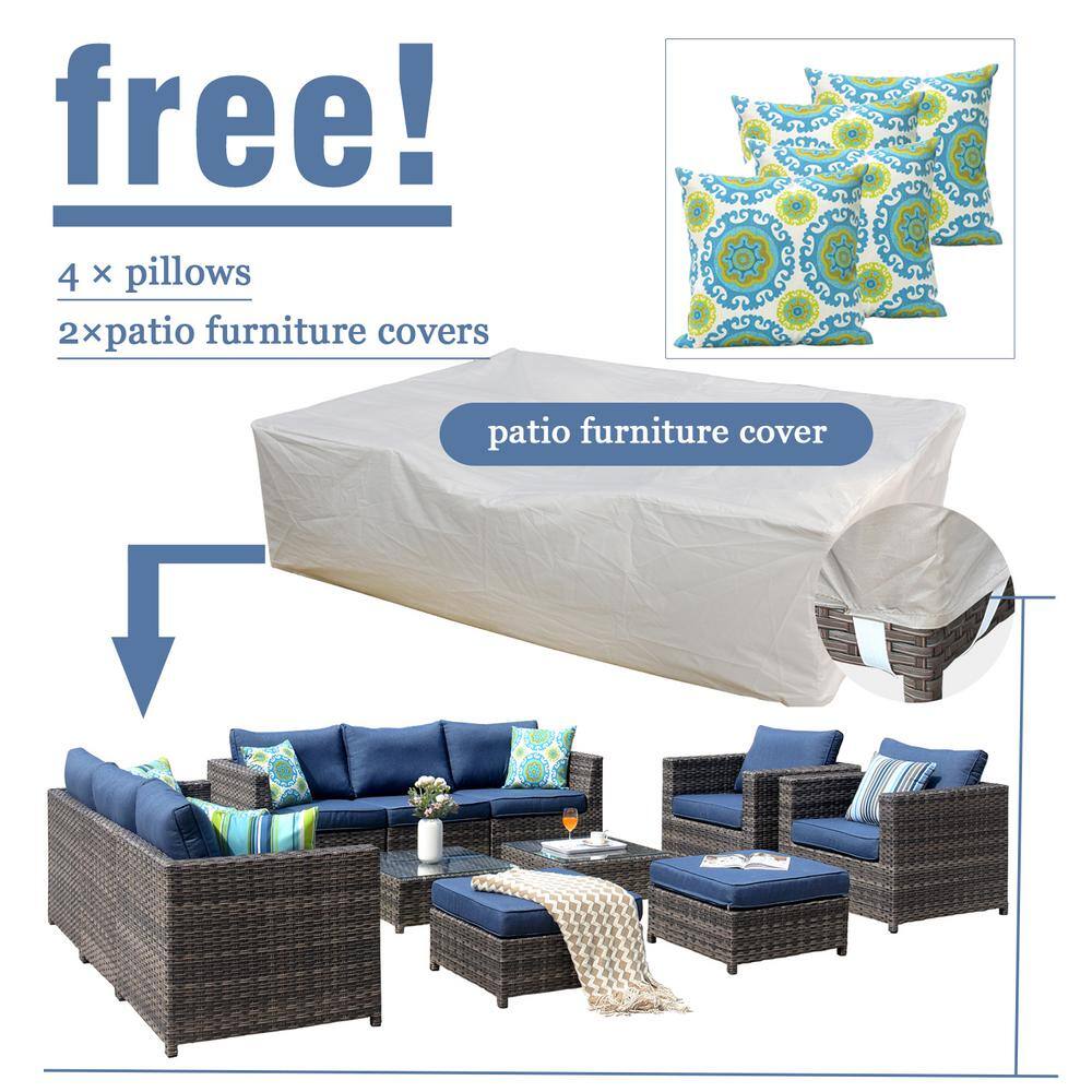 XIZZI Uranus Gray 12-Piece Wicker Outdoor Patio Conversation Seating Set with Denim Blue Cushions