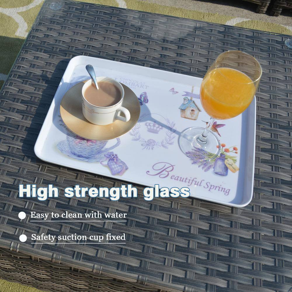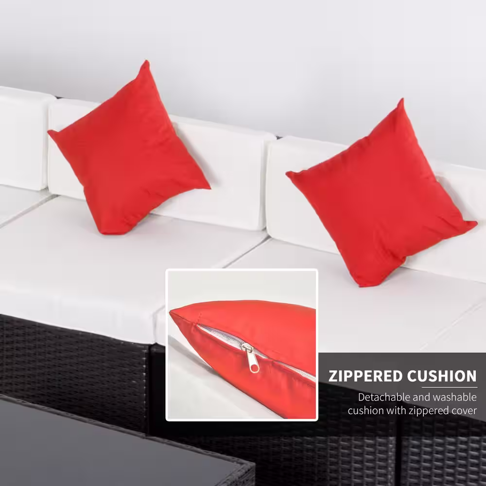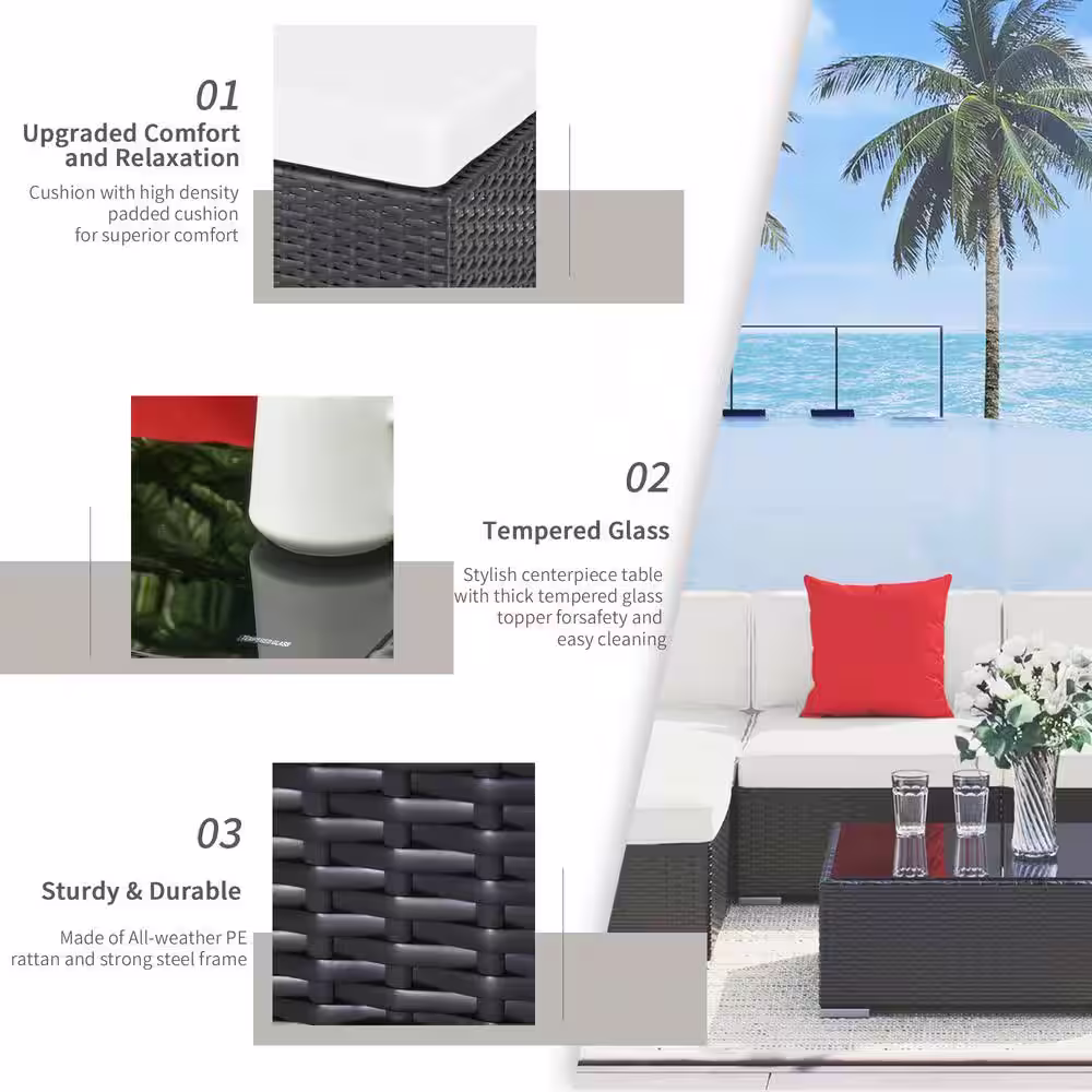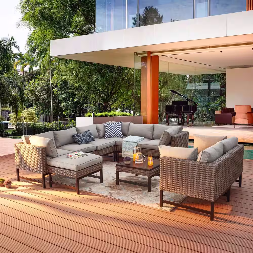 Patio Festival Right-Angle 10-Piece Wicker Patio Conversation Seating Set with Gray Cushions