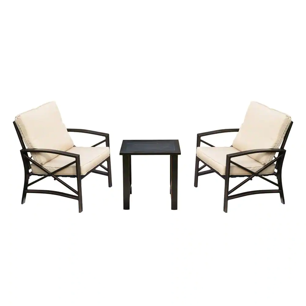 Patio Festival 3-Piece Metal Patio Deep Seating Set with Beige Cushions