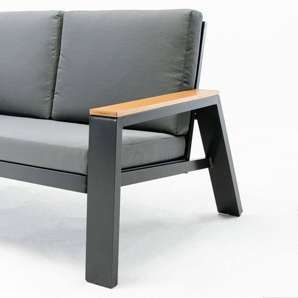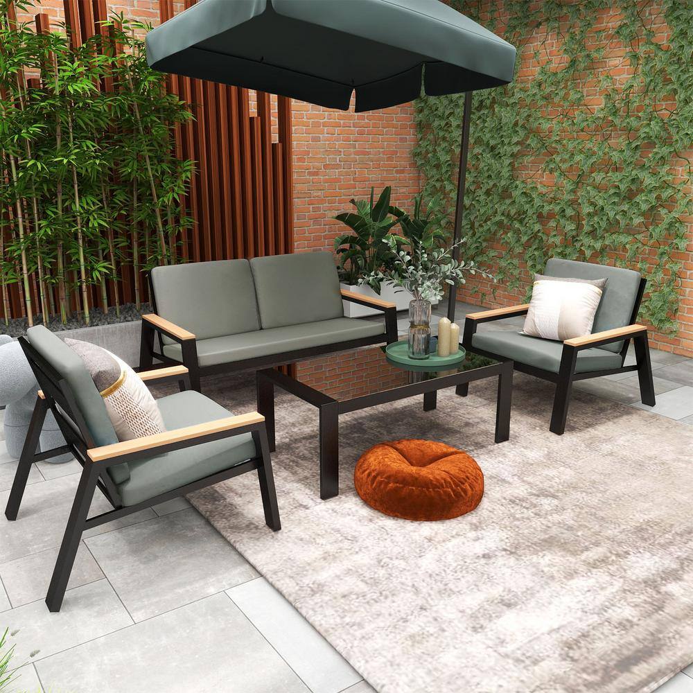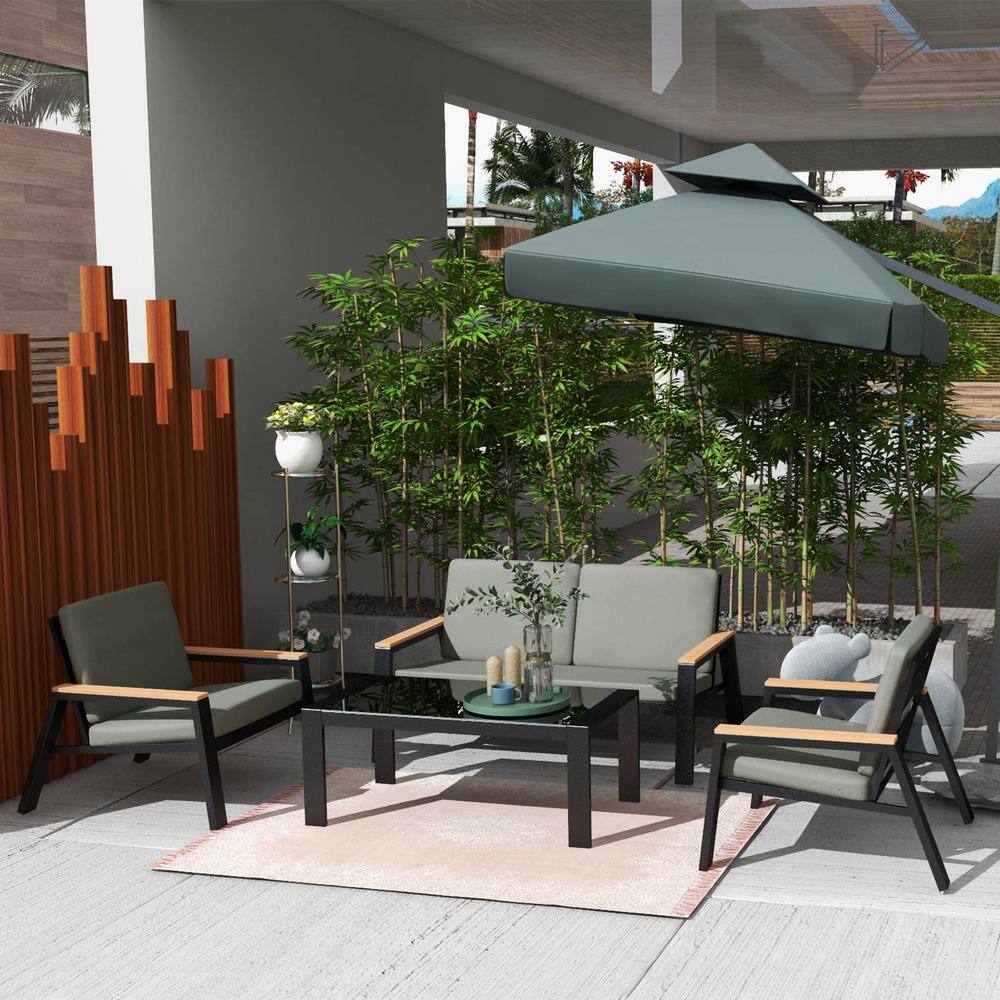 Uixe Black 4-Piece Aluminum Outdoors Patio Conversation Sectional Seating Set with Gray Cushions