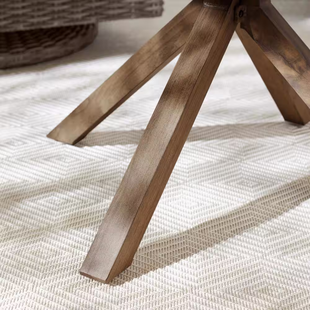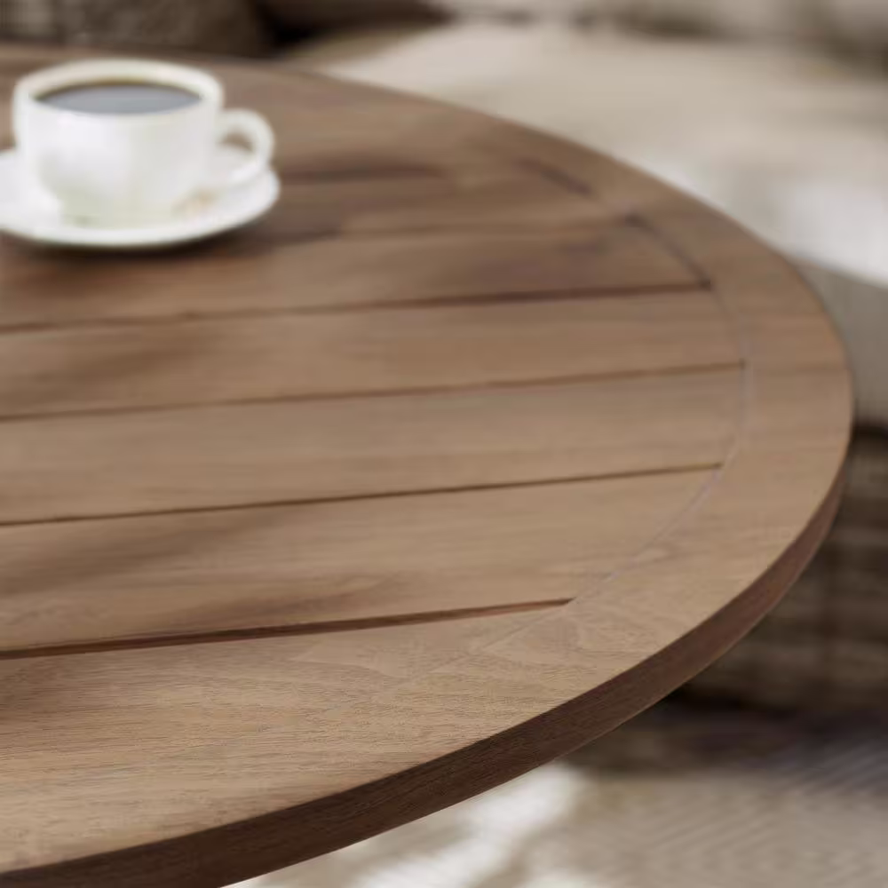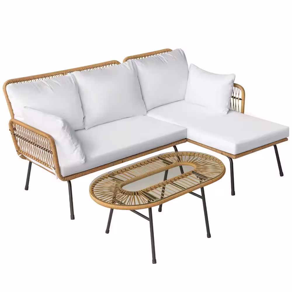 None Boho 3-Piece L Shape Handwaven Wicker Patio Conversation Set with Round Table and Off White Cushion