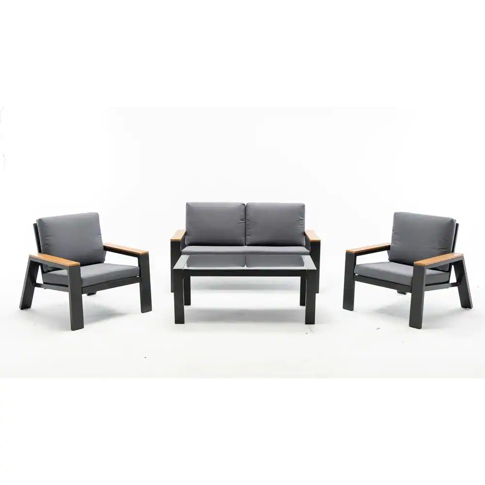 MOD Aiden 4-Piece Alunimum Patio Conversation Set with Light Grey Cushions and Adjustable Coffee Table