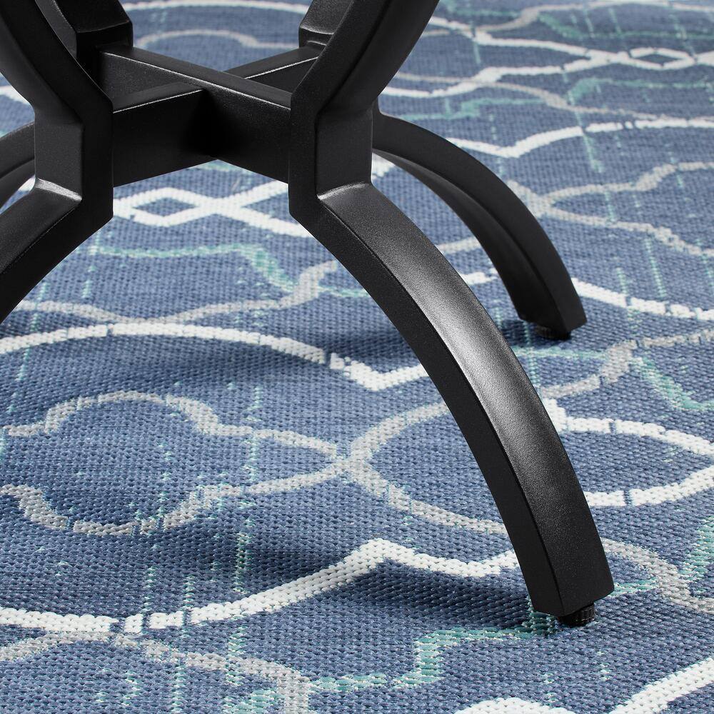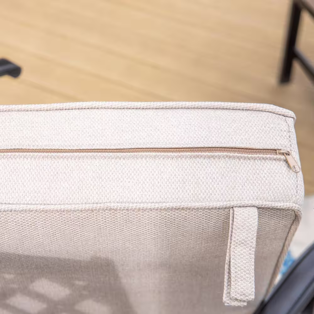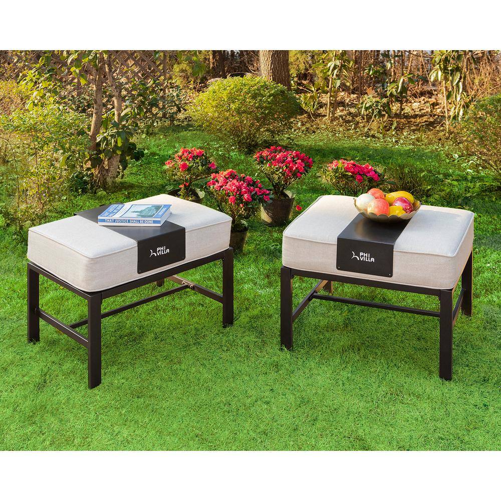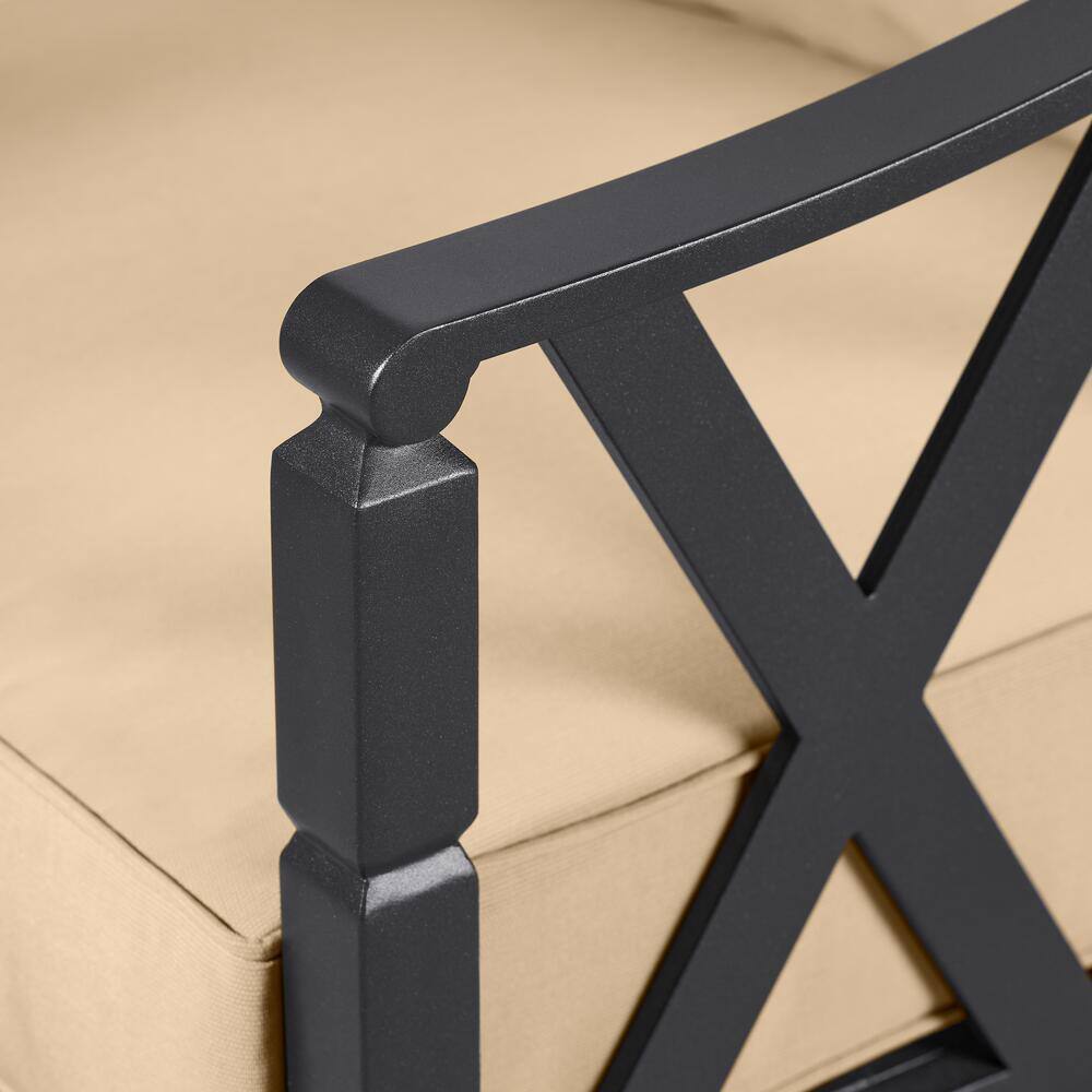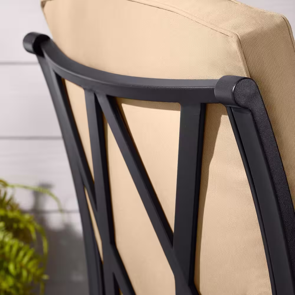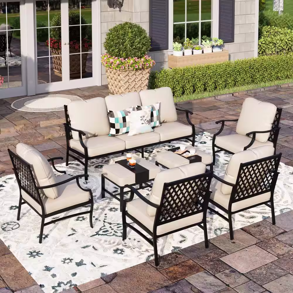 None Black Meshed 9-Seat 7-Piece Metal Outdoor Patio Conversation Set with Beige Cushions and 2 Ottomans