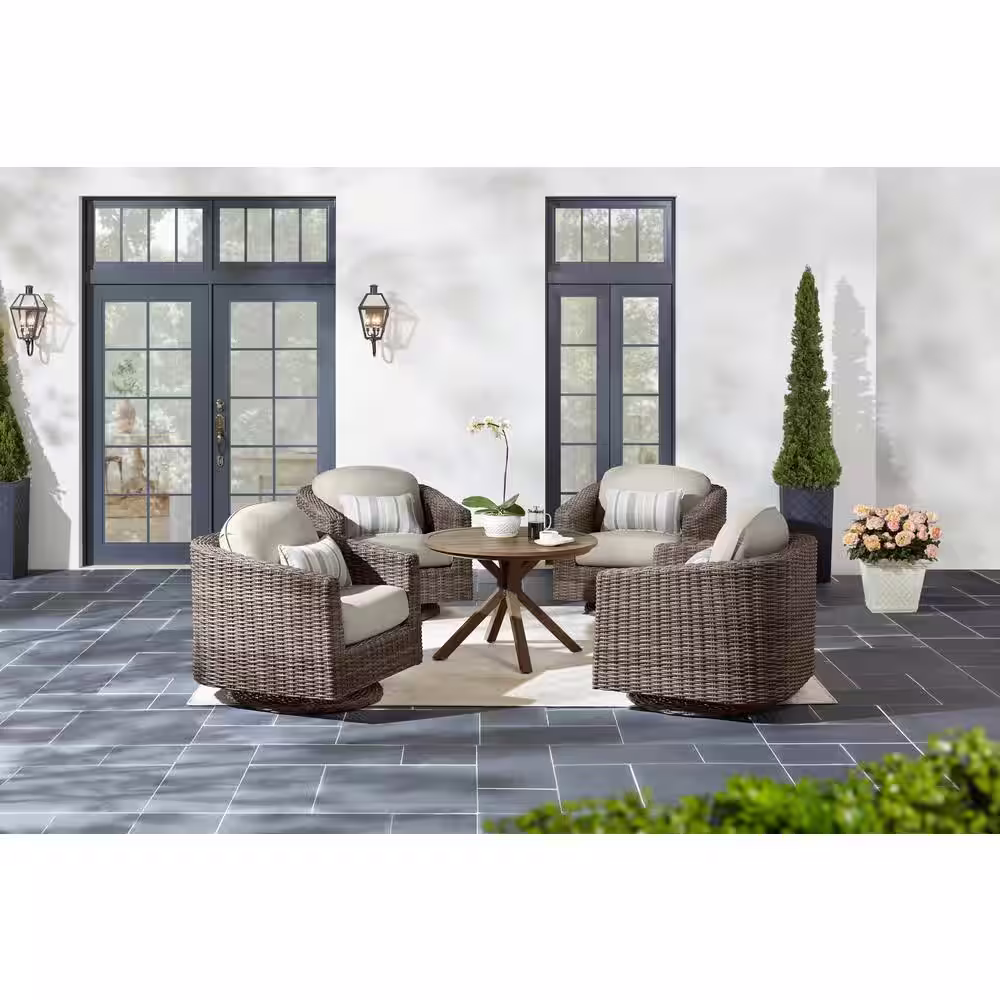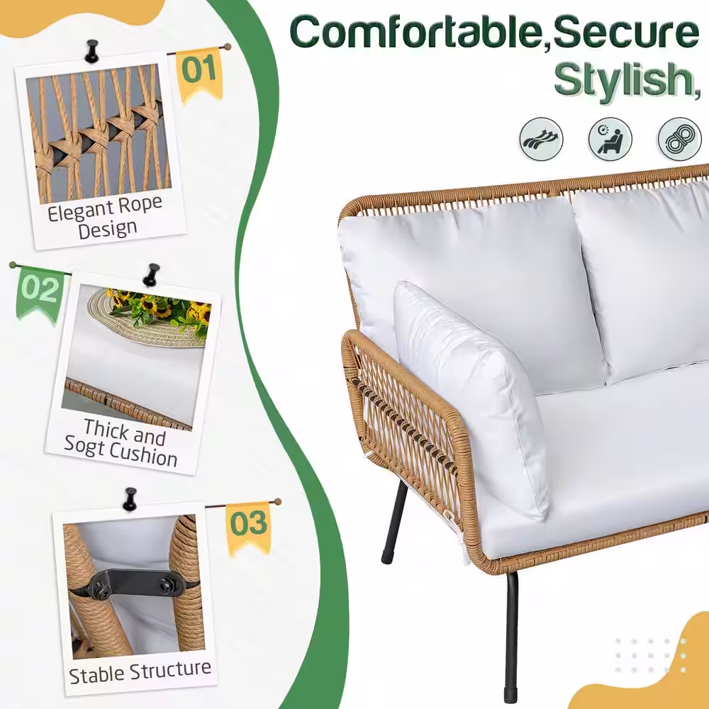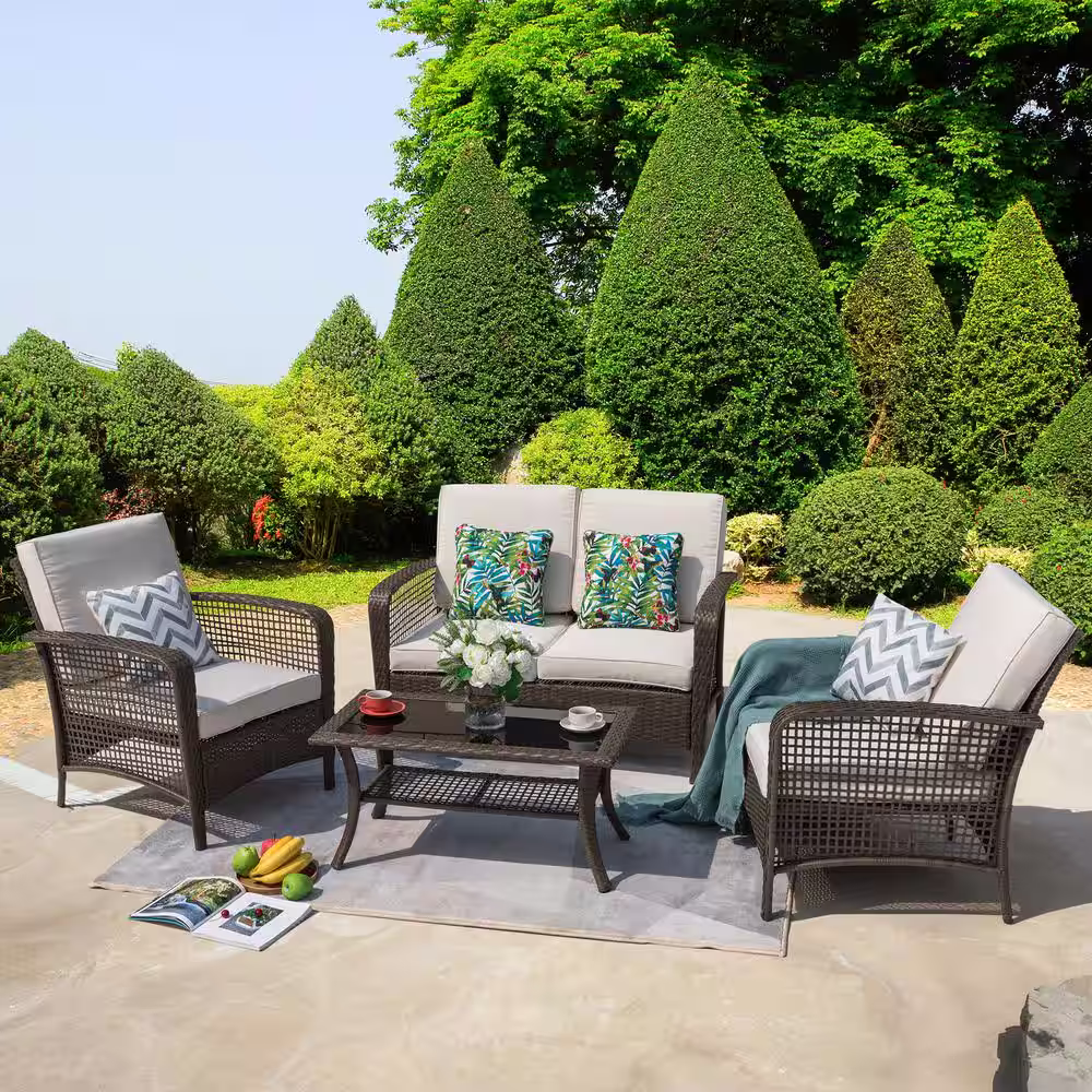 Nuu Garden Rattan 4-Piece Outdoor Wicker Sofa Set Patio Conversation set with Beige Cushions