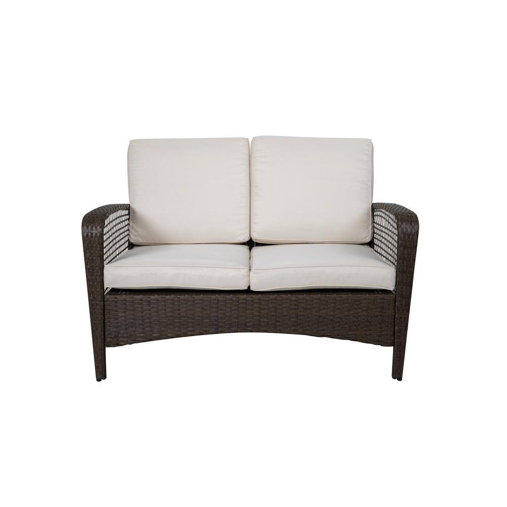 Teamson Home 3 Pieces Wicker Sectional Conversation Set with Cushions - Brown and White