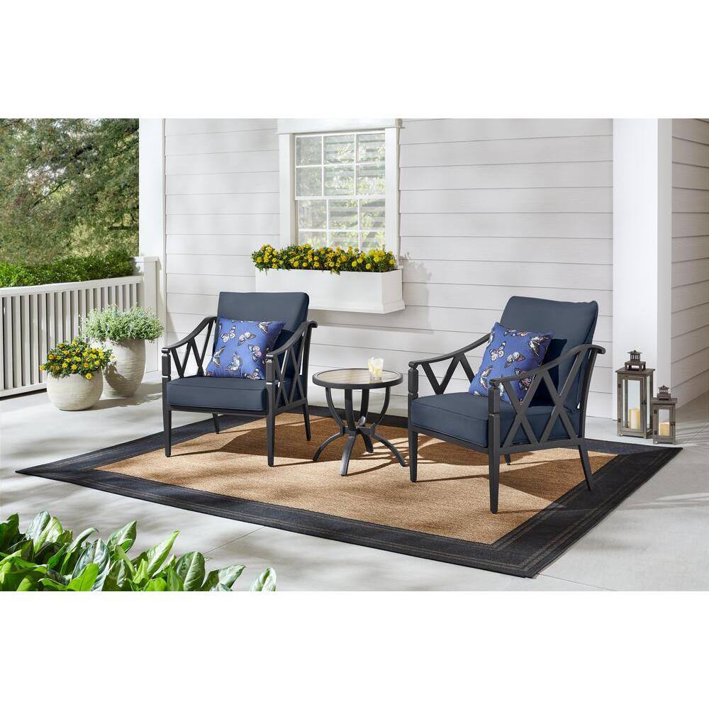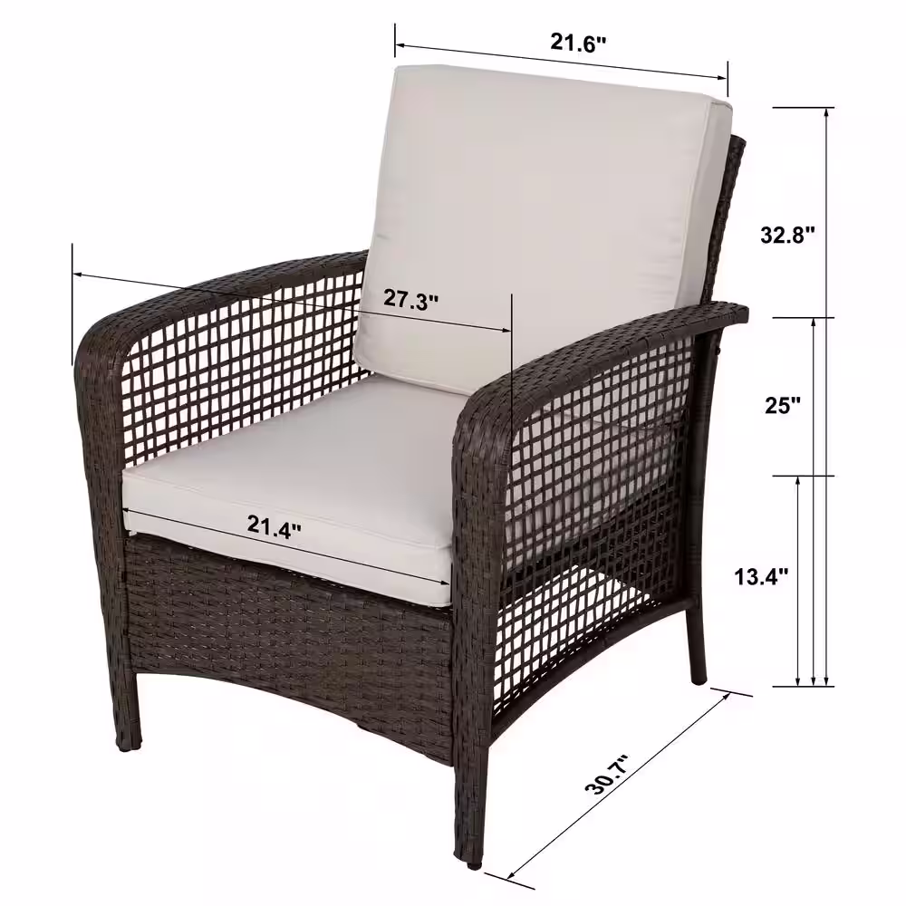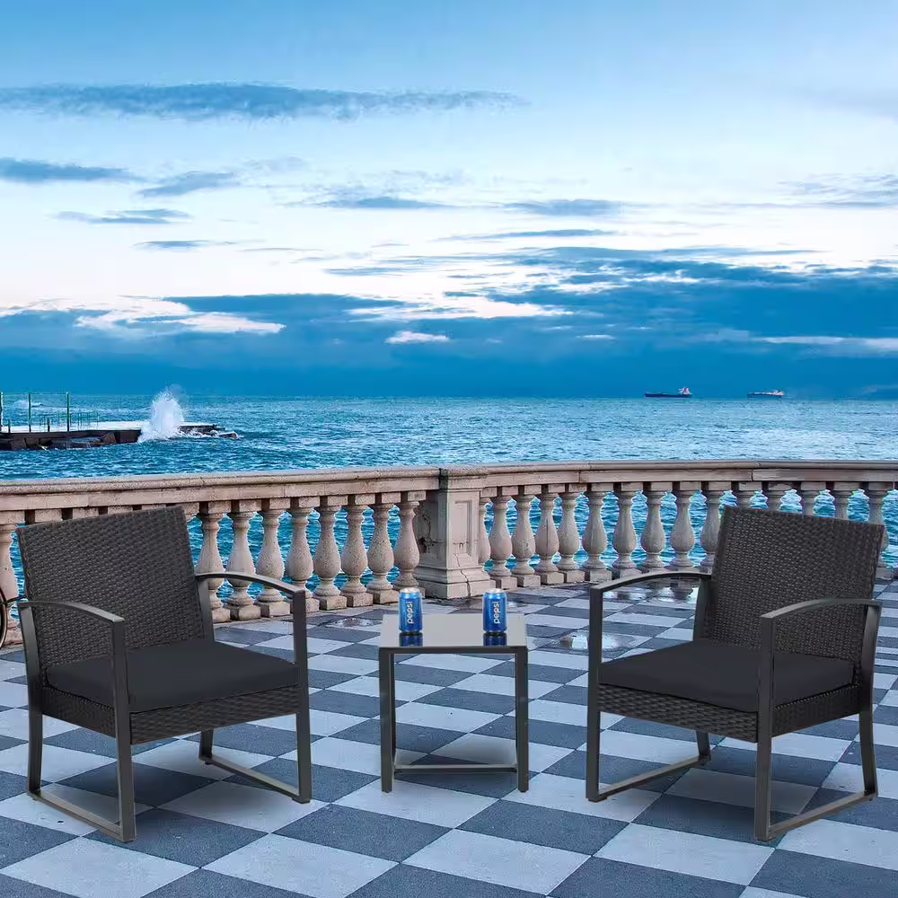 None 3-Piece Wicker Patio Conversation Set Coffee Table and 2 Rattan Chair with Black Cushions