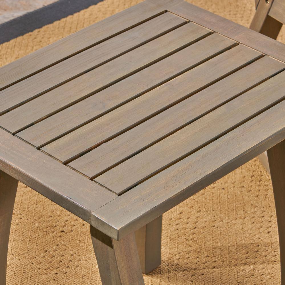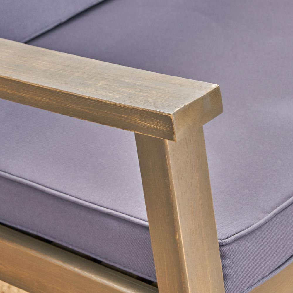 Noble House Candle Grey 3-Piece Wood Patio Conversation Set with Dark Grey Cushions