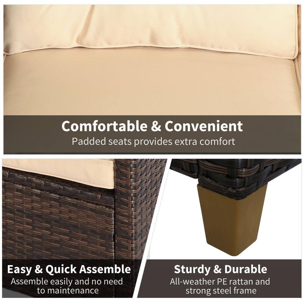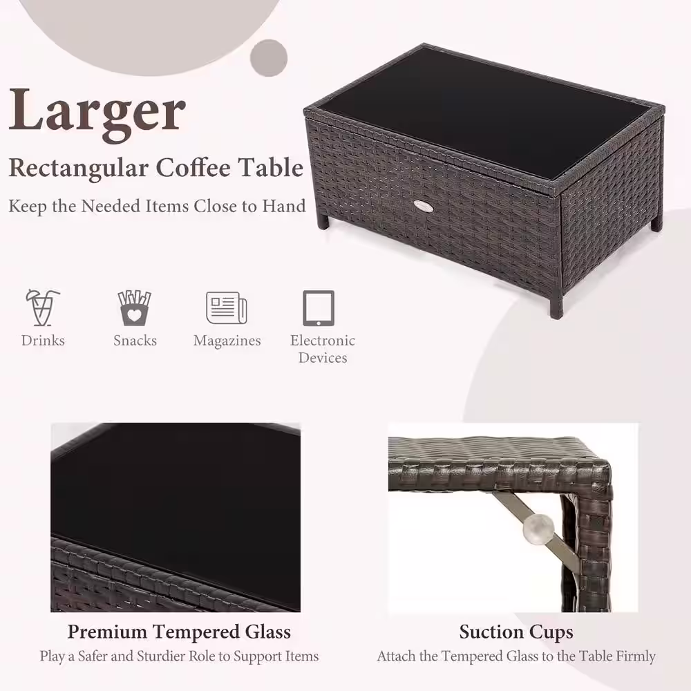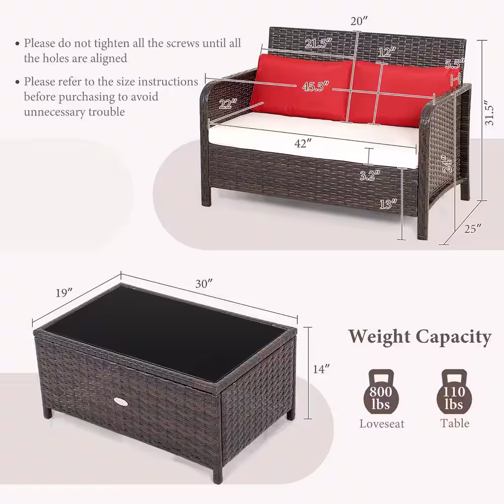 Costway 2-Piece Rattan Wicker Patio Conversation Love-seat Coffee Table Set Cushioned Bench Garden Deck