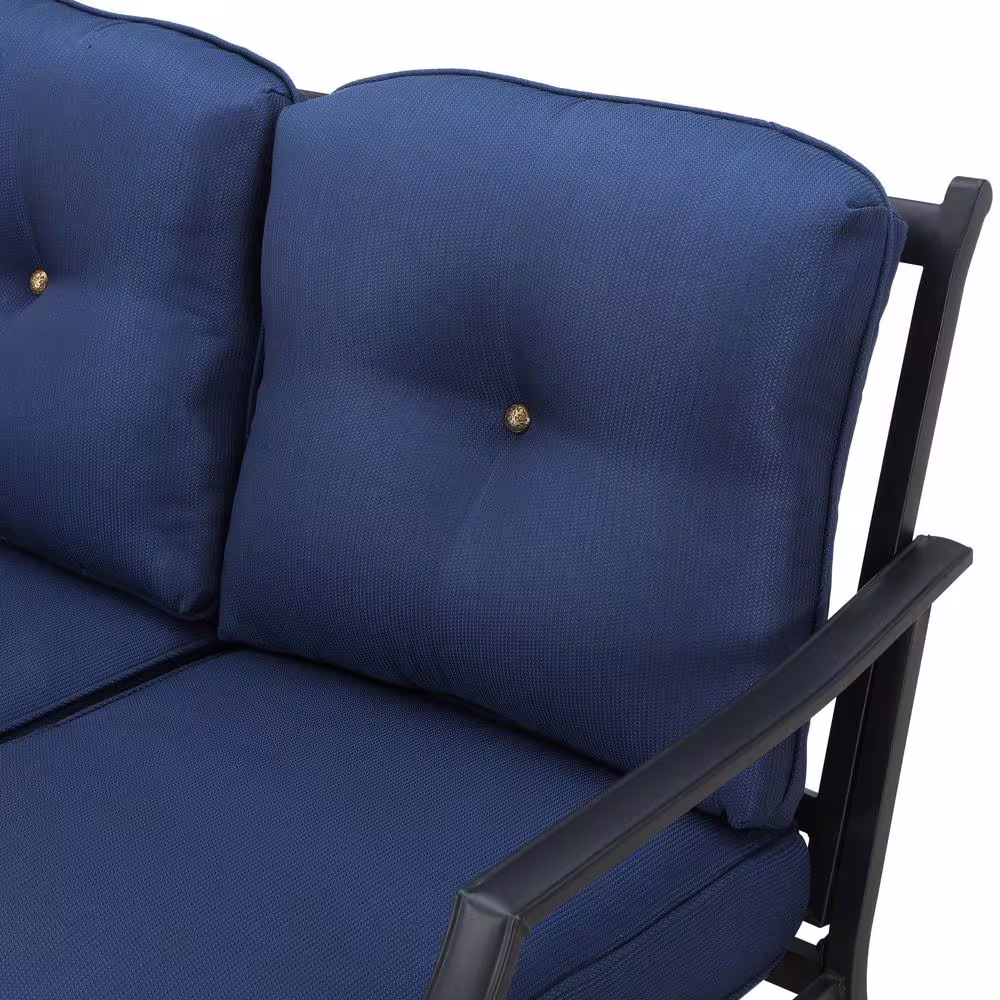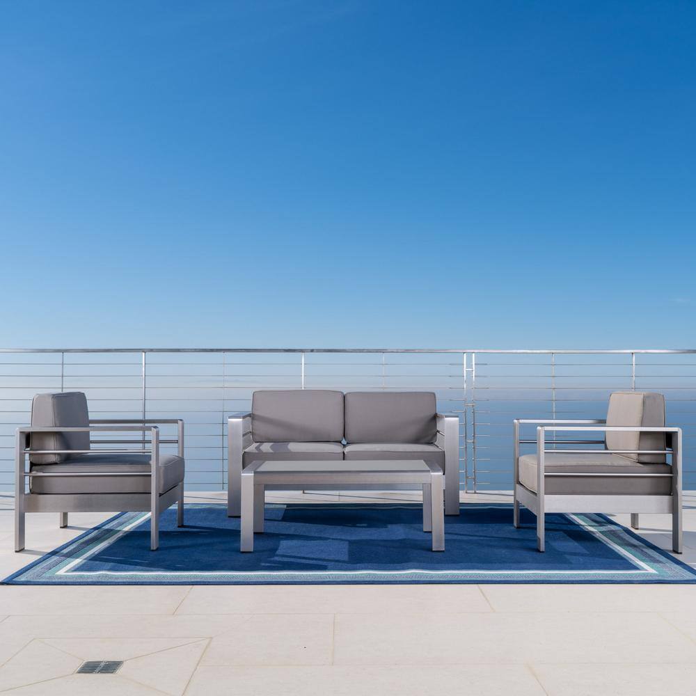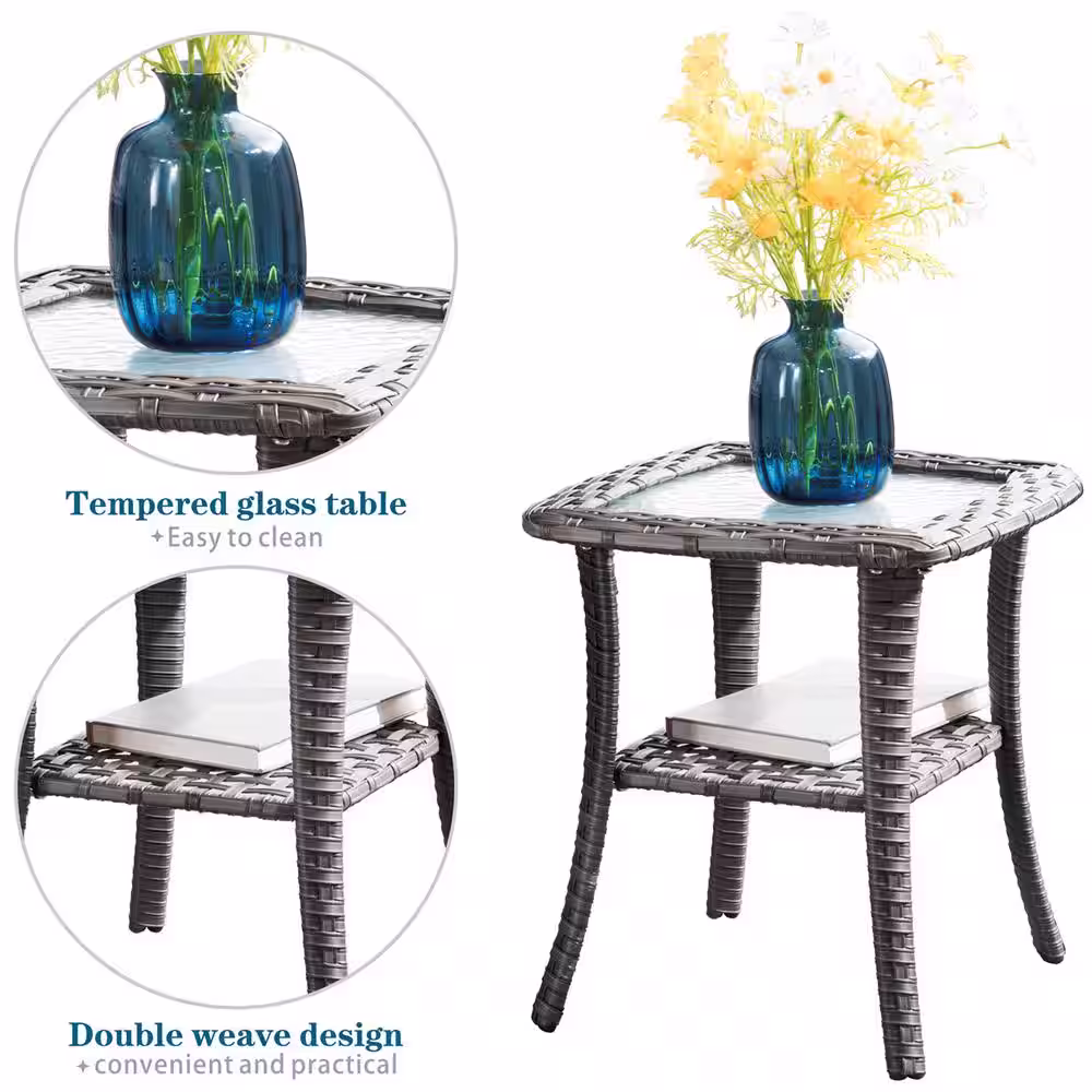 None 3-Piece Aluminum Patio Conversation Set with End Table and Light Gray Cushions
