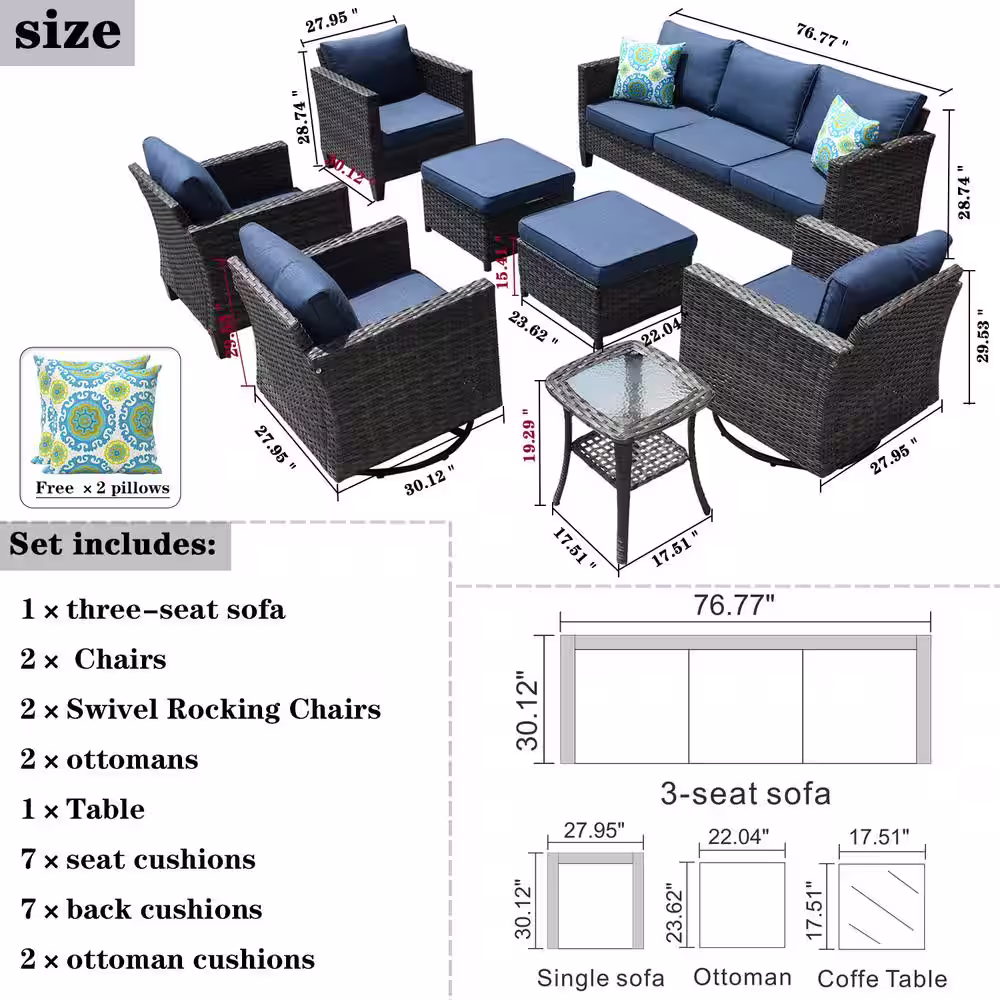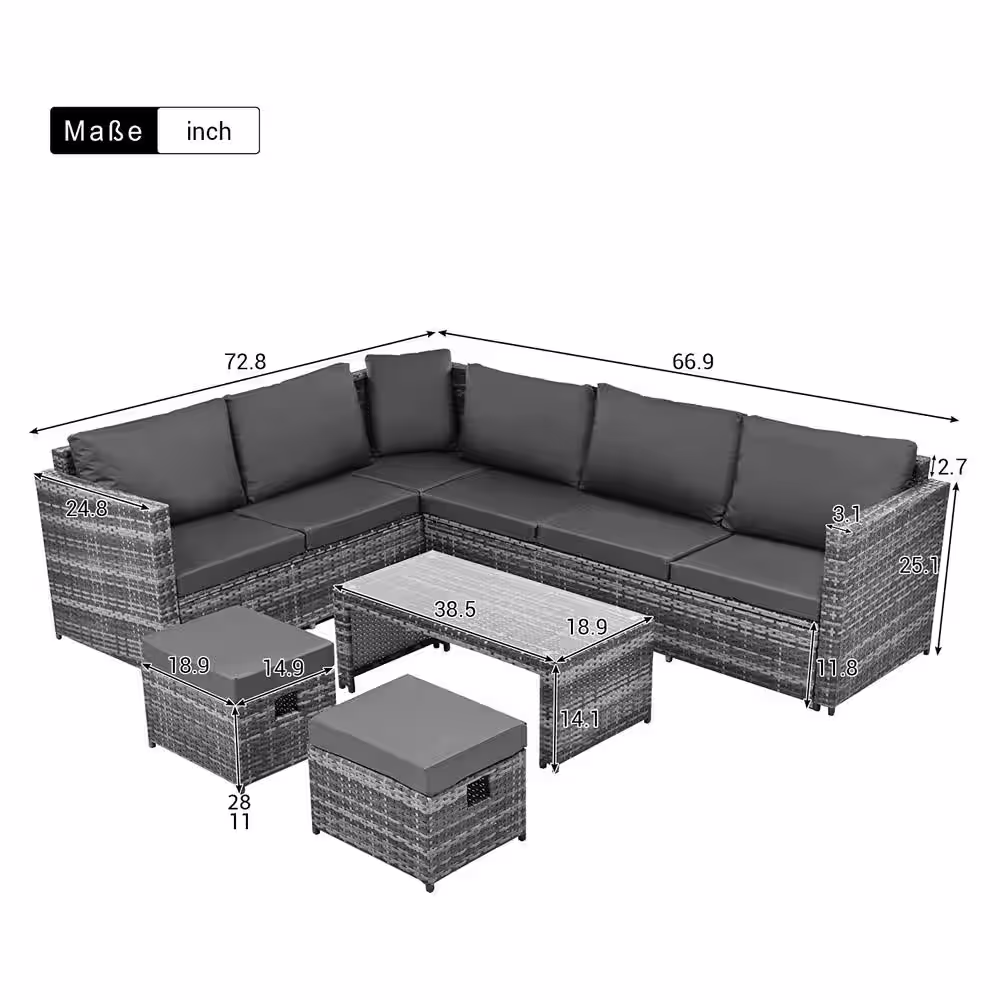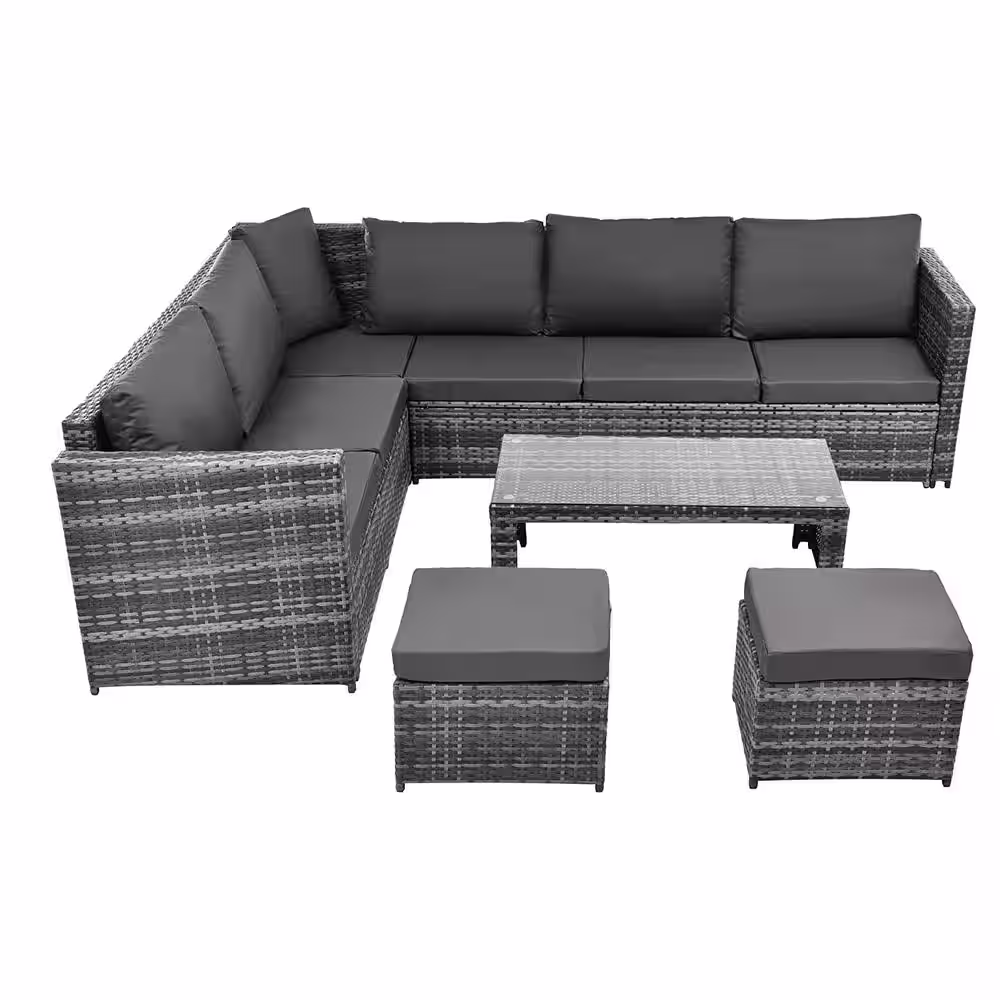 None 7-Piece Outdoor PE Rattan Wicke Patio Conversation Set Clearance with Gray Cushions