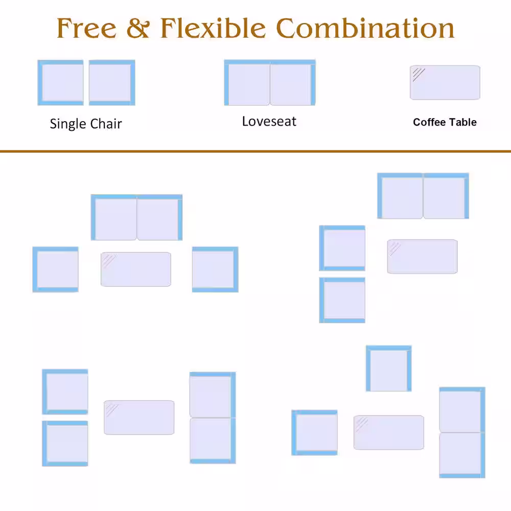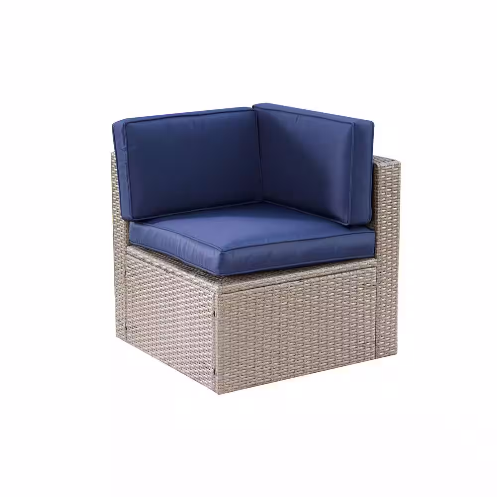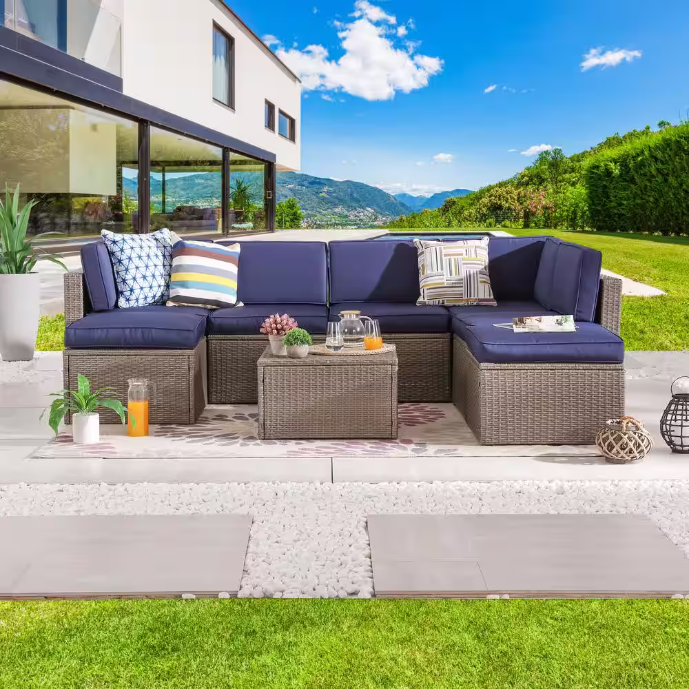 Patio Festival 8-Piece Wicker Patio Sectional Seating Set with Blue Cushions