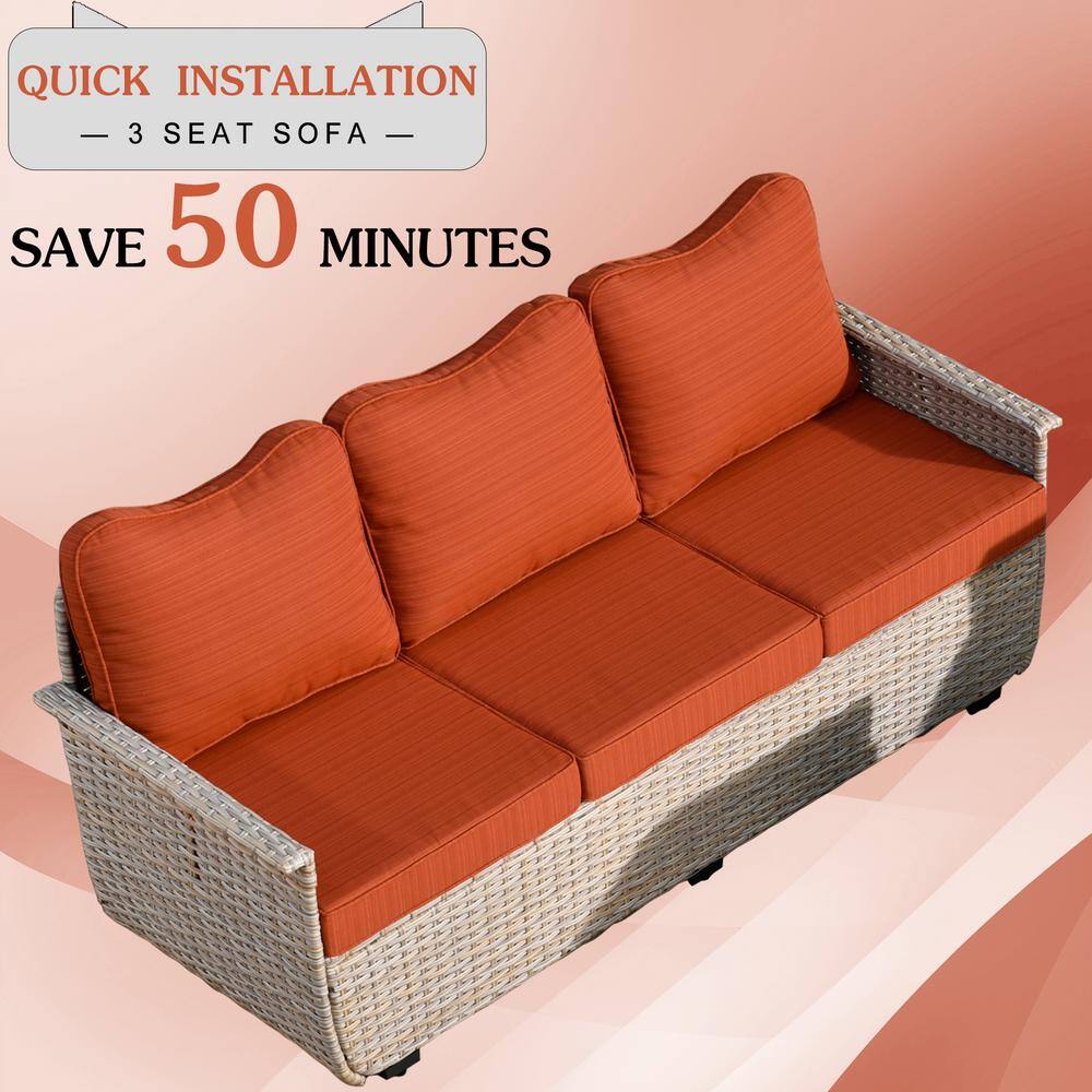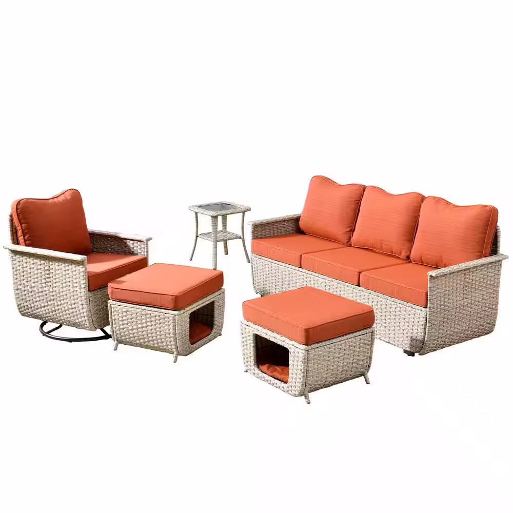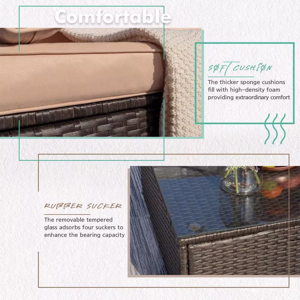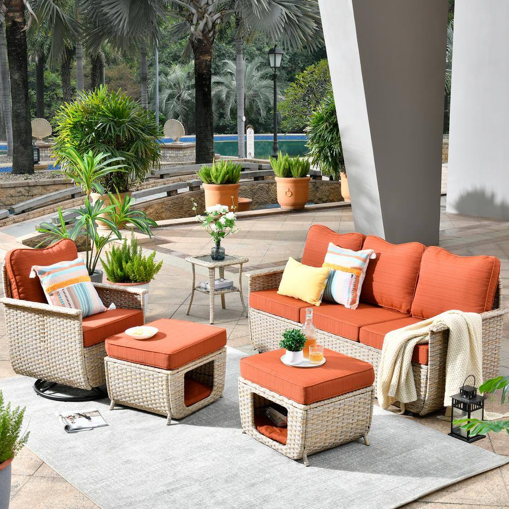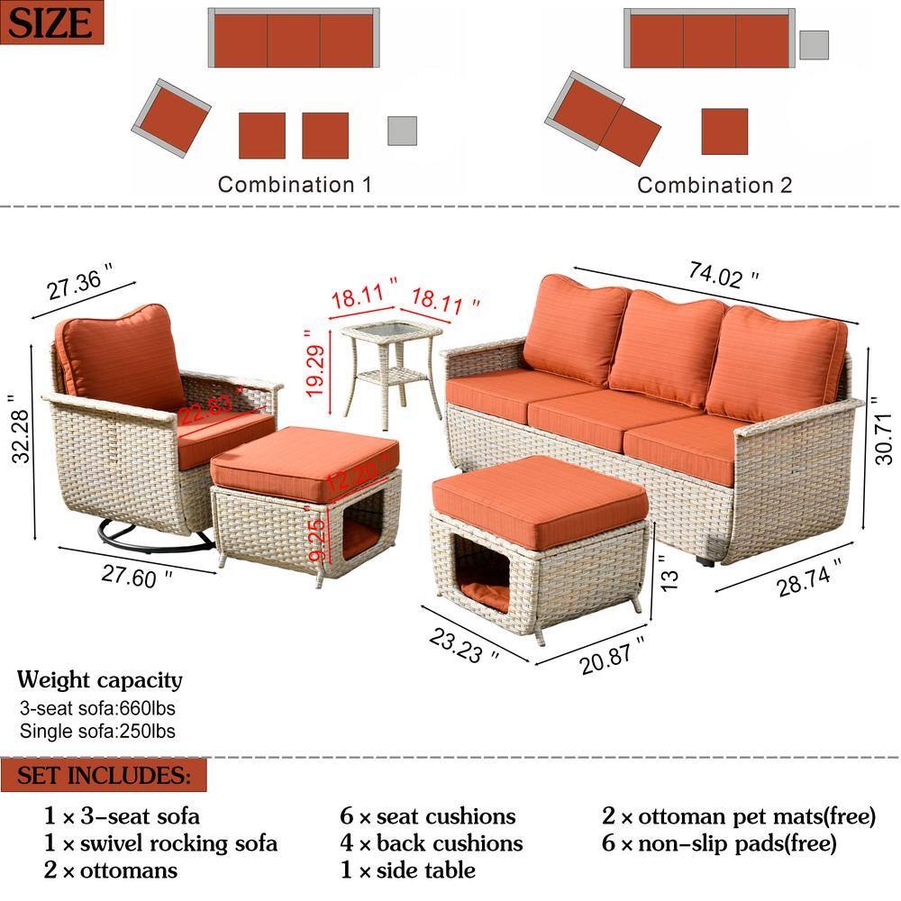 Tozey 7-Pieces PE Rattan Wicker Patio Furniture Sectional Set Outdoor Lawn Conversation Sets with Beige Cushion