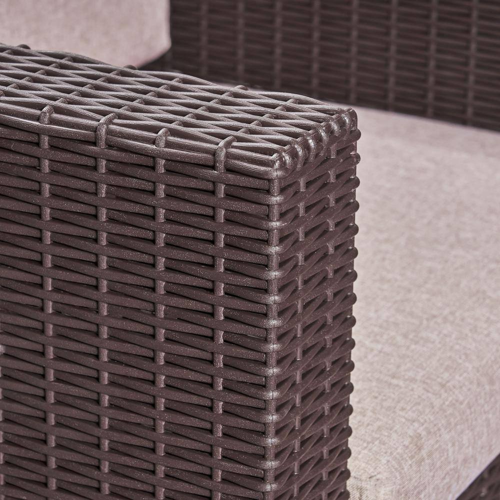 Noble House Primrose Dark Brown 4-Piece All Weather Faux Rattan Patio Conversation Set with Beige Cushions