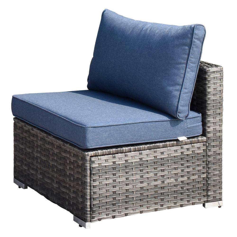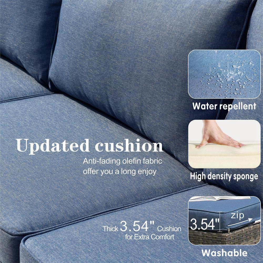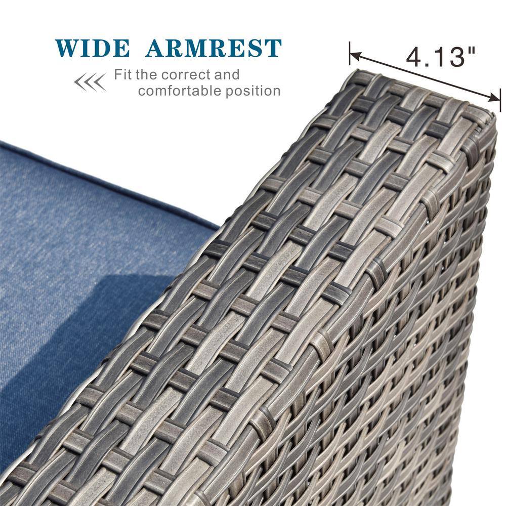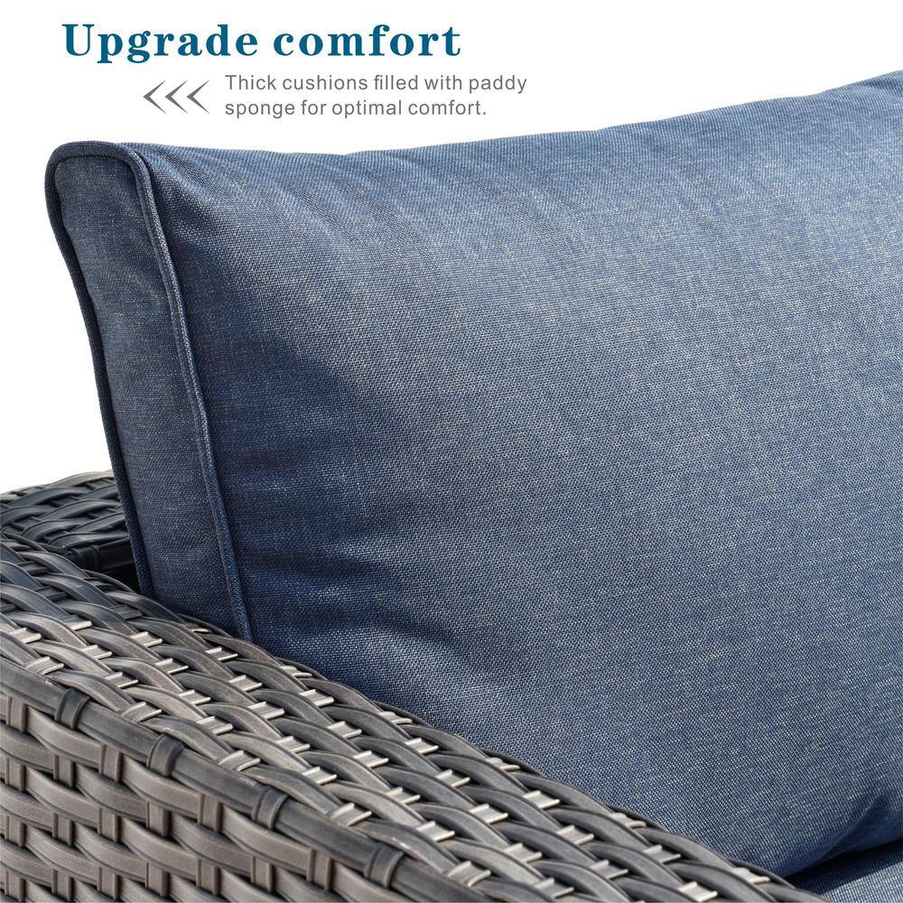 HOOOWOOO Messi Grey 9-Piece Wicker Outdoor Patio Conversation Sofa Seating Set with Denim Blue Cushions