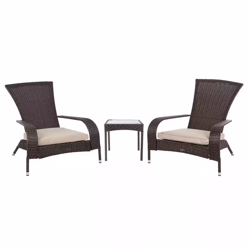 Patio Sense Coconino Mocha 3-Piece Resin Wicker Patio Conversation Set with Polyester Tan Cushions