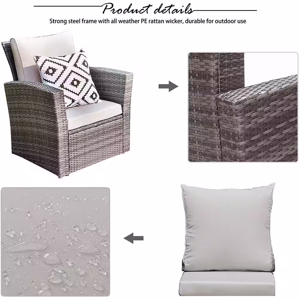 Nestfair 8-Piece Wicker Patio Conversation Set with Gray Cushions and 2 Coffee Tables