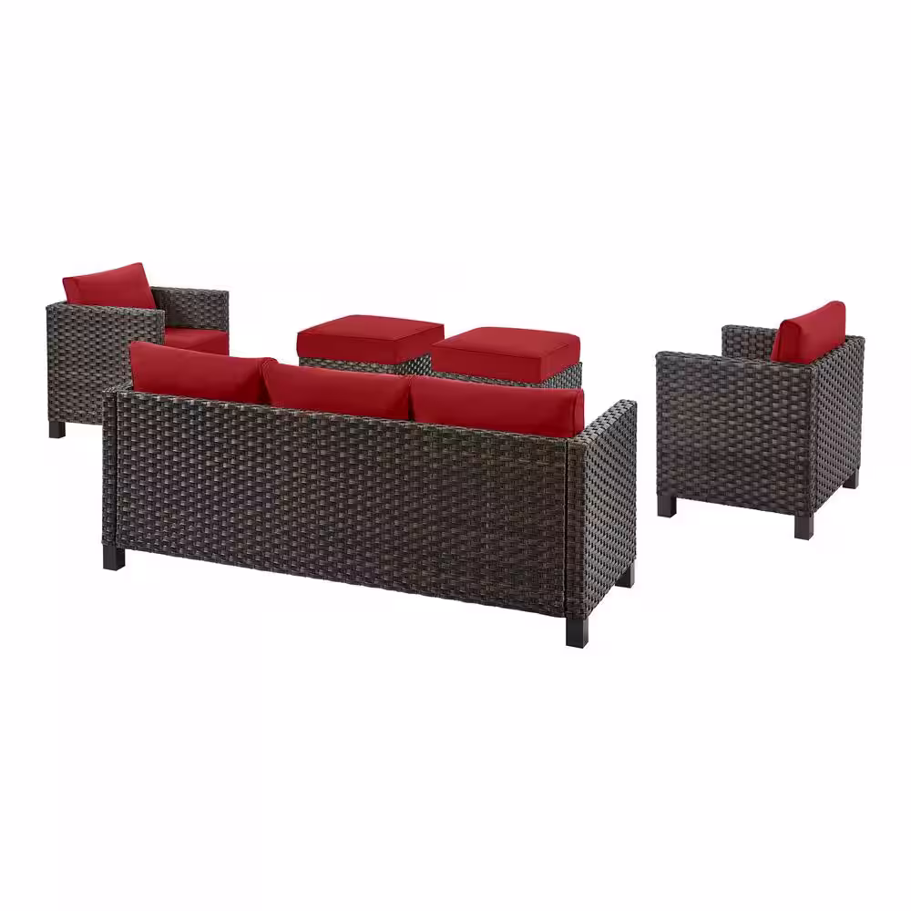 StyleWell Sharon Hill 5-Piece Wicker Patio Conversation with Chili Cushions