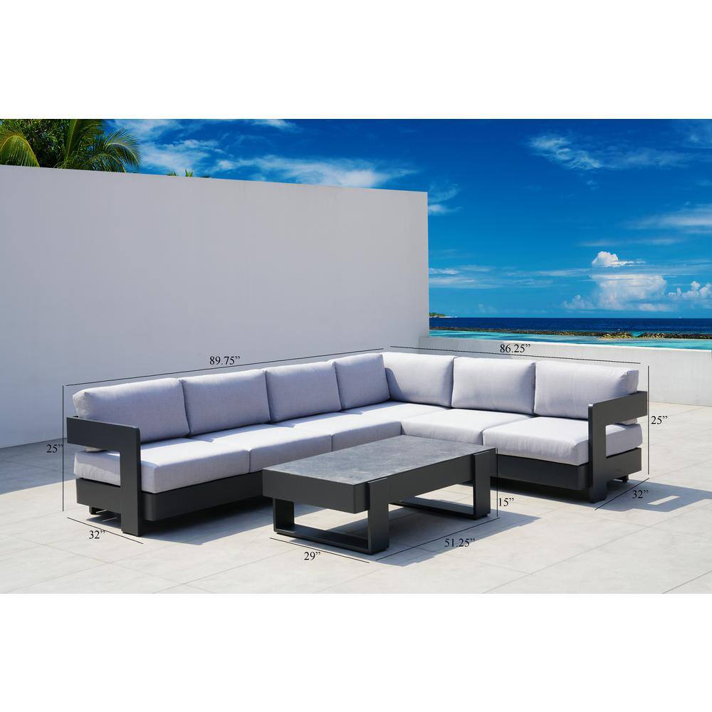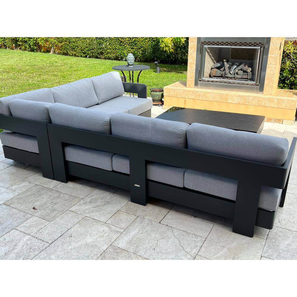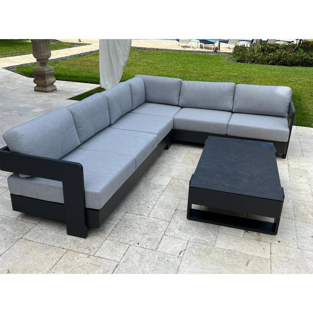 None Carmines Dark Gray 3-Piece Aluminum Outdoor Corner Estate Sized Sectional Set