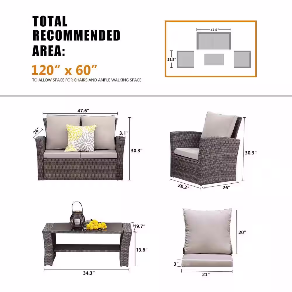 Canopy Sycamore 4-Piece Resin Wicker Patio Deep Seating Set with Sunbrella Canvas Heather Beige Cushions