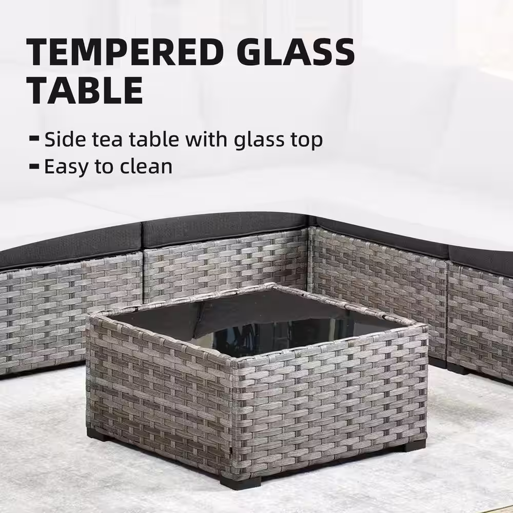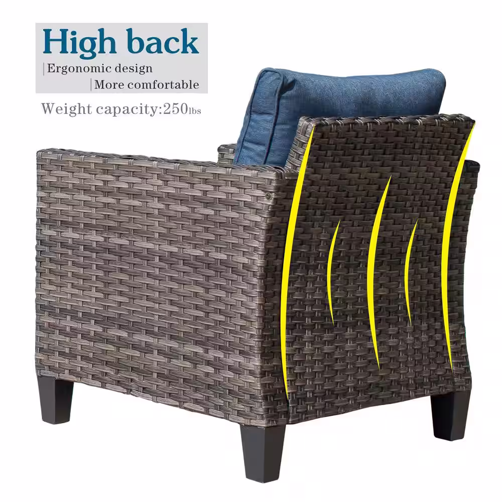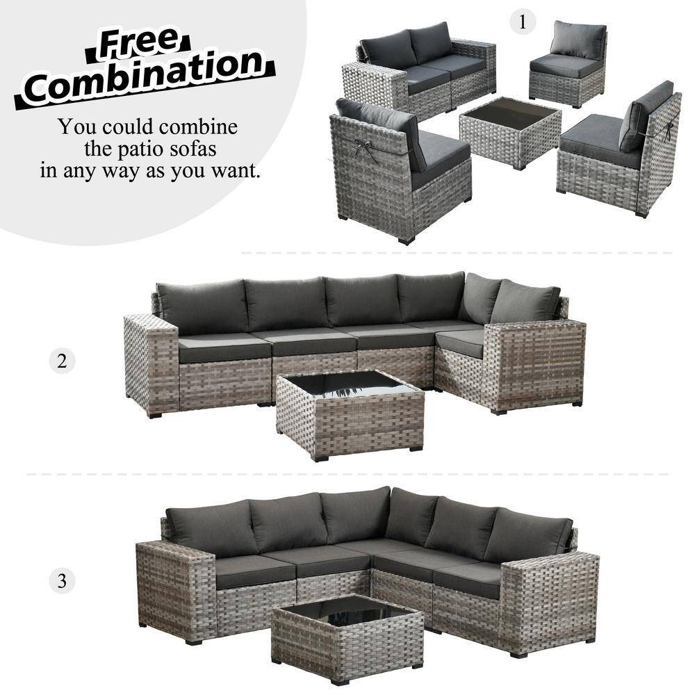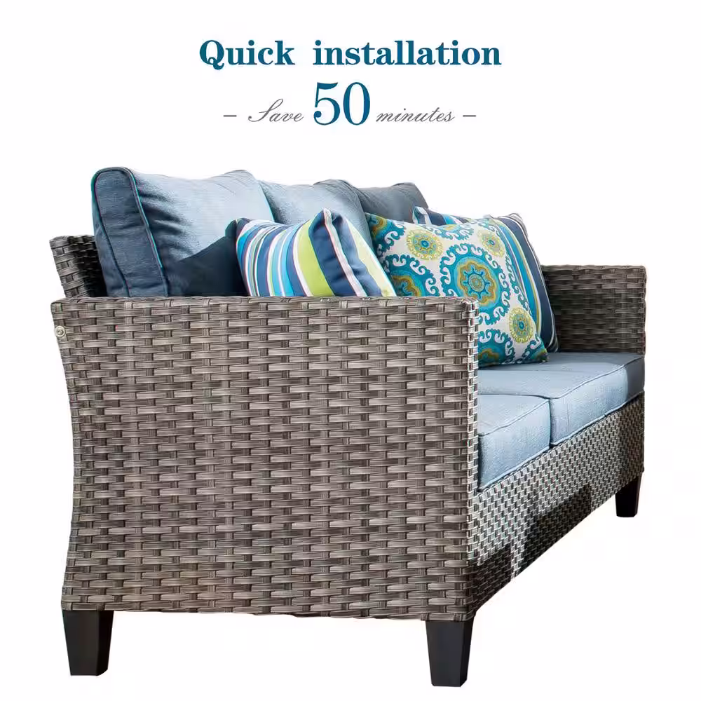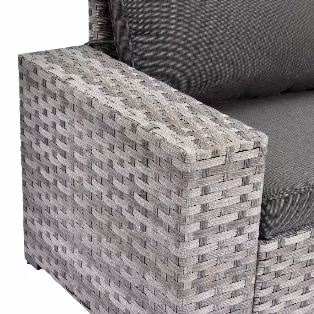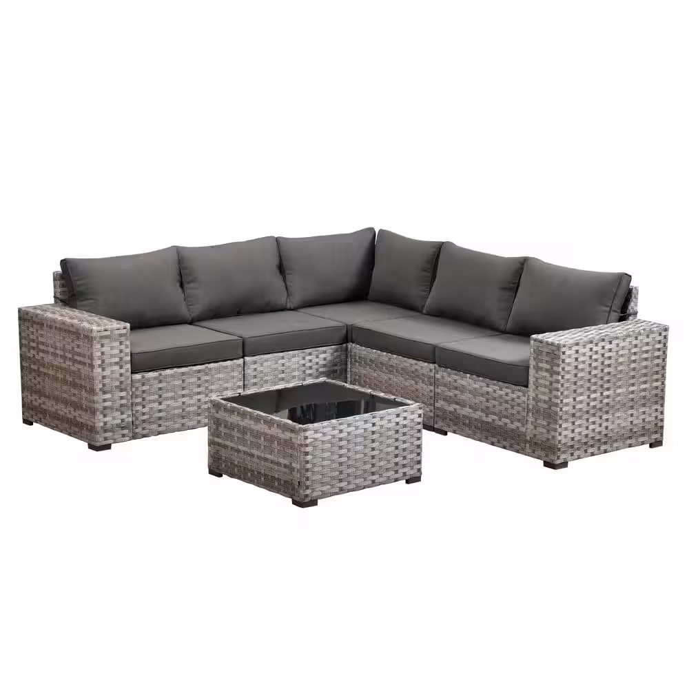 HOOOWOOO Tahoe Gray 6-Piece Wicker Extra-Wide Arm Outdoor Patio Conversation Sofa Set with Black Cushions