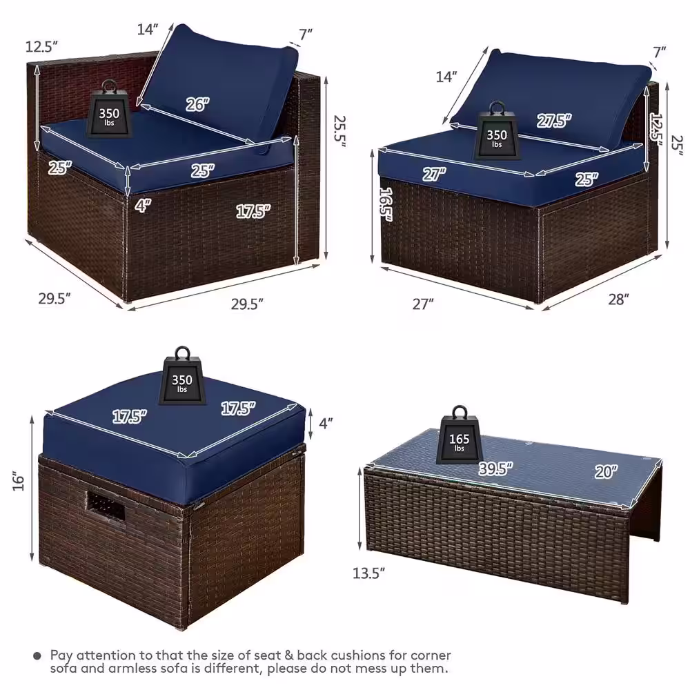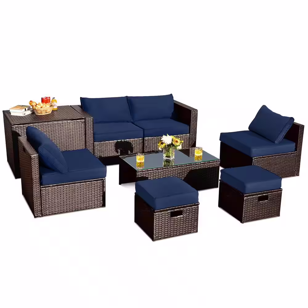 Costway 8-Piece Patio Rattan Furniture Set Space-Saving Storage Cushion Navy Cover