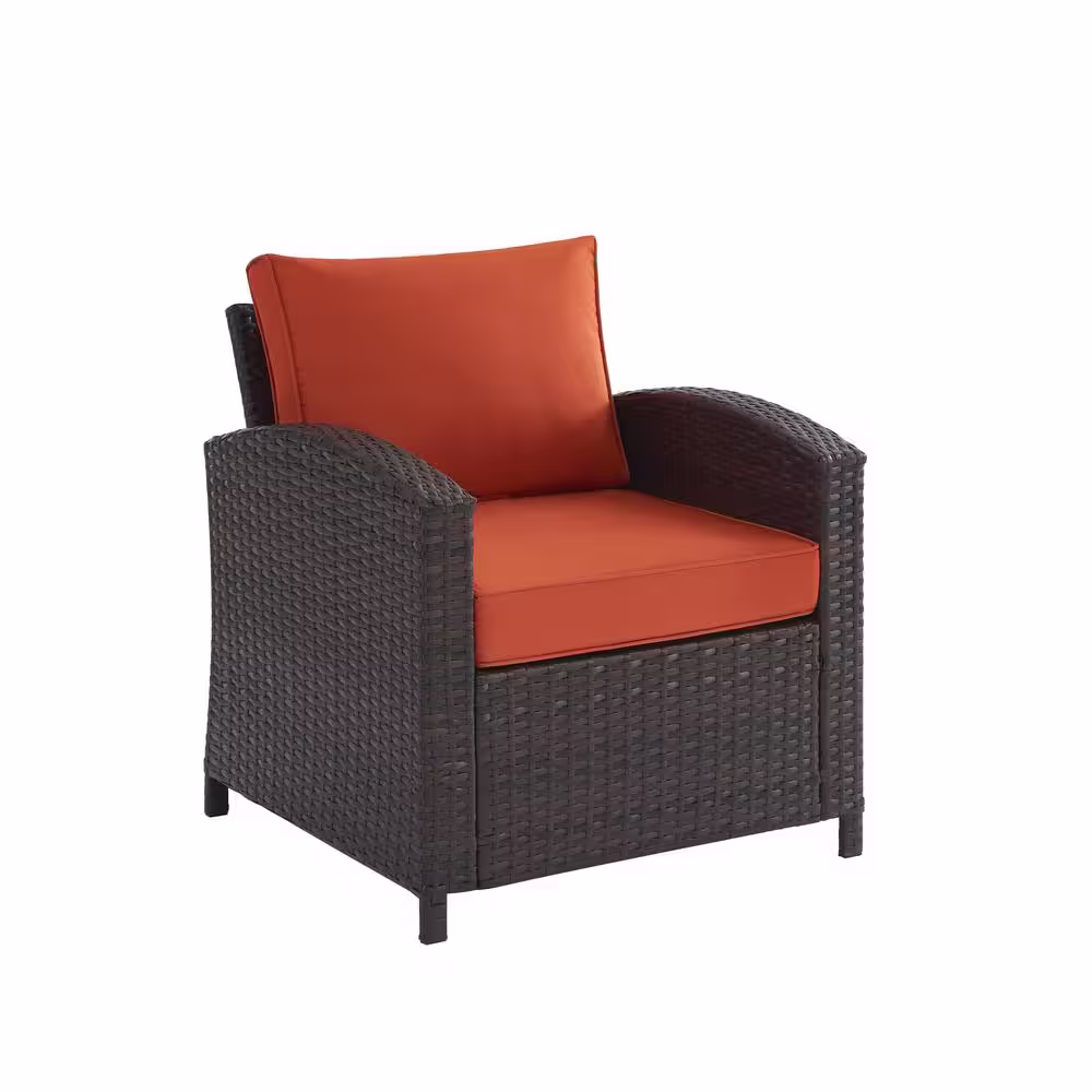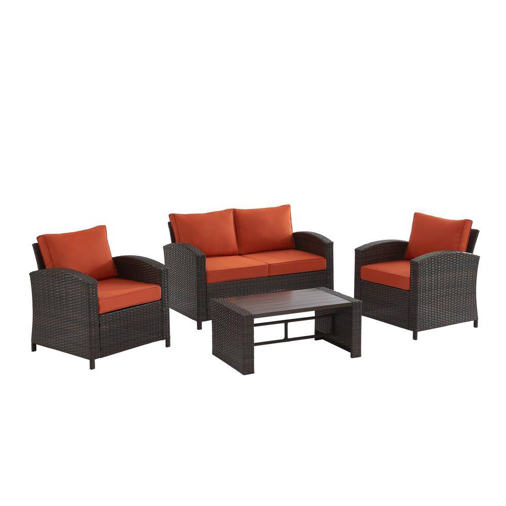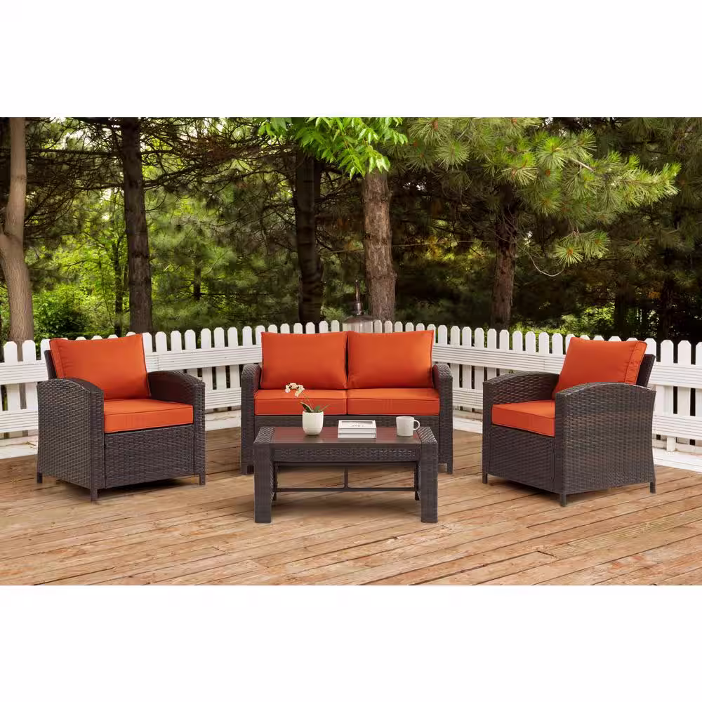 Hampton Bay Fernlake 4-Piece Brown Wicker Patio Conversation Set with CushionGuard Midnight Cushions