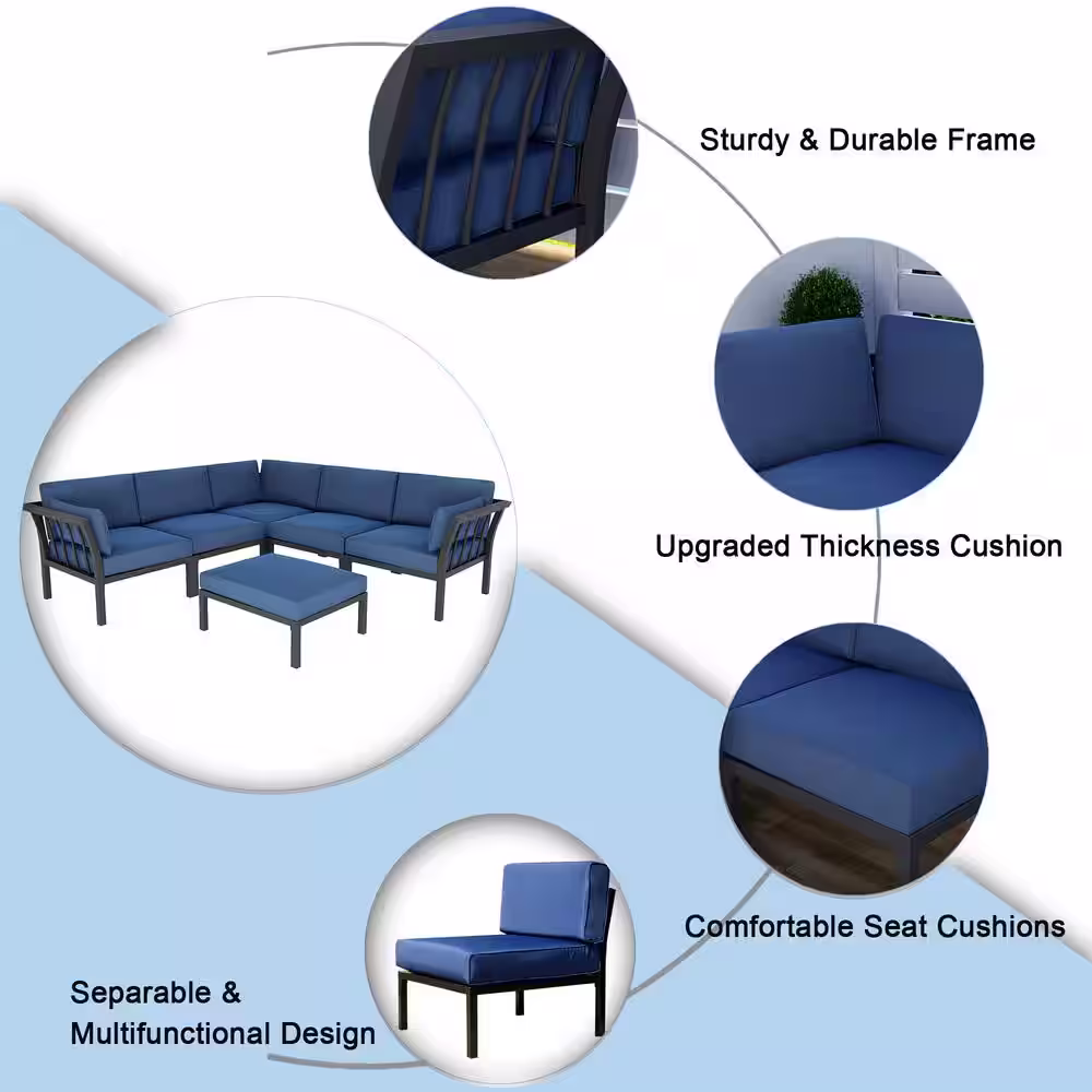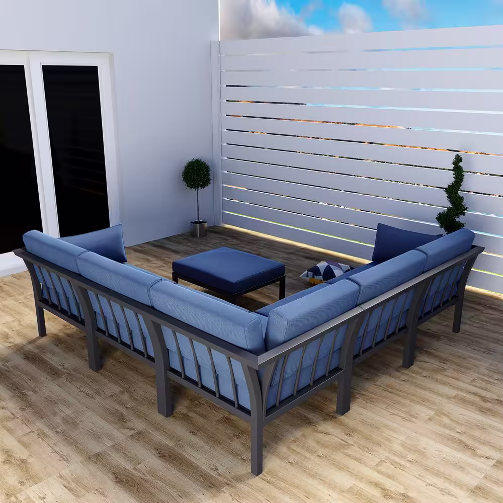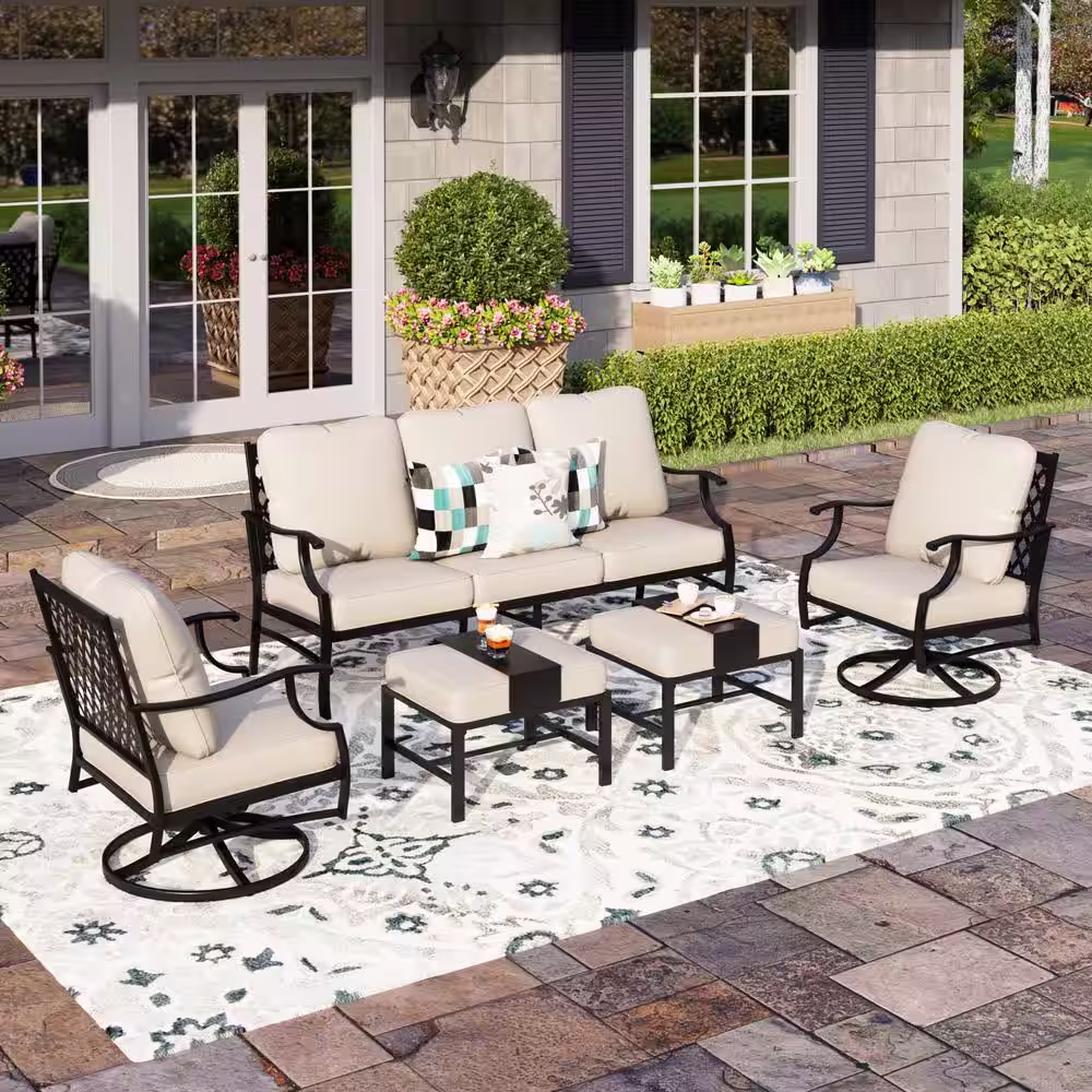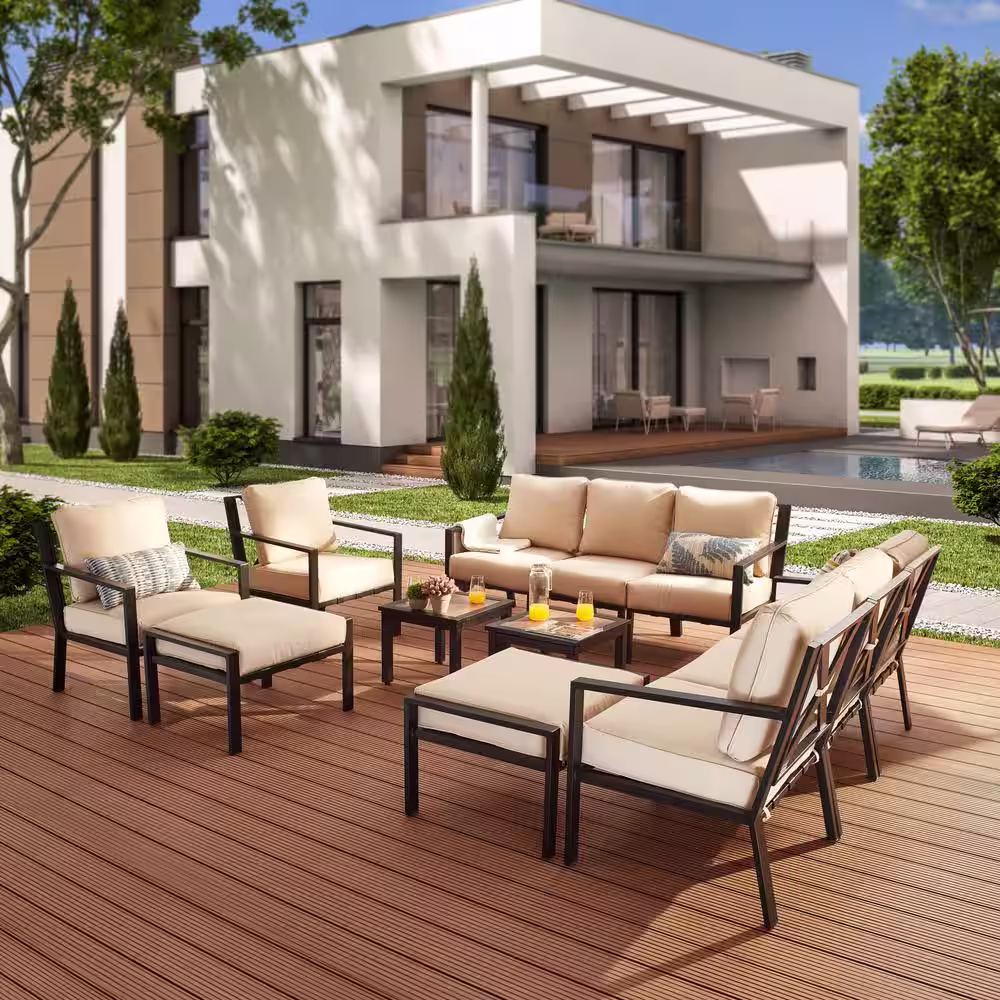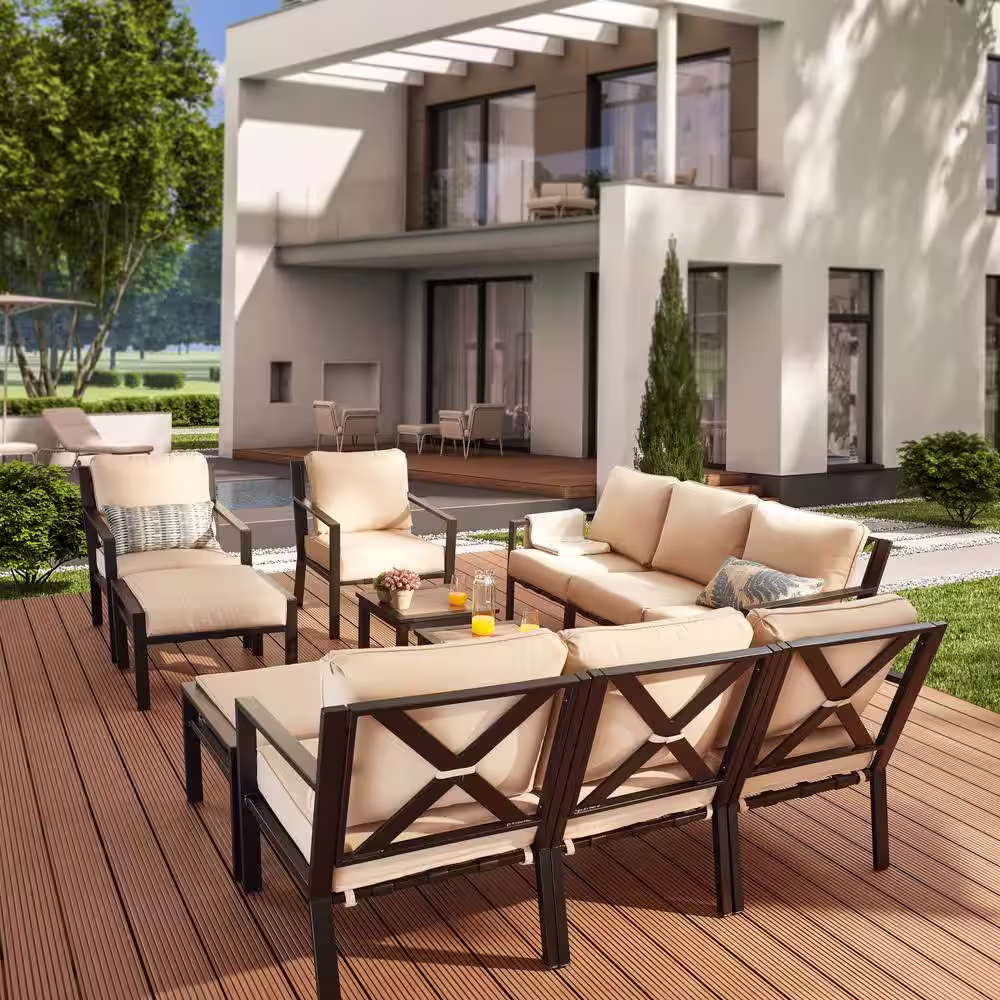 Patio Festival X-Back 12-Piece Metal Patio Conversation Seating Set with Beige Cushions