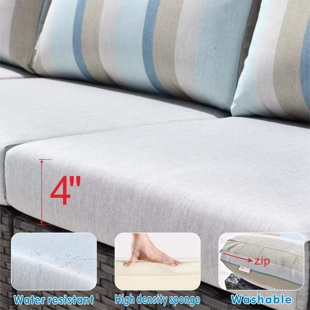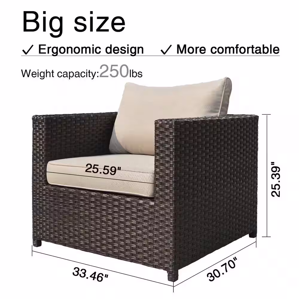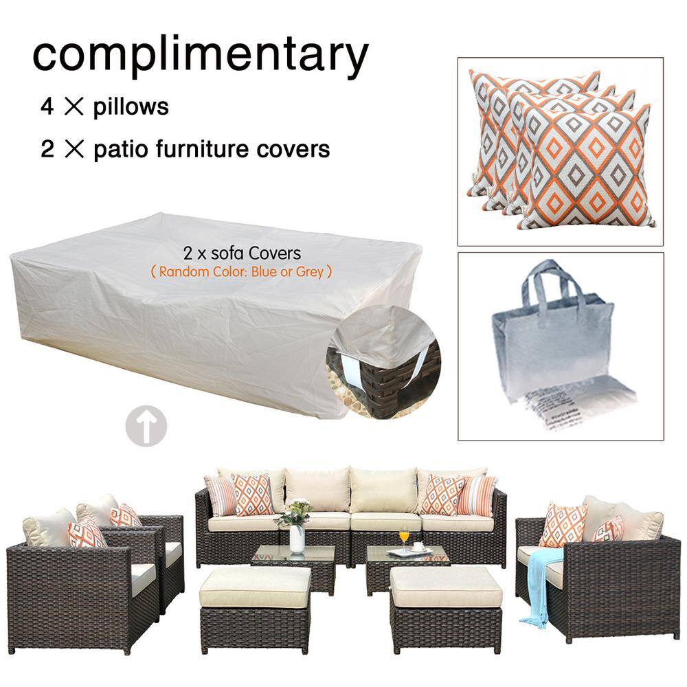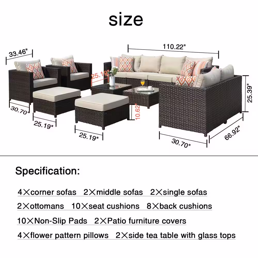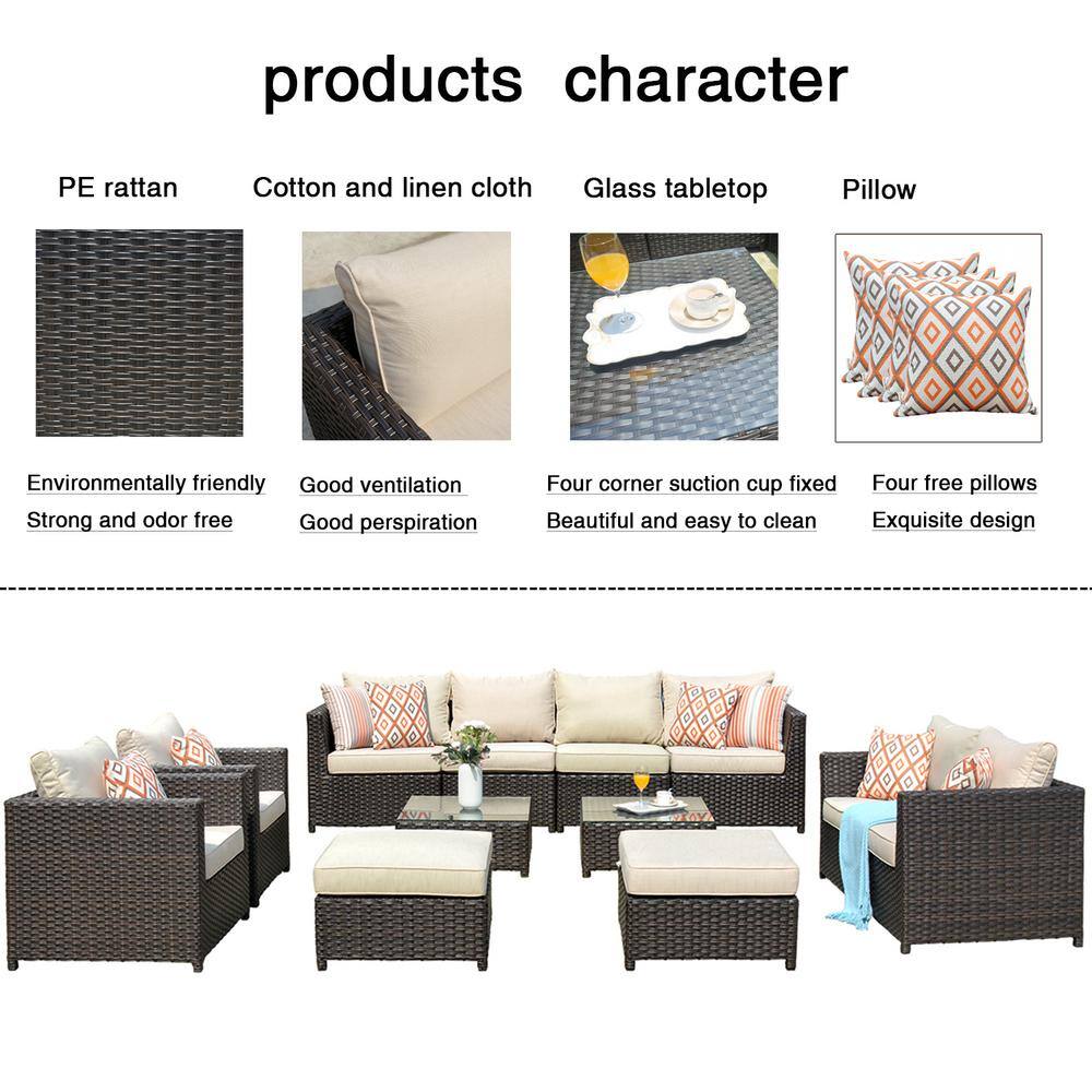 OVIOS Wassilka 12-Piece Big Size Wicker Patio Conversation Set with Beige Cushions