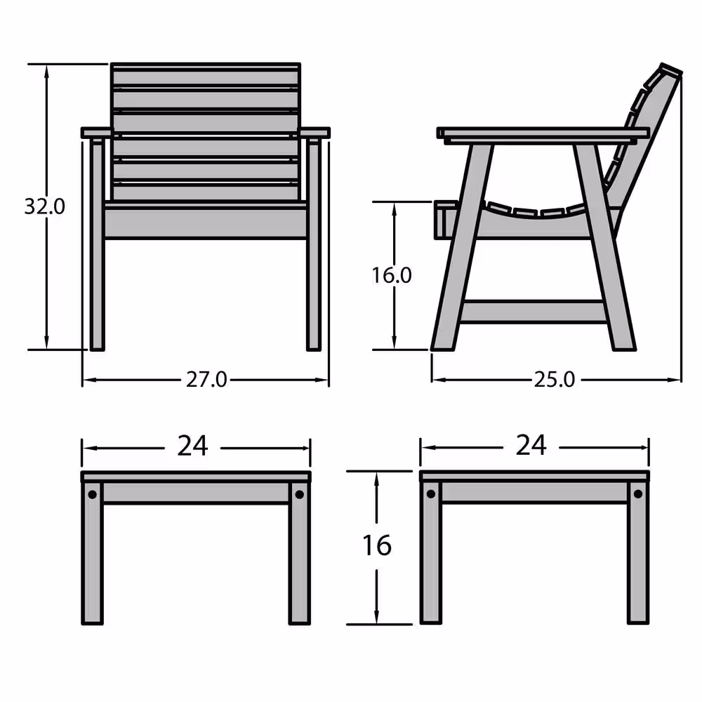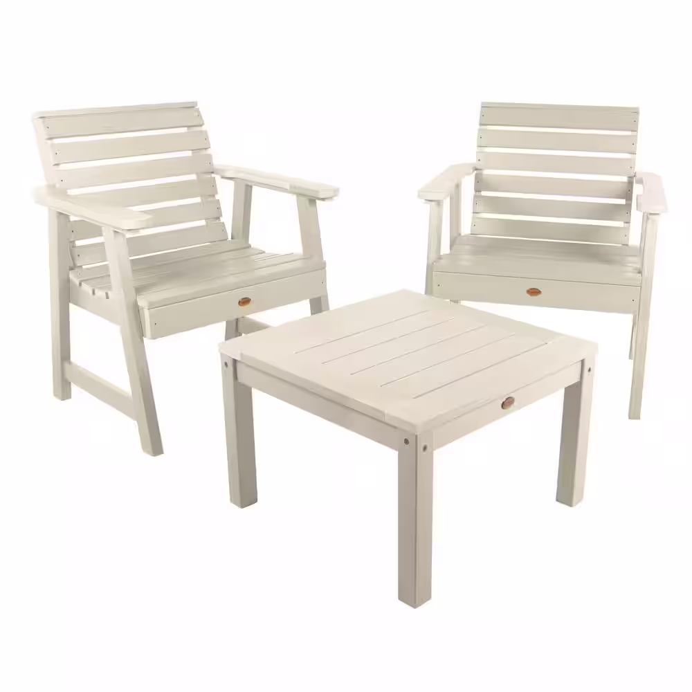 Highwood Weatherly Whitewash 3-Piece Recycled Plastic Patio Conversation Set