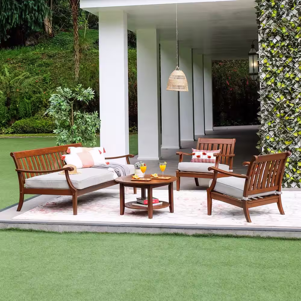 Cambridge Casual Maine Mahogany 4-Piece Wood Patio Conversation Set with Oyster Cushion