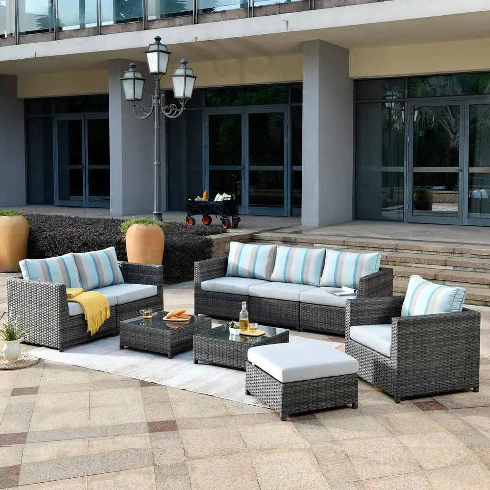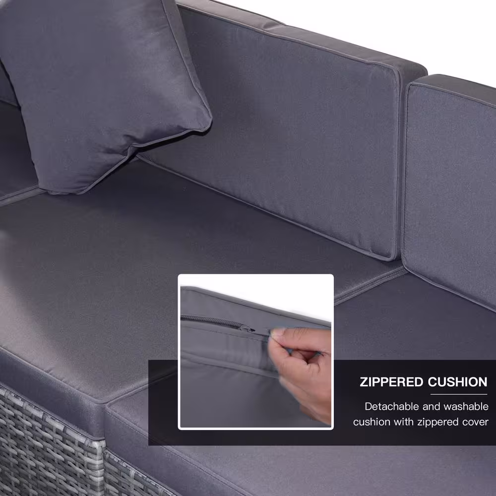 Outsunny Patio Life Ash Grey 7-Pieces Steel Plastic Rattan Patio Conversation Set with Grey Cushions