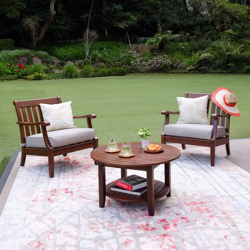 Noble House Hampton Natural 3-Piece Wood Patio Conversation Seating Set