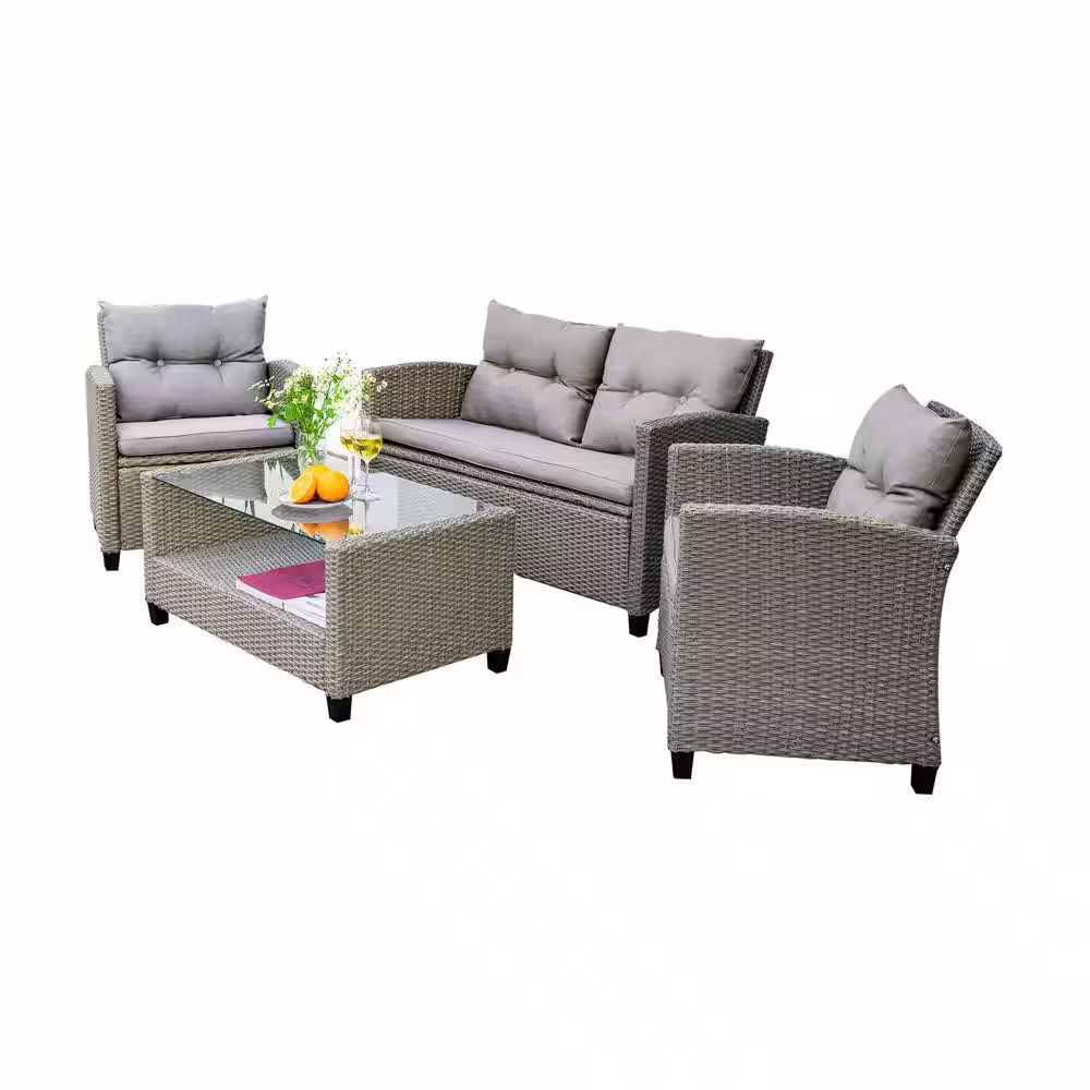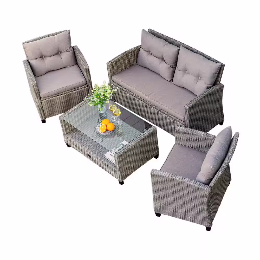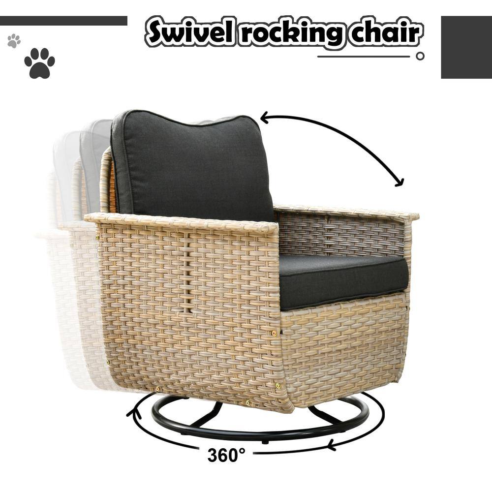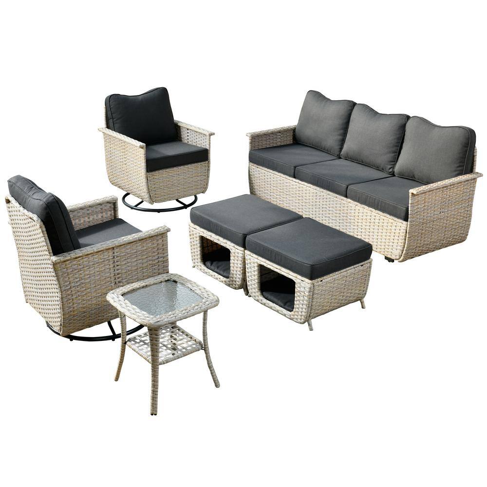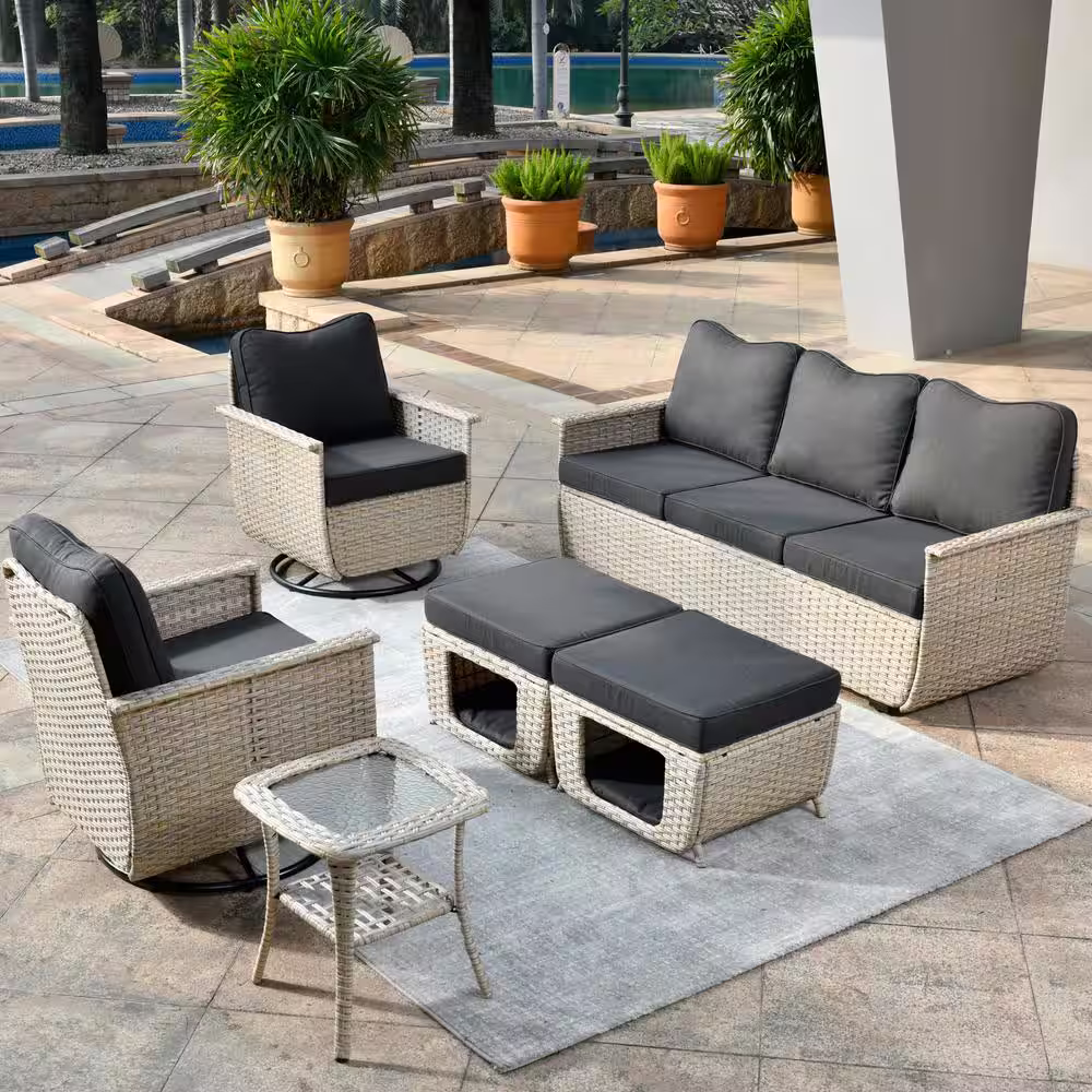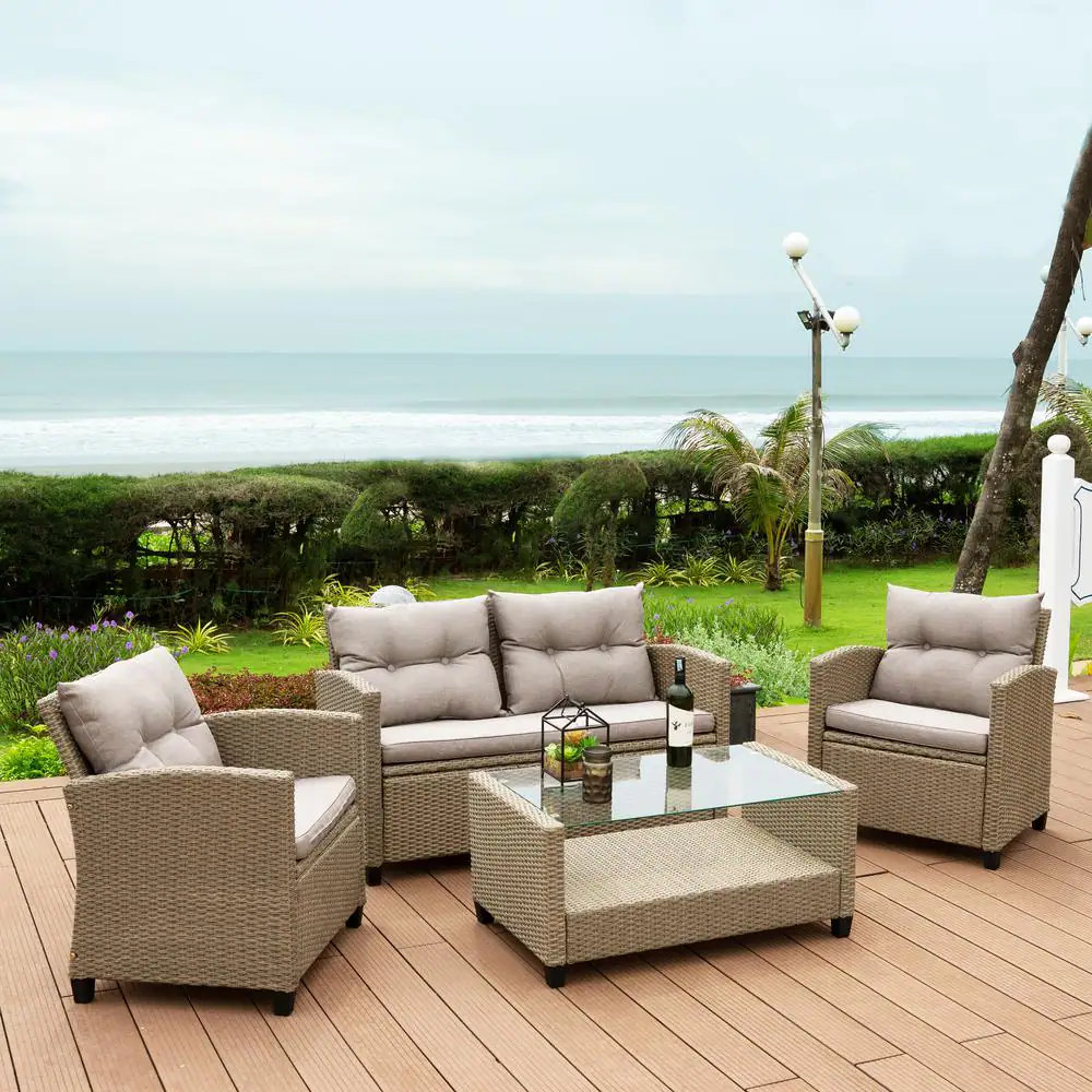 Gymojoy Carolina Brown Wicker Patio Conversation Deep Seating Set with Olefin Beige Cushions
