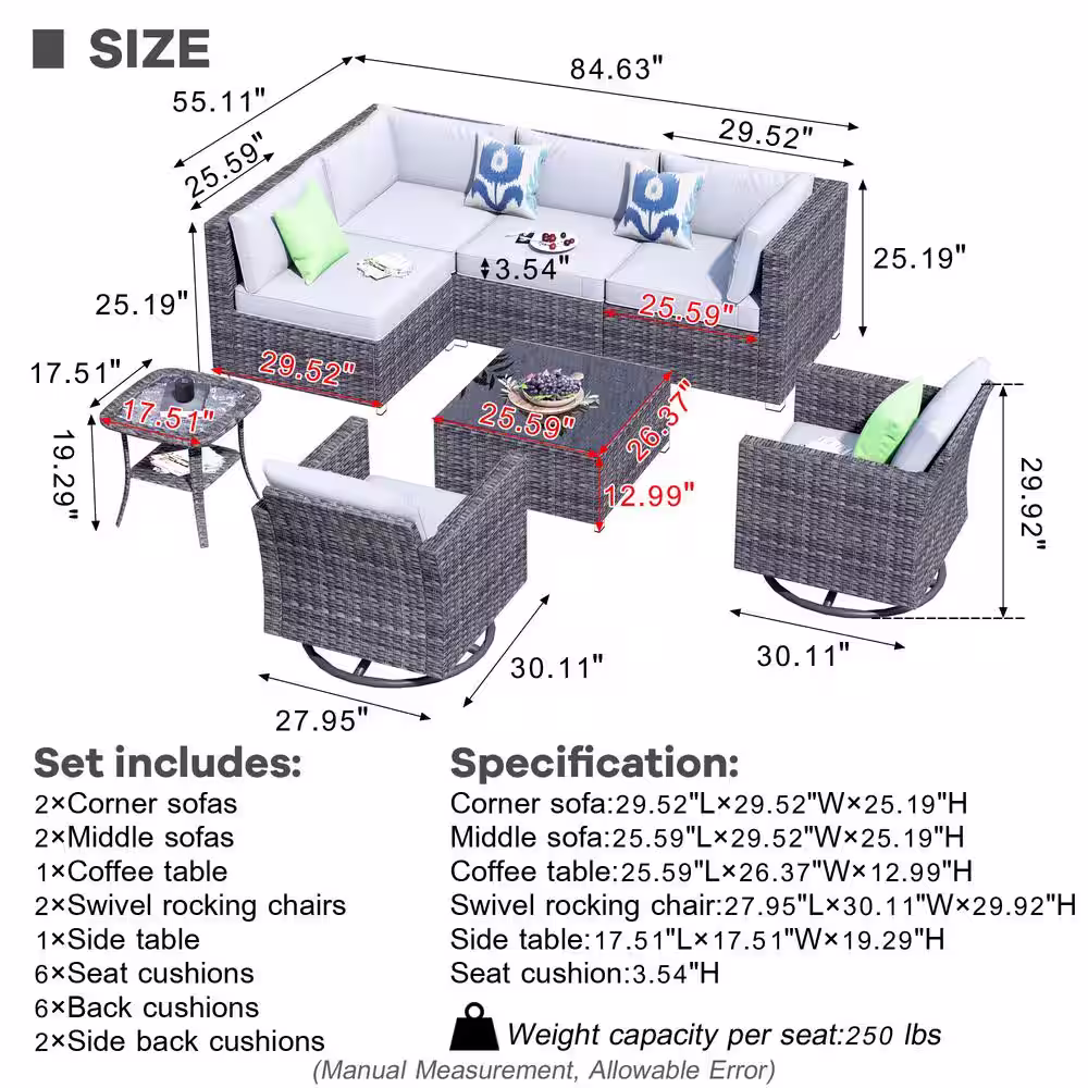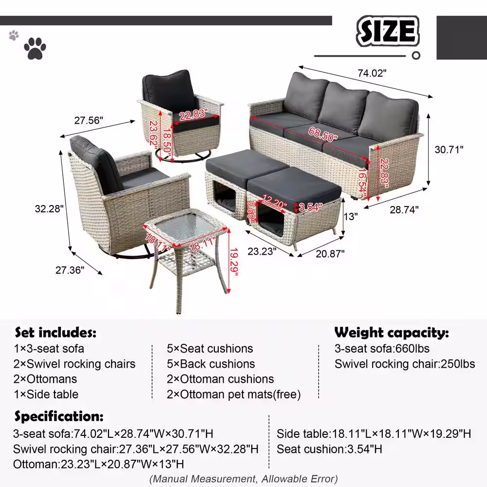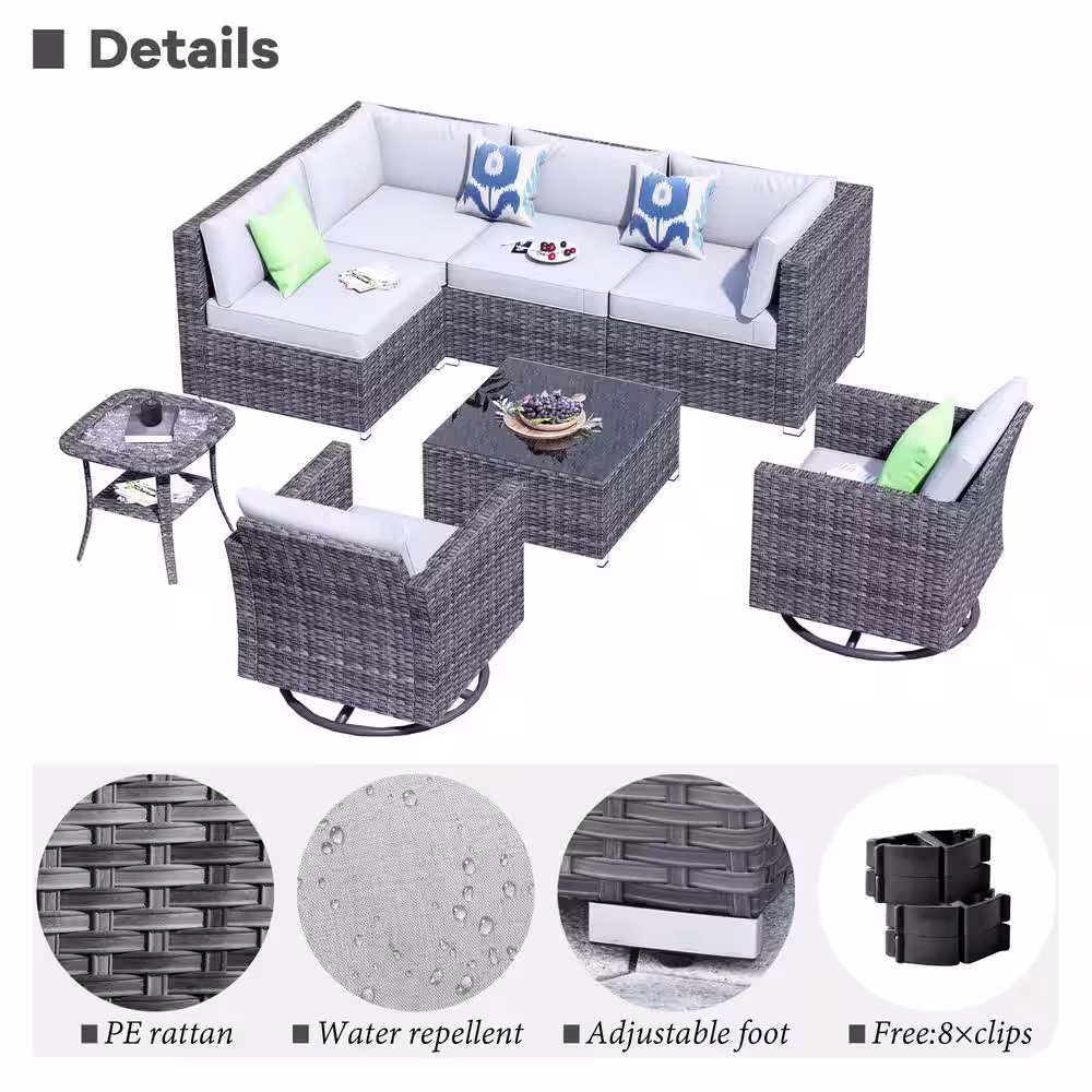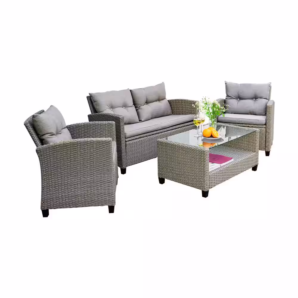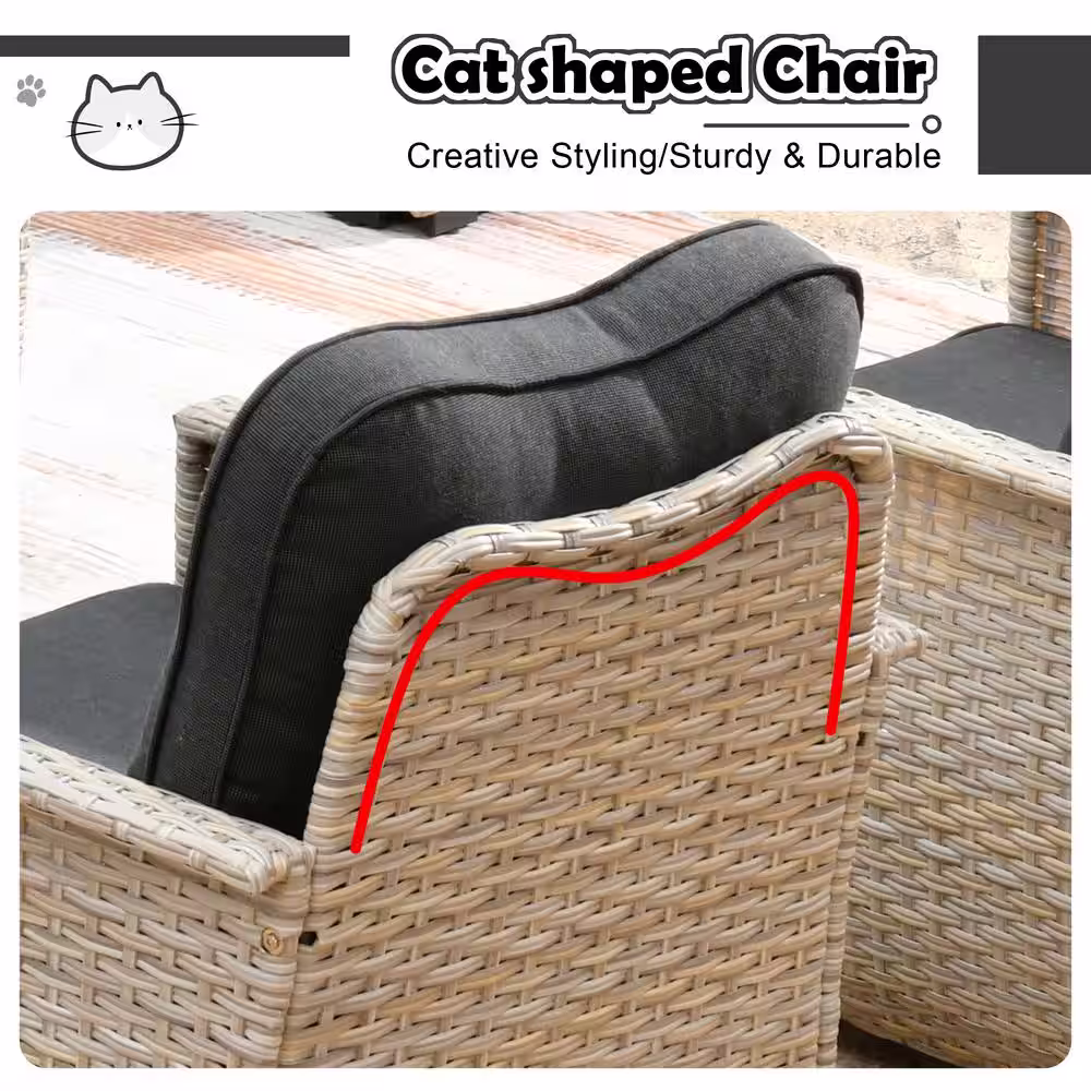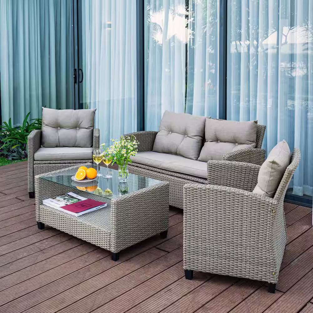 Gymojoy Carolina Brown Wicker Patio Conversation Deep Seating Set with Olefin Beige Cushions