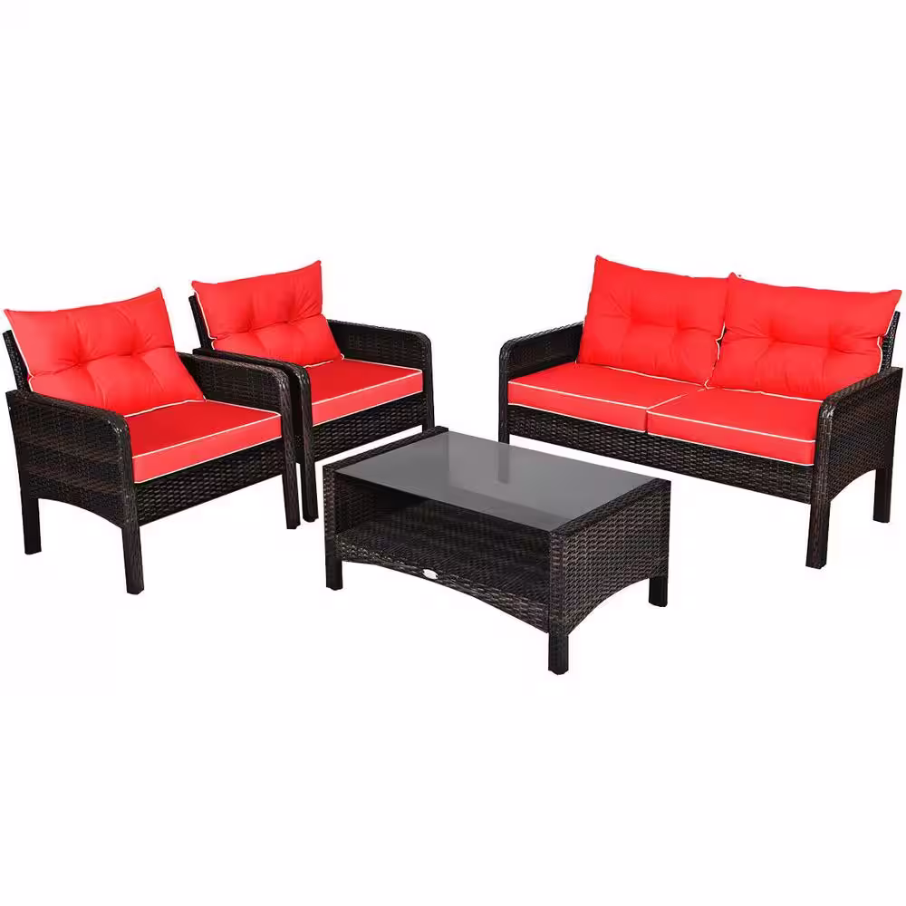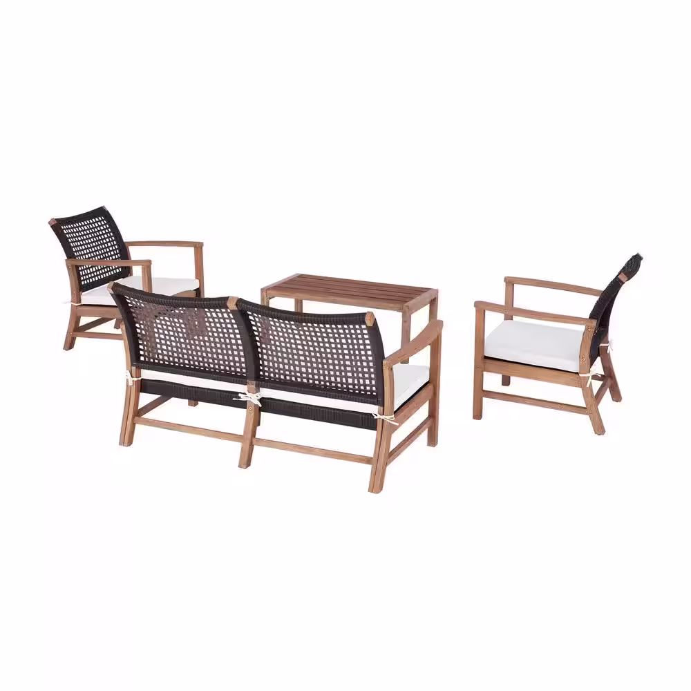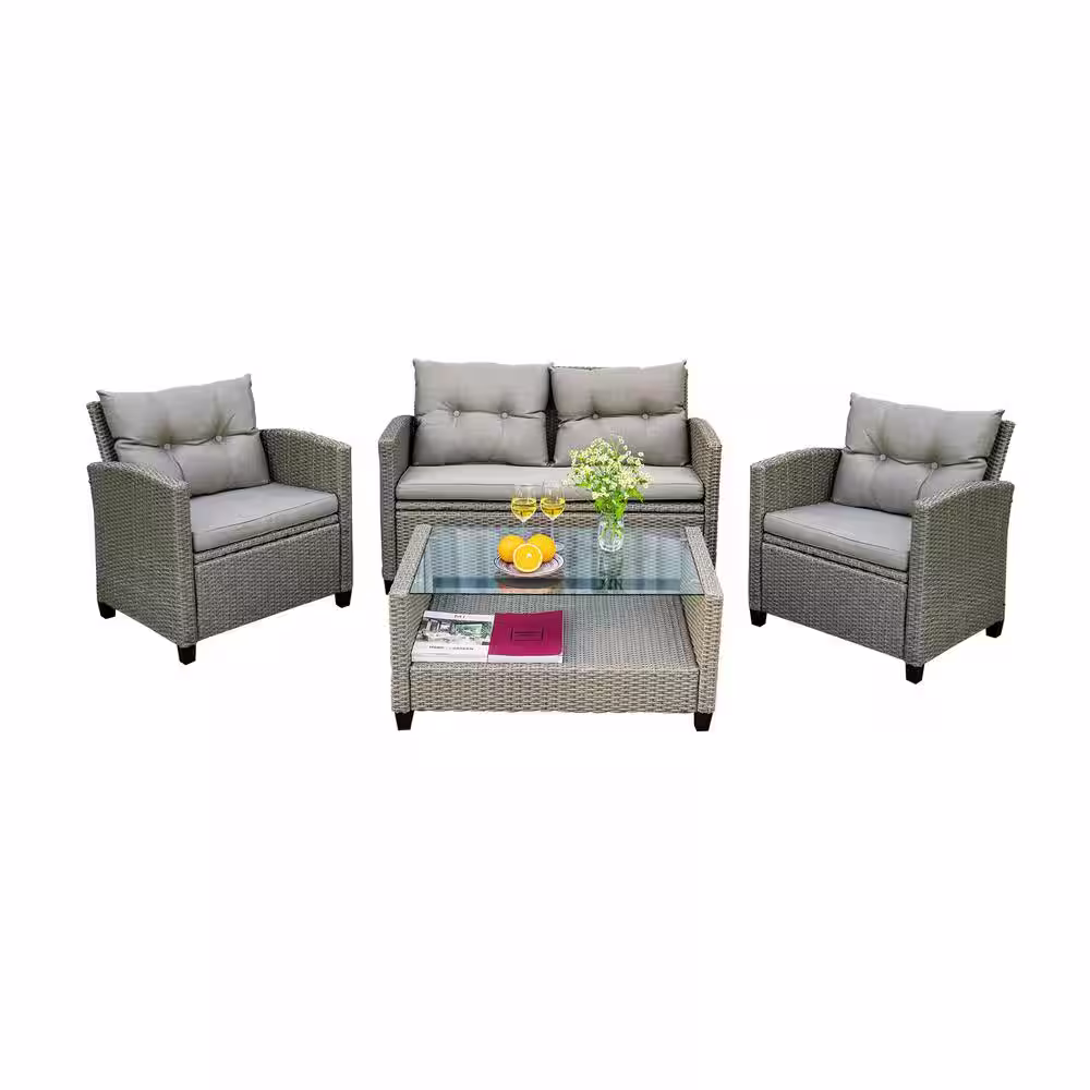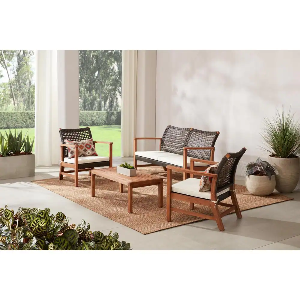 Hampton Bay Clover Cay 4-Piece Wicker Outdoor Patio Conversation Seating Set With Off-White Cushions