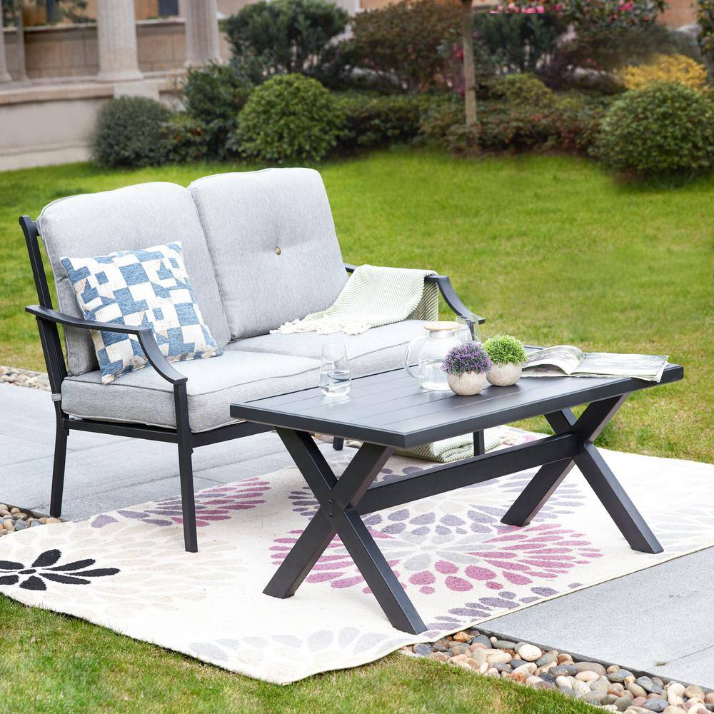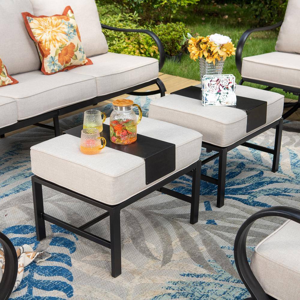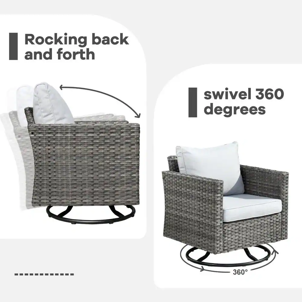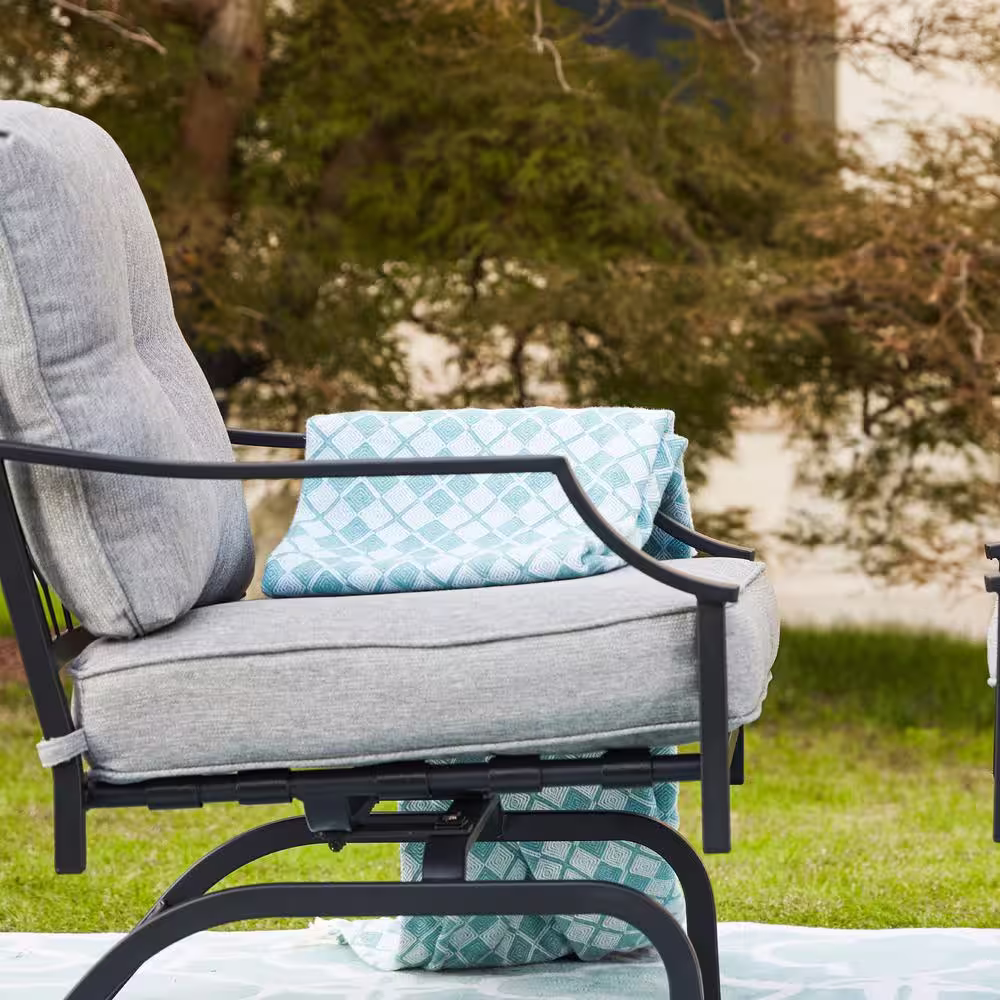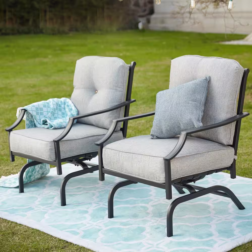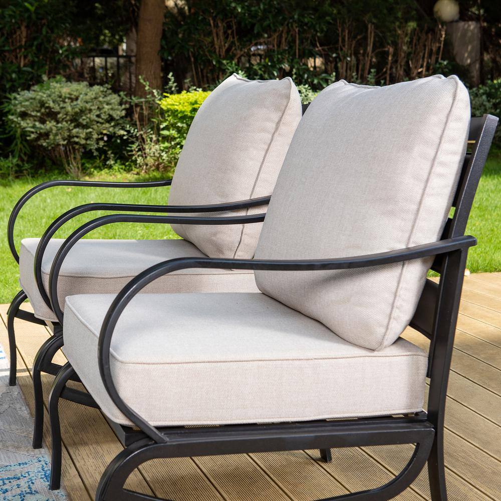 Patio Festival 3-Piece Metal Patio Rocker Conversation Set with Beige Cushions